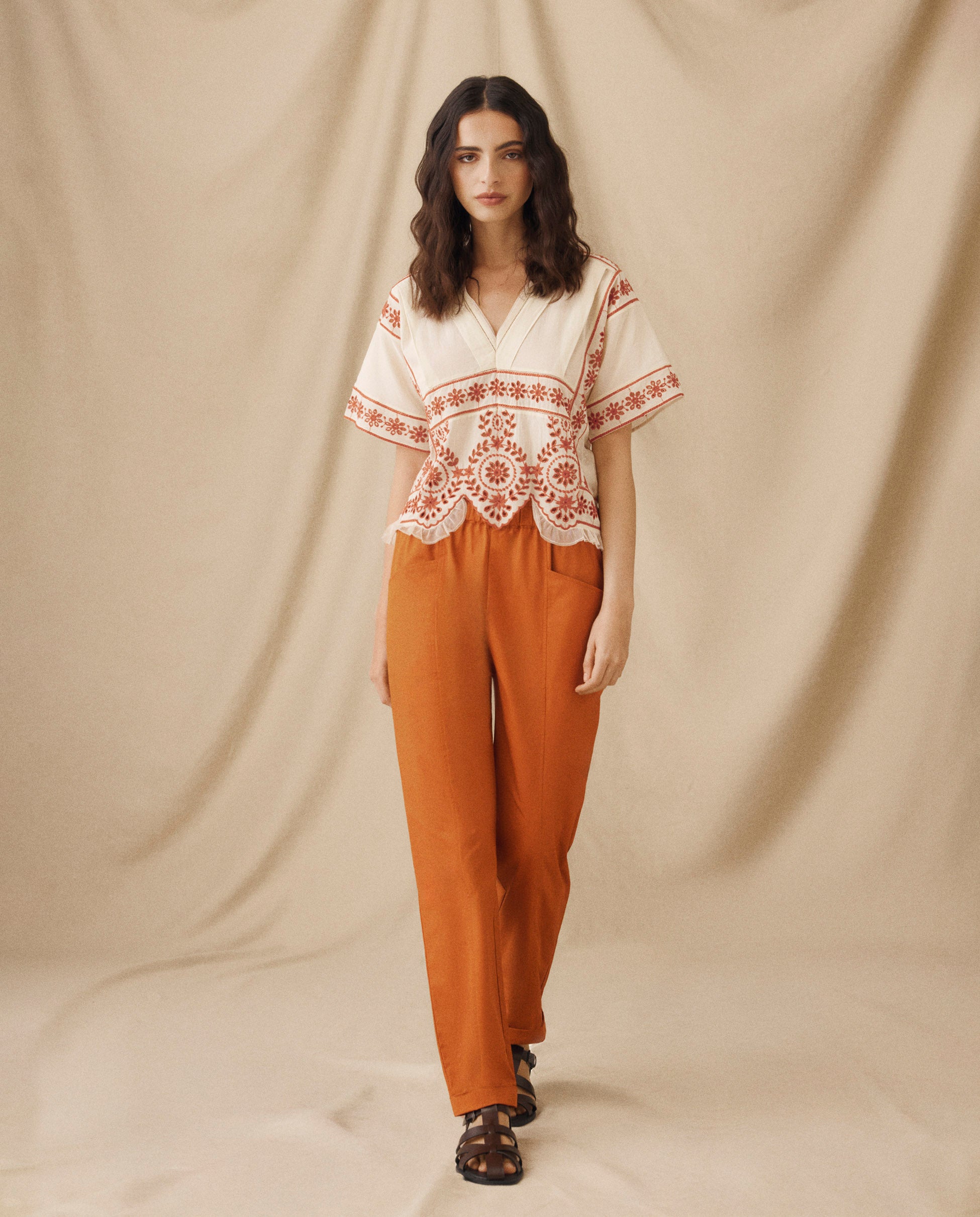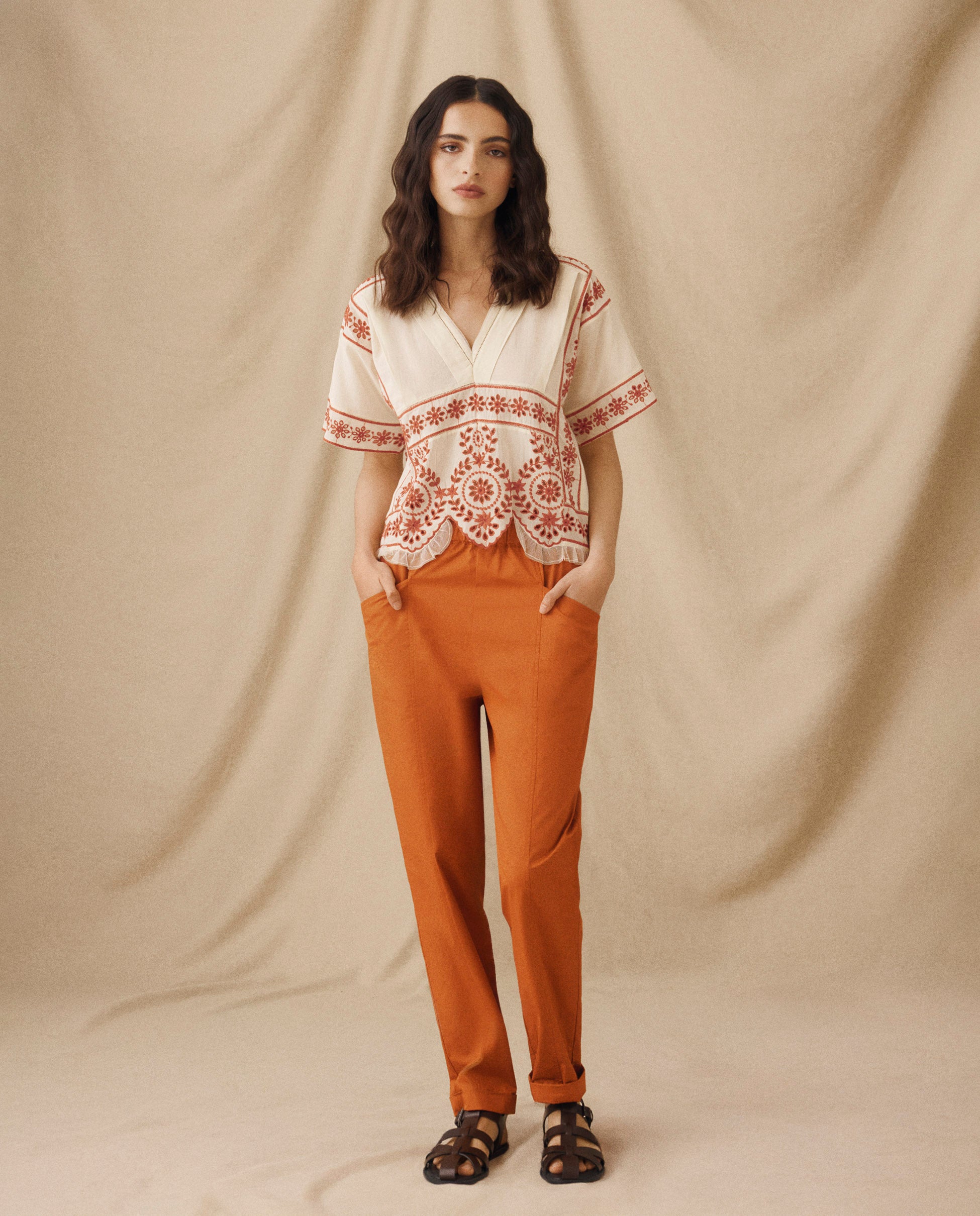 ASTROS | Pantalón Tapered de Algodón Naranja Teja