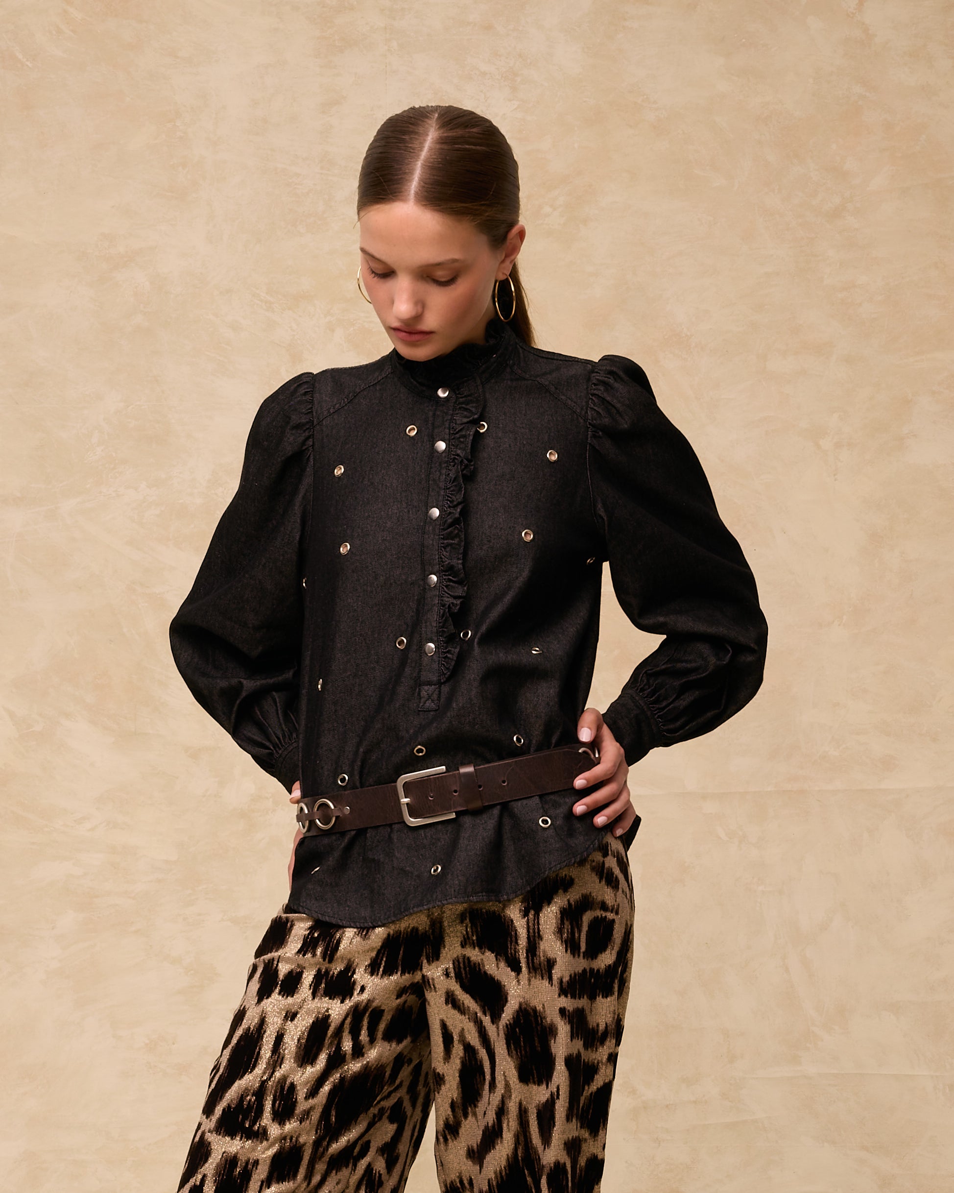 BHAKTI | Blusa Jacquard Azul Turquesa Hombros Descubiertos
