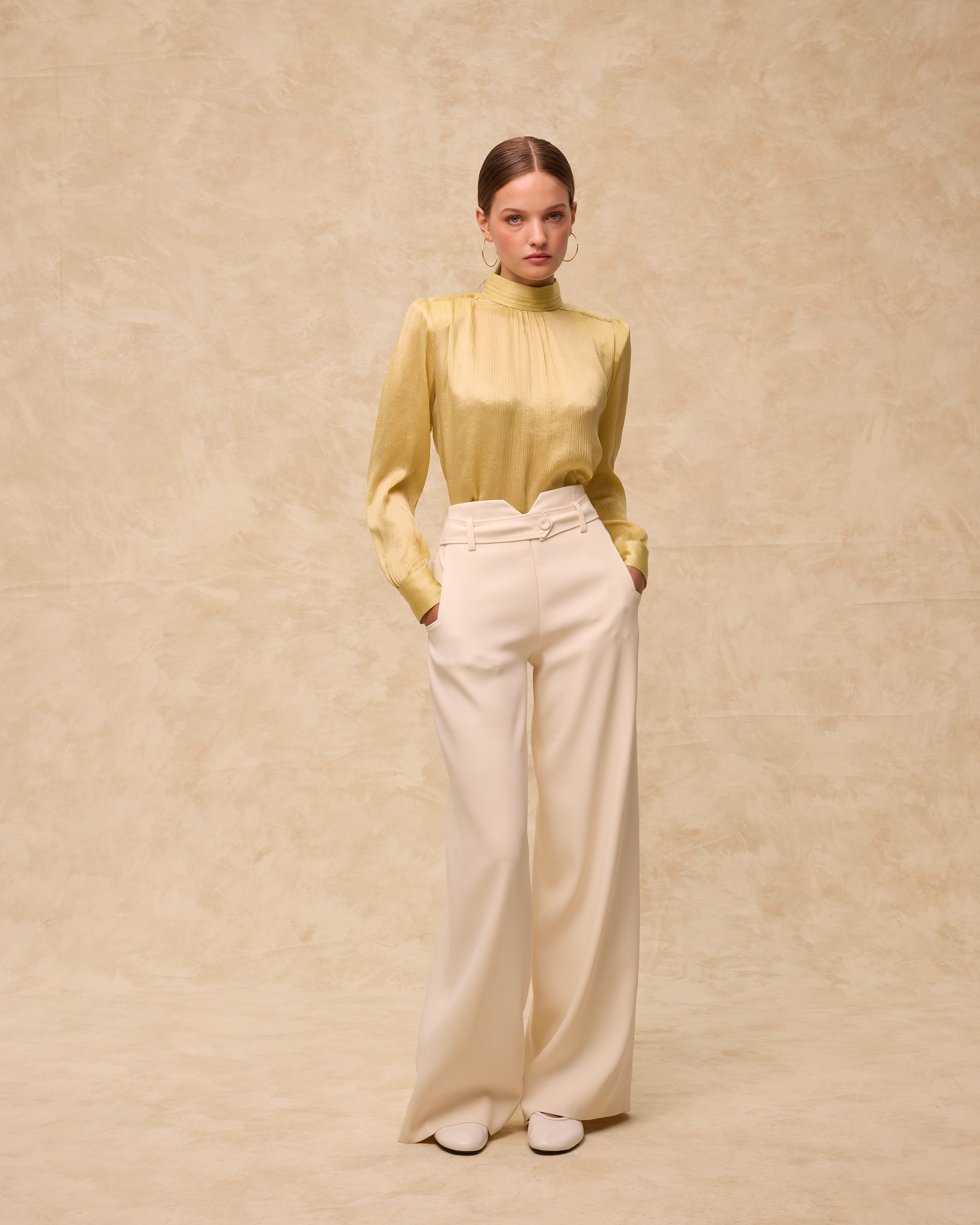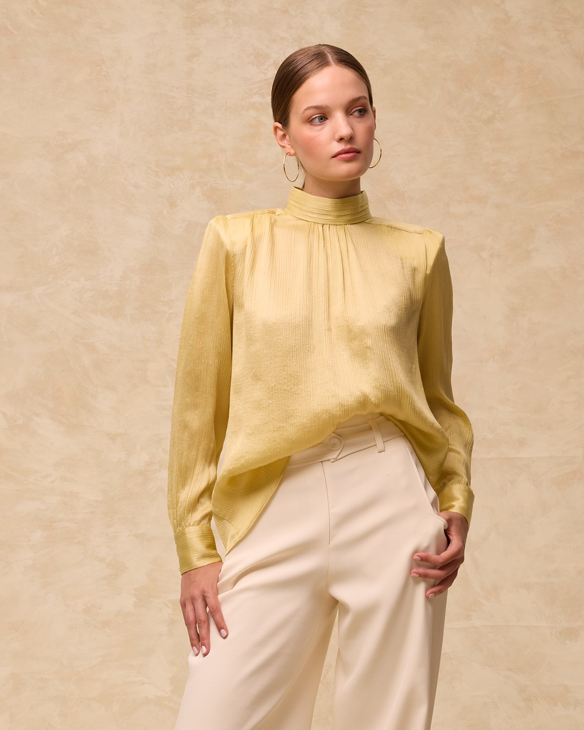 CAROL | Pale Chartreuse Pleated Silk Blouse