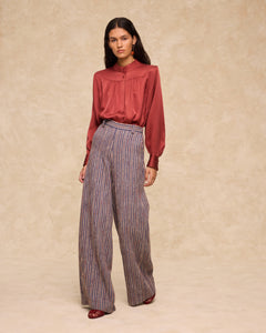 Combinando estructura con encanto, la chaqueta Francine está confeccionada en un rico tejido italiano de cuadros, tejido en cálidos tonos mostaza con suaves acentos en violeta y marrón. Su detalle más destacado es el cuello con volante, que aporta un giro femenino a la silueta recta y limpia. Totalmente forrada para mayor comodidad, se abrocha con botones a tono y cuenta con dos bolsillos de solapa para mayor practicidad.