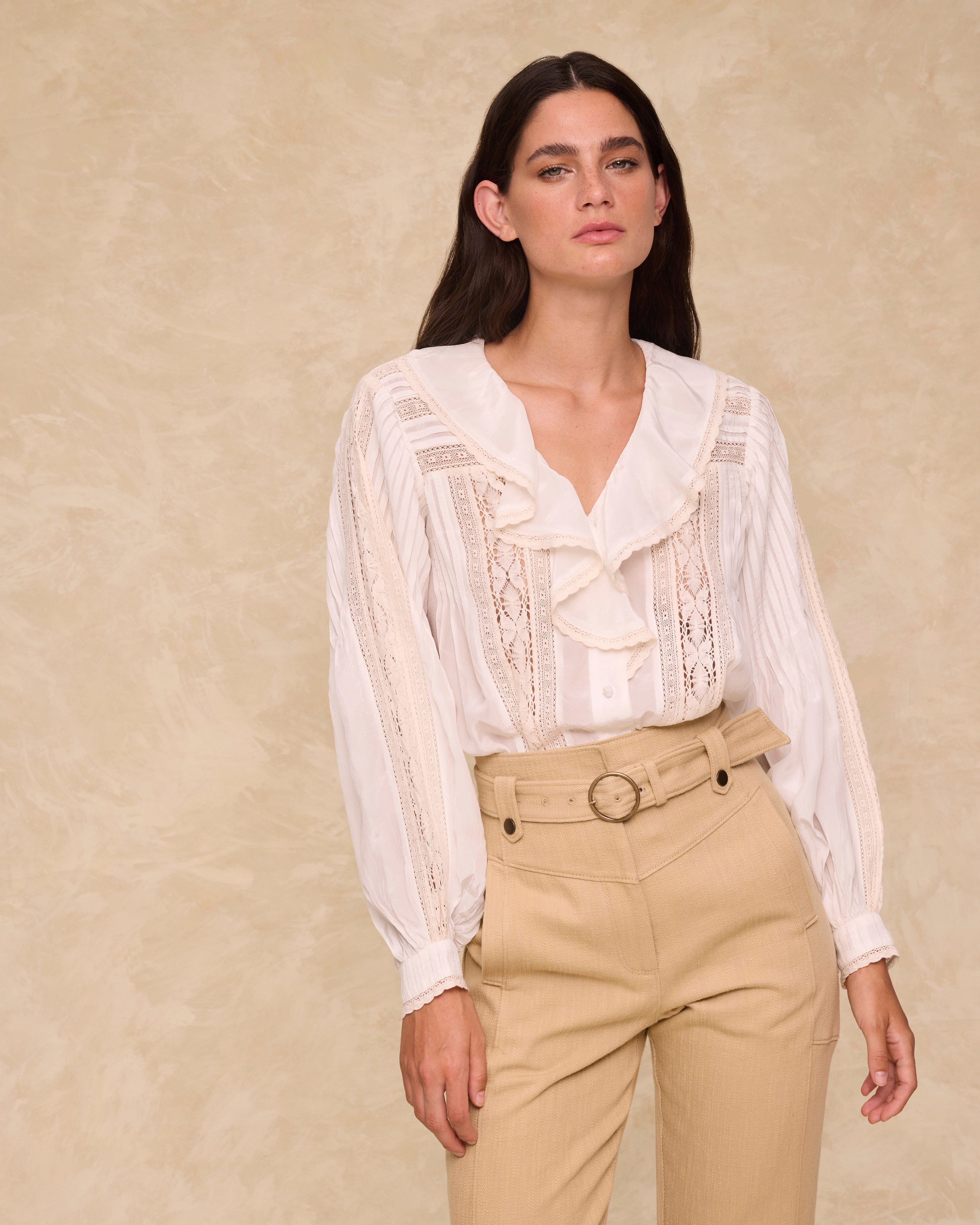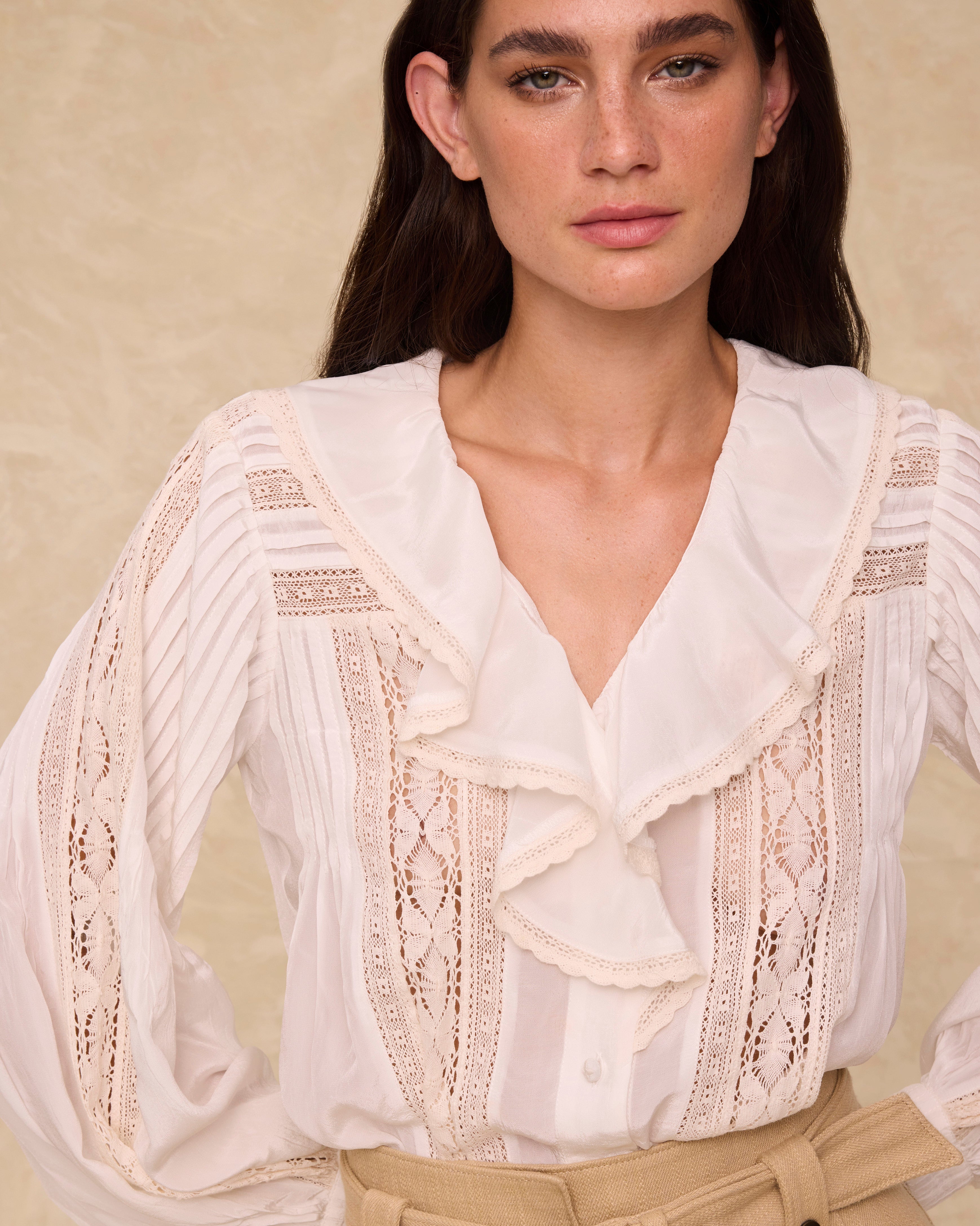 BASIL | Blusa con Volantes y Encaje en color Blanco