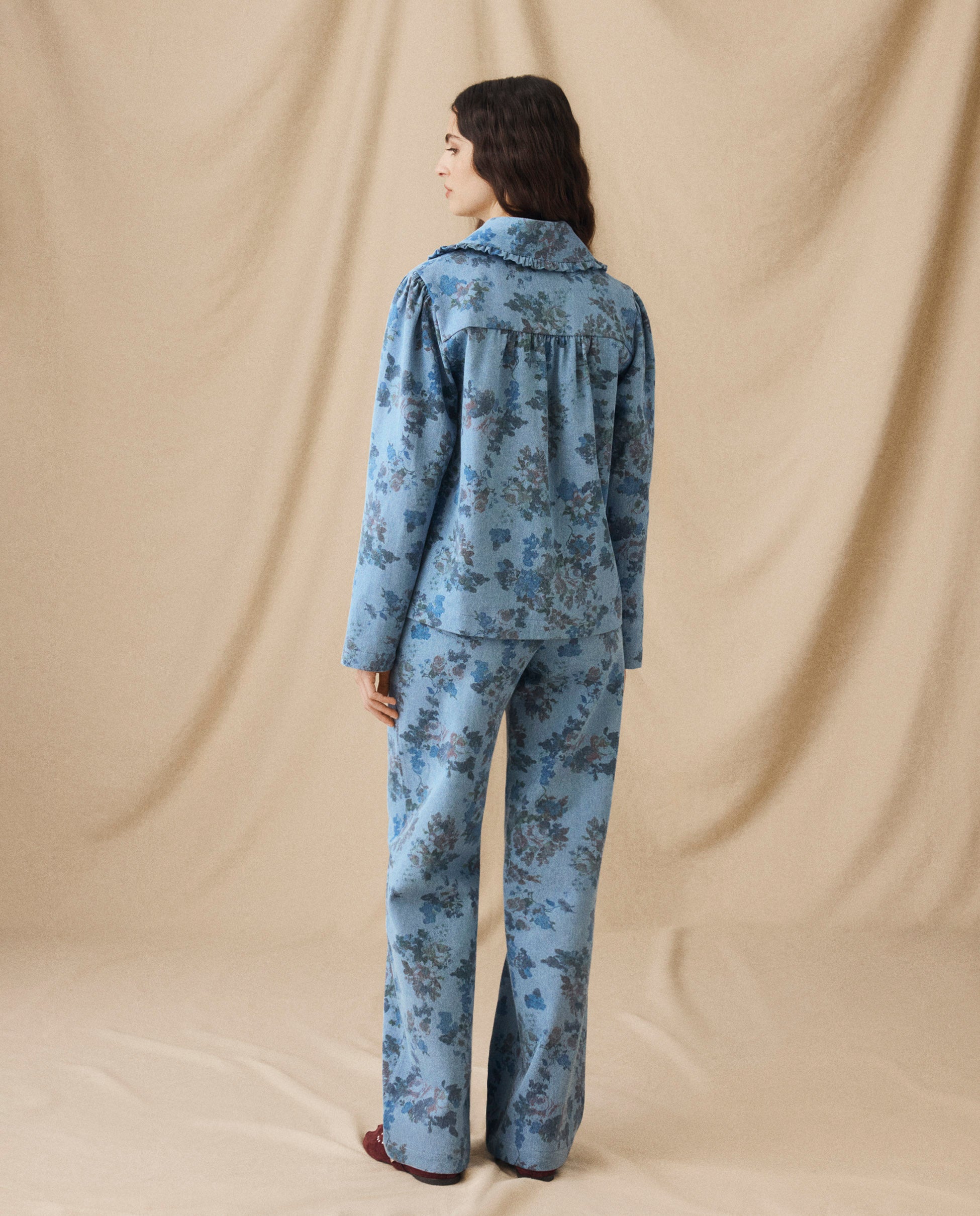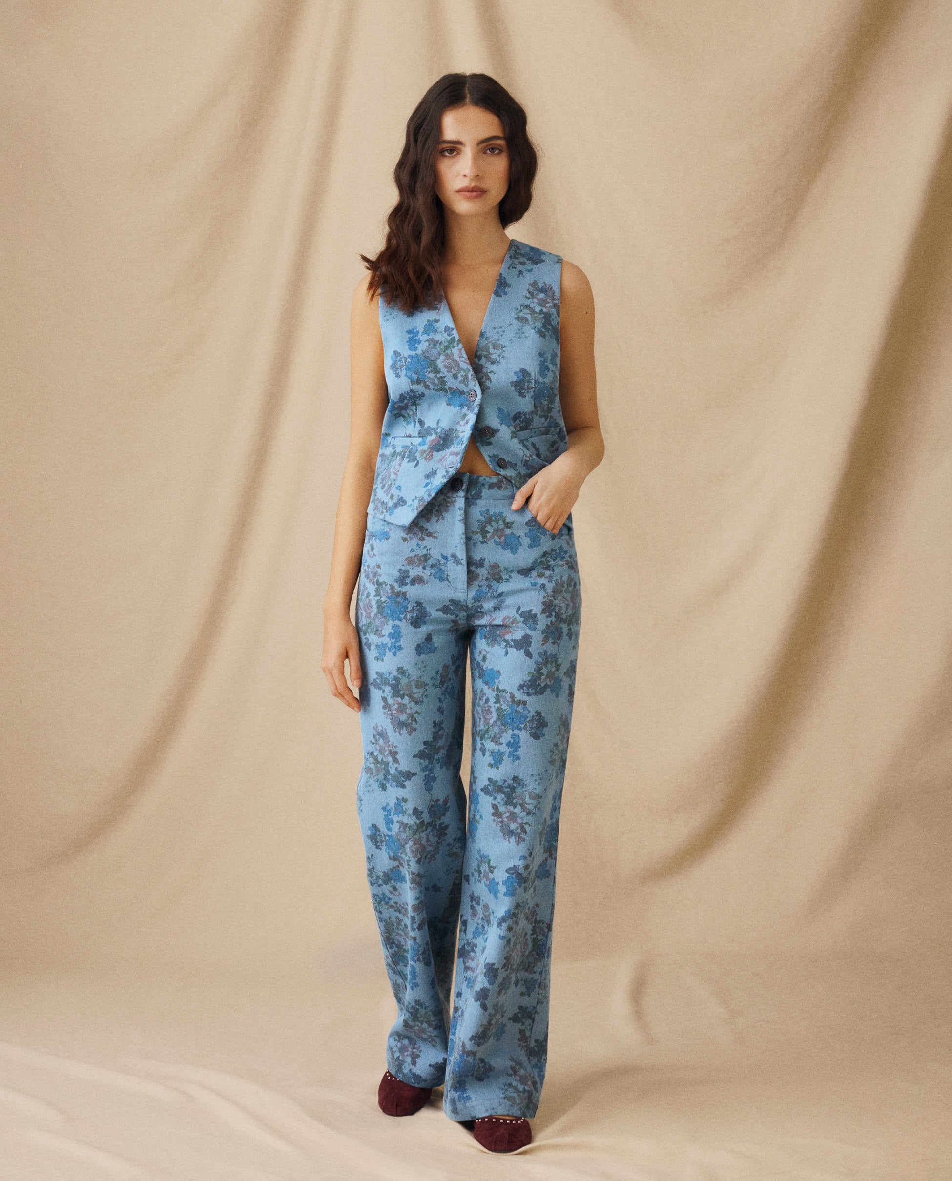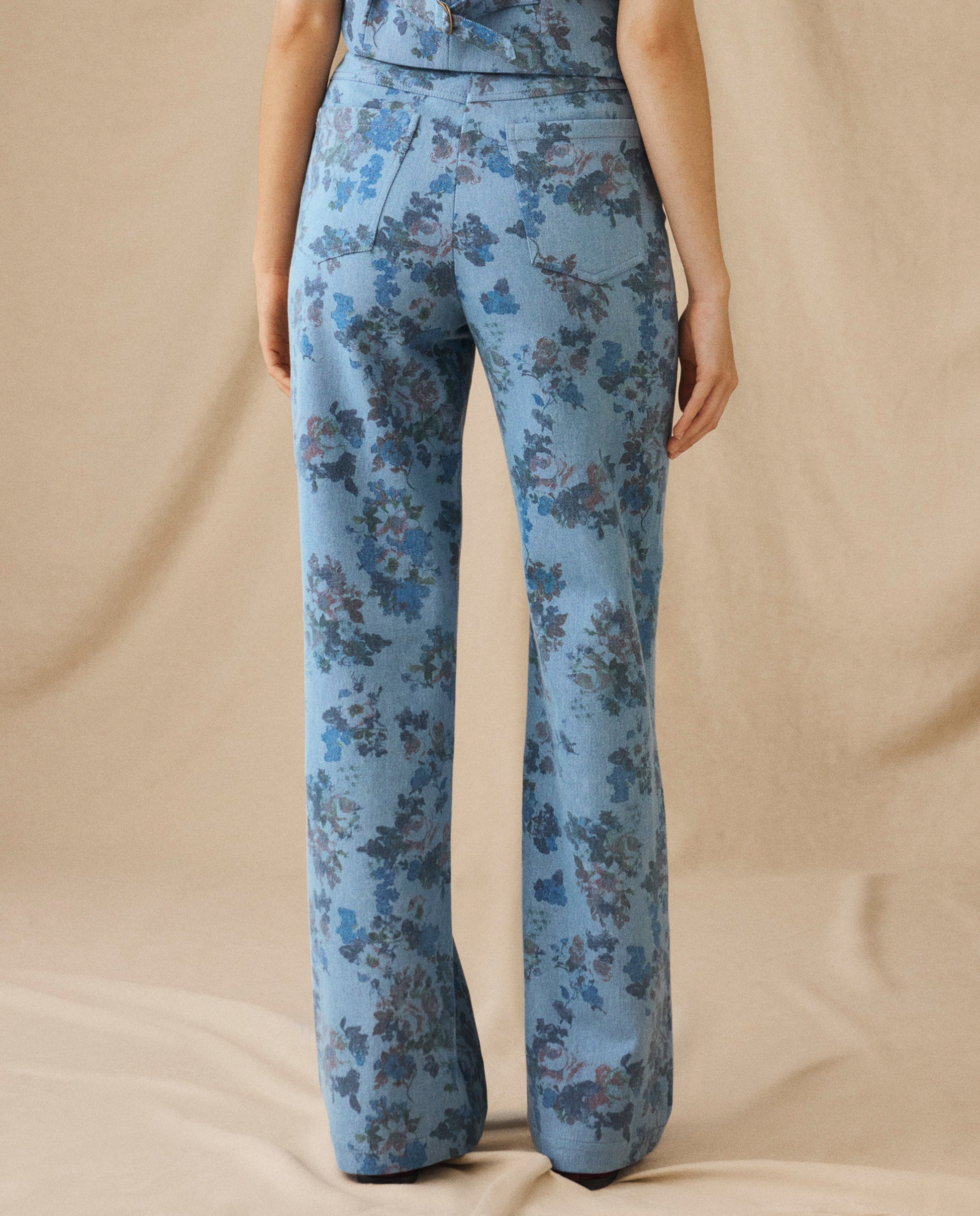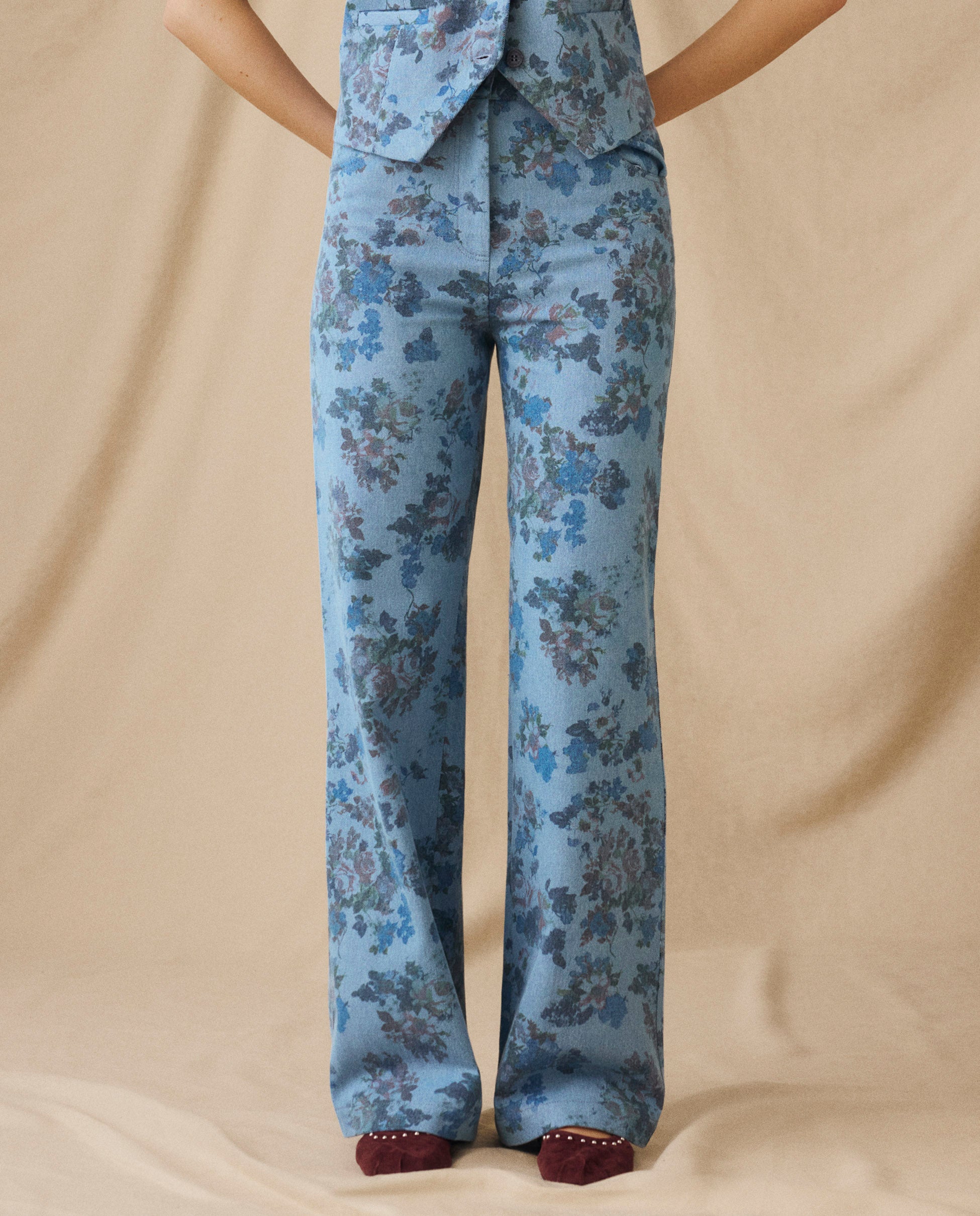 CONNIE | Pantalón de Algodón Estampado Floral Azul