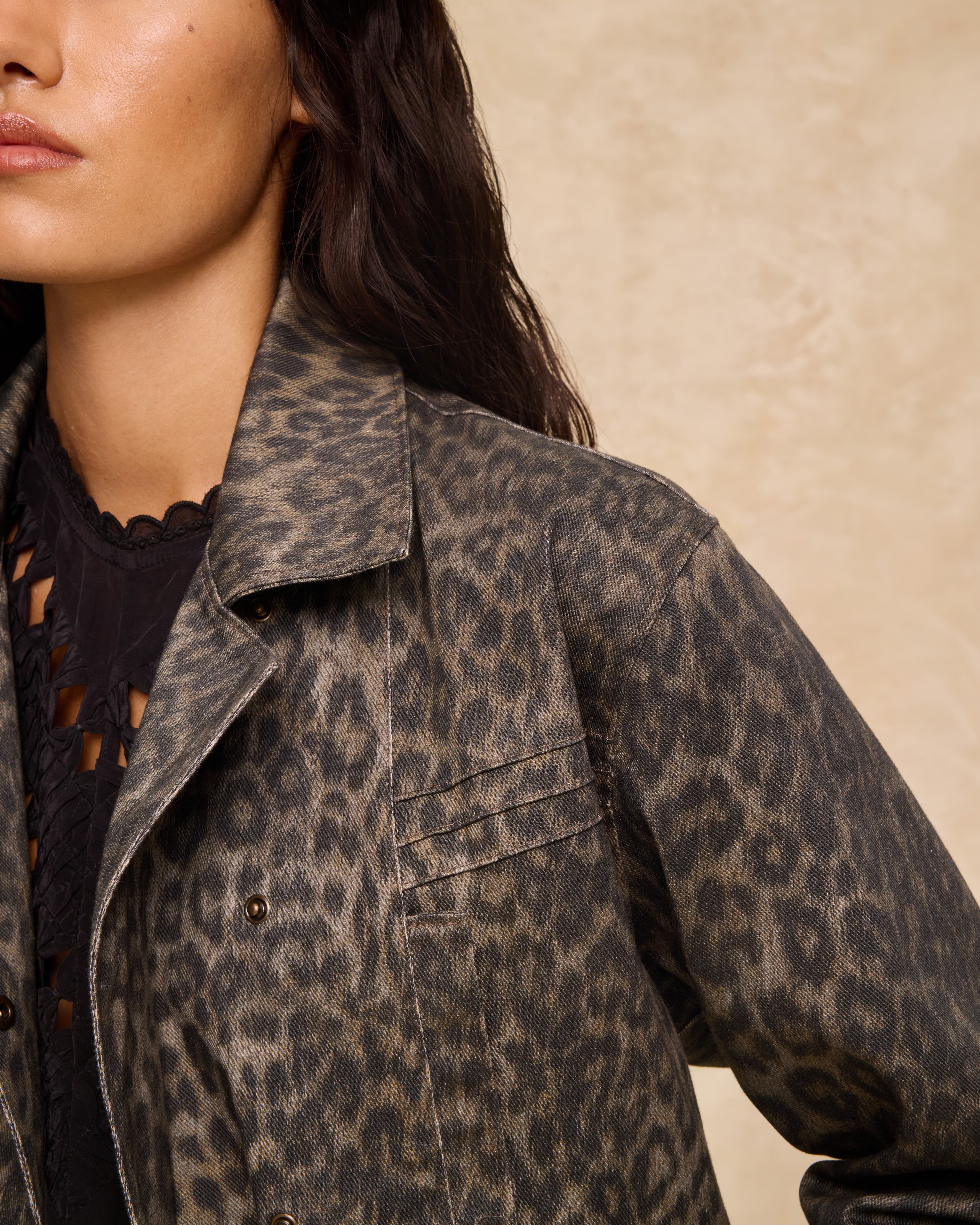 OLIVIA | Chaqueta de Algodón con Estampado de Leopardo