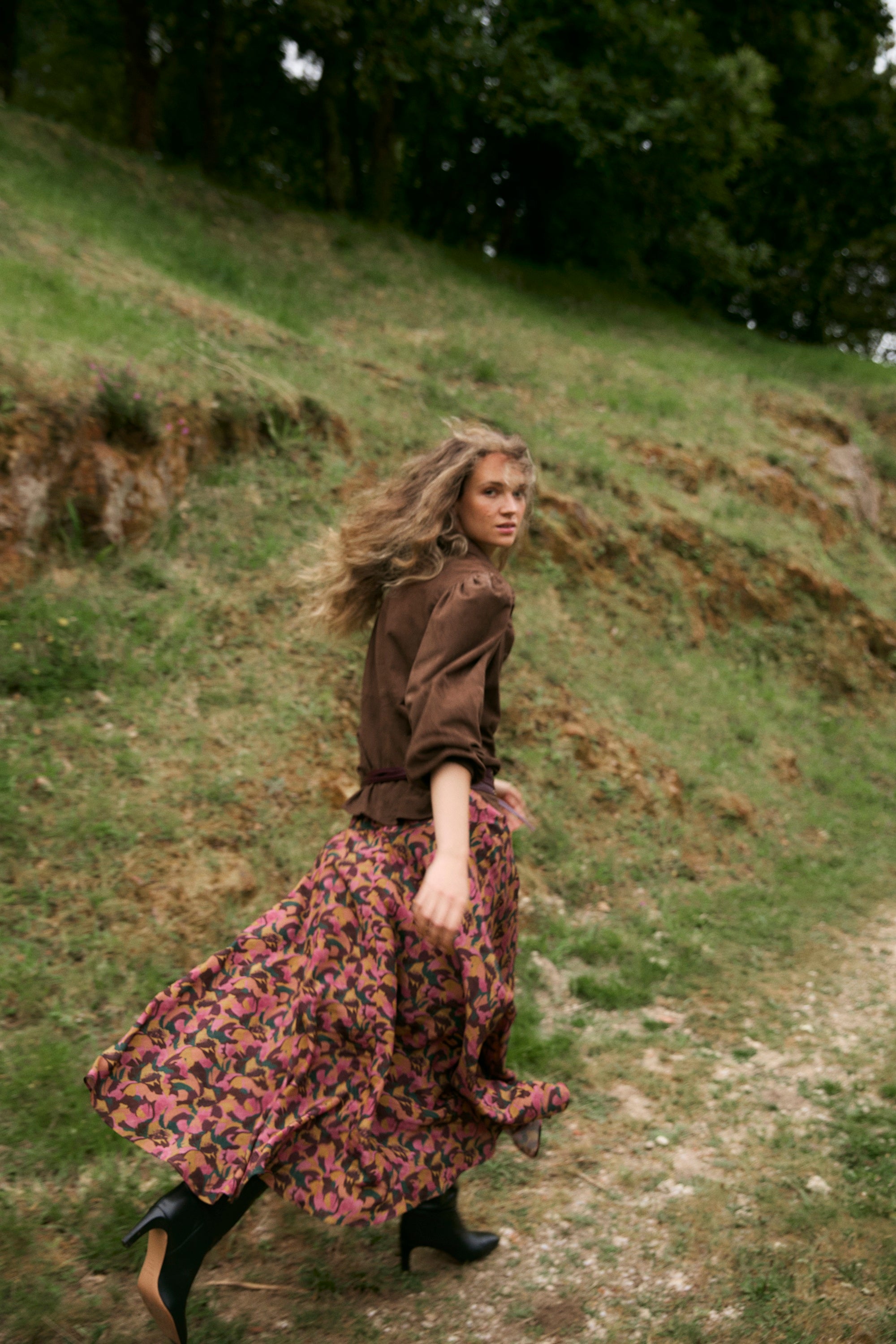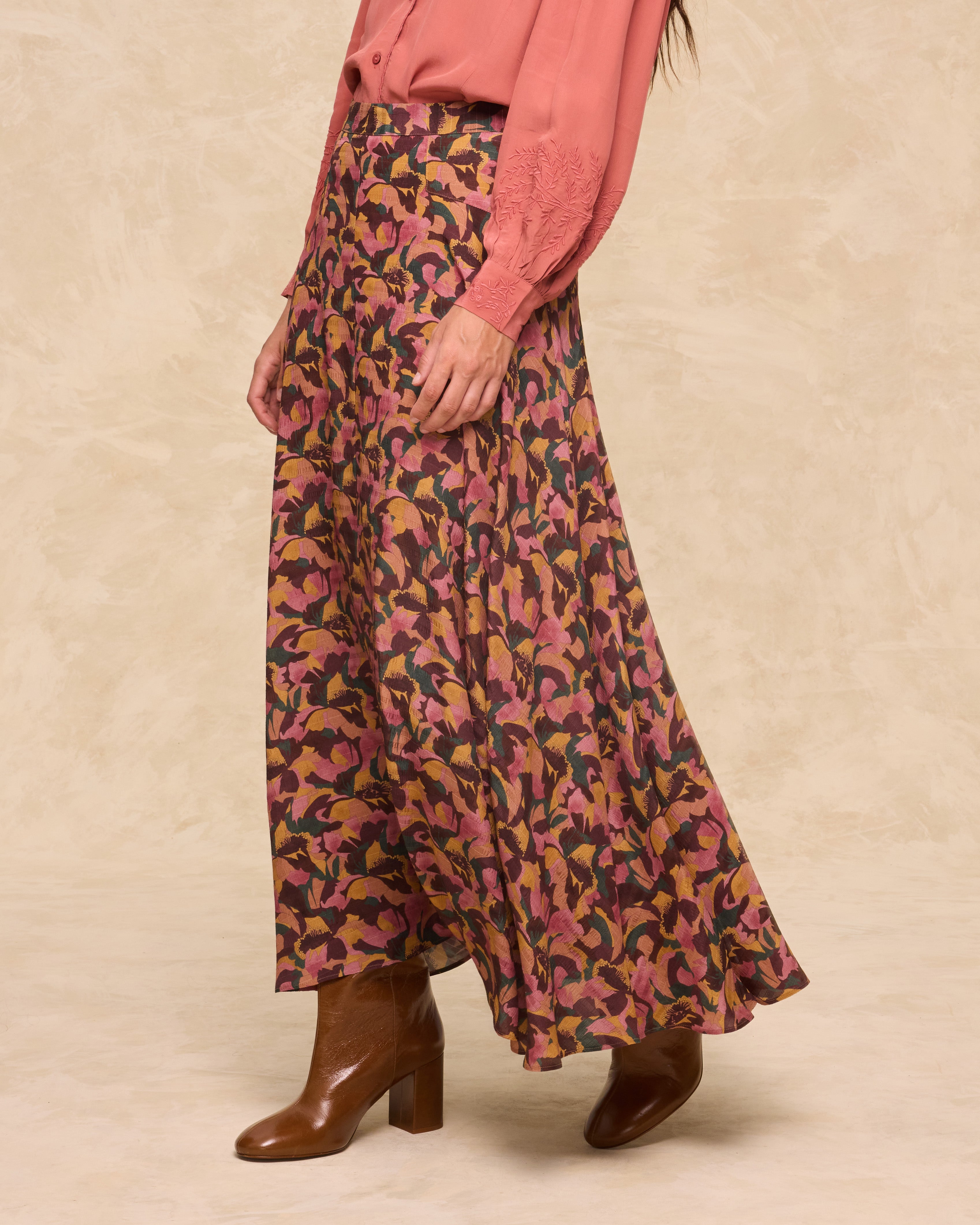 La falda Saachi aporta un estilo vibrante de inspiración vintage al vestuario diario. Confeccionada con una cinturilla suavemente estructurada y un corte en A fluido, cae hasta un largo midi con una elegante caída y movimiento. Se cierra en la parte trasera con una cremallera invisible para un ajuste favorecedor.