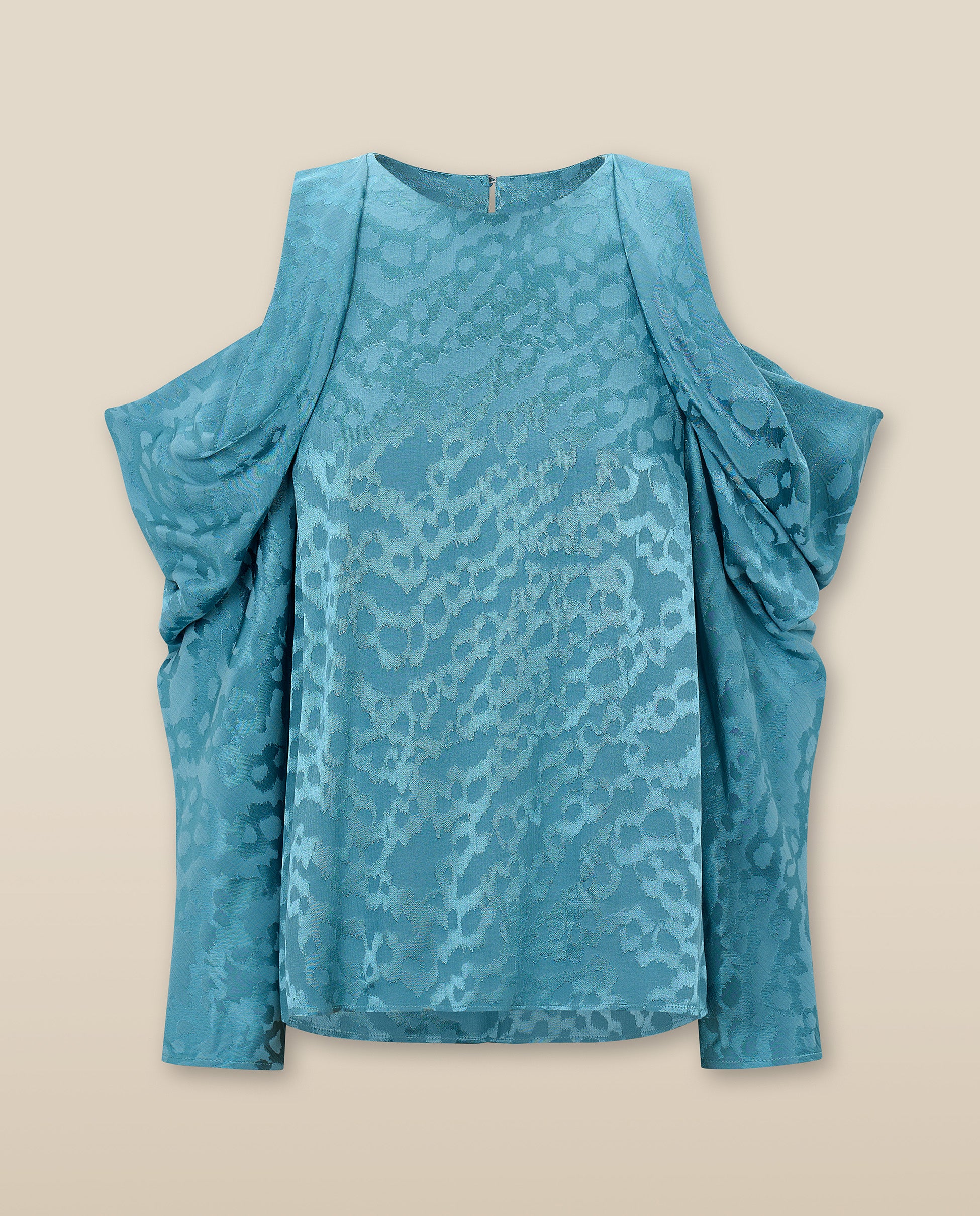 BHAKTI | Blusa Jacquard Azul Turquesa Hombros Descubiertos