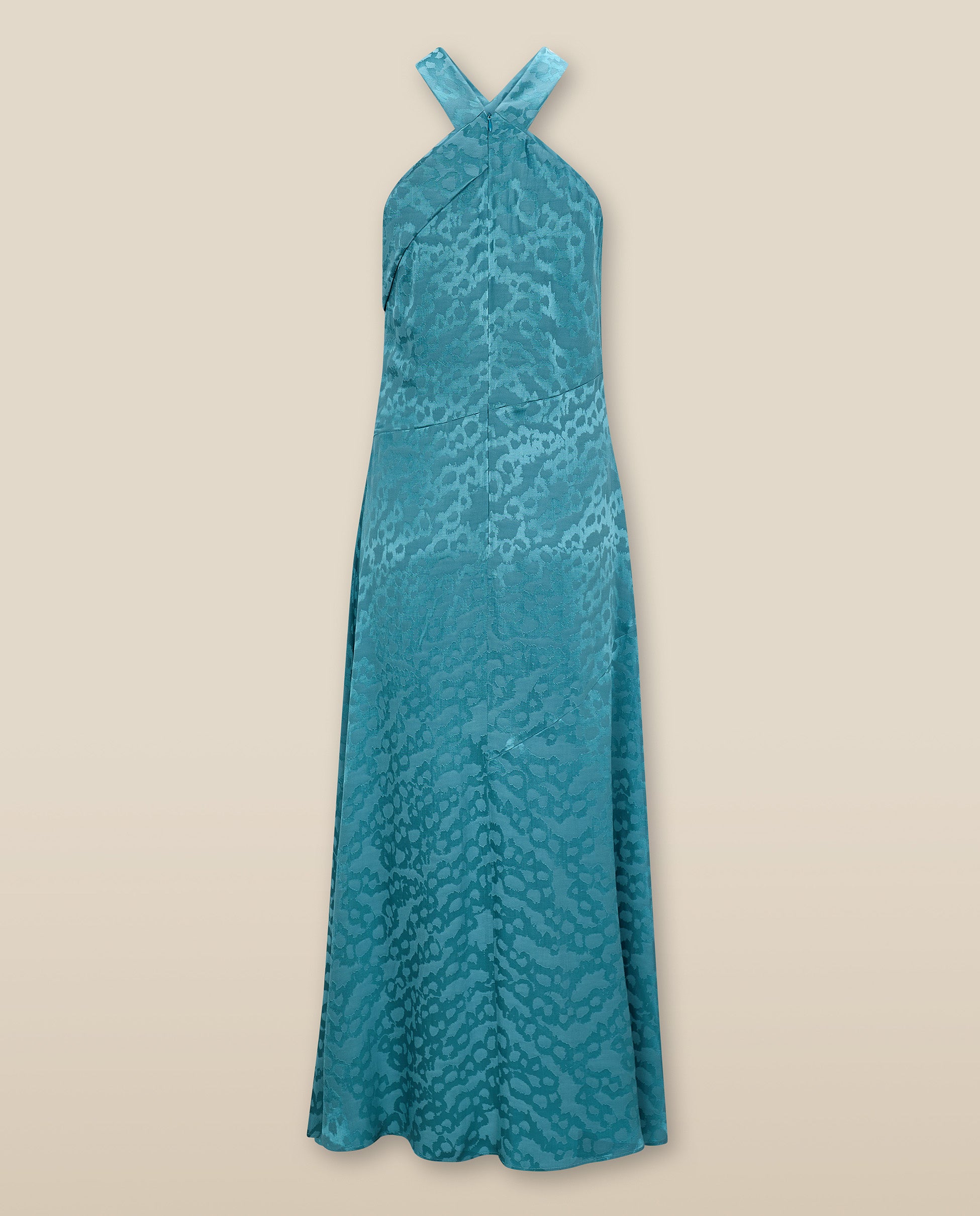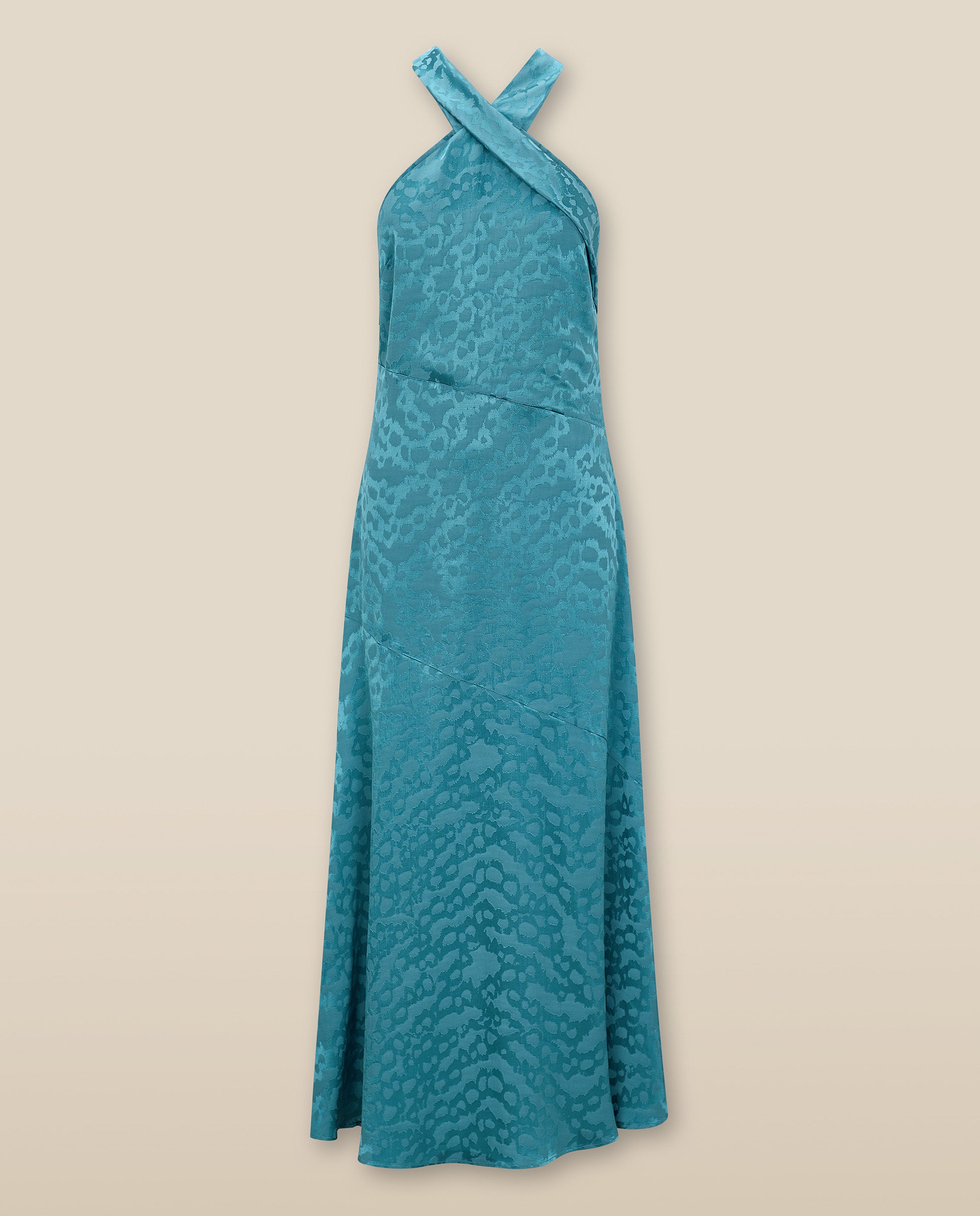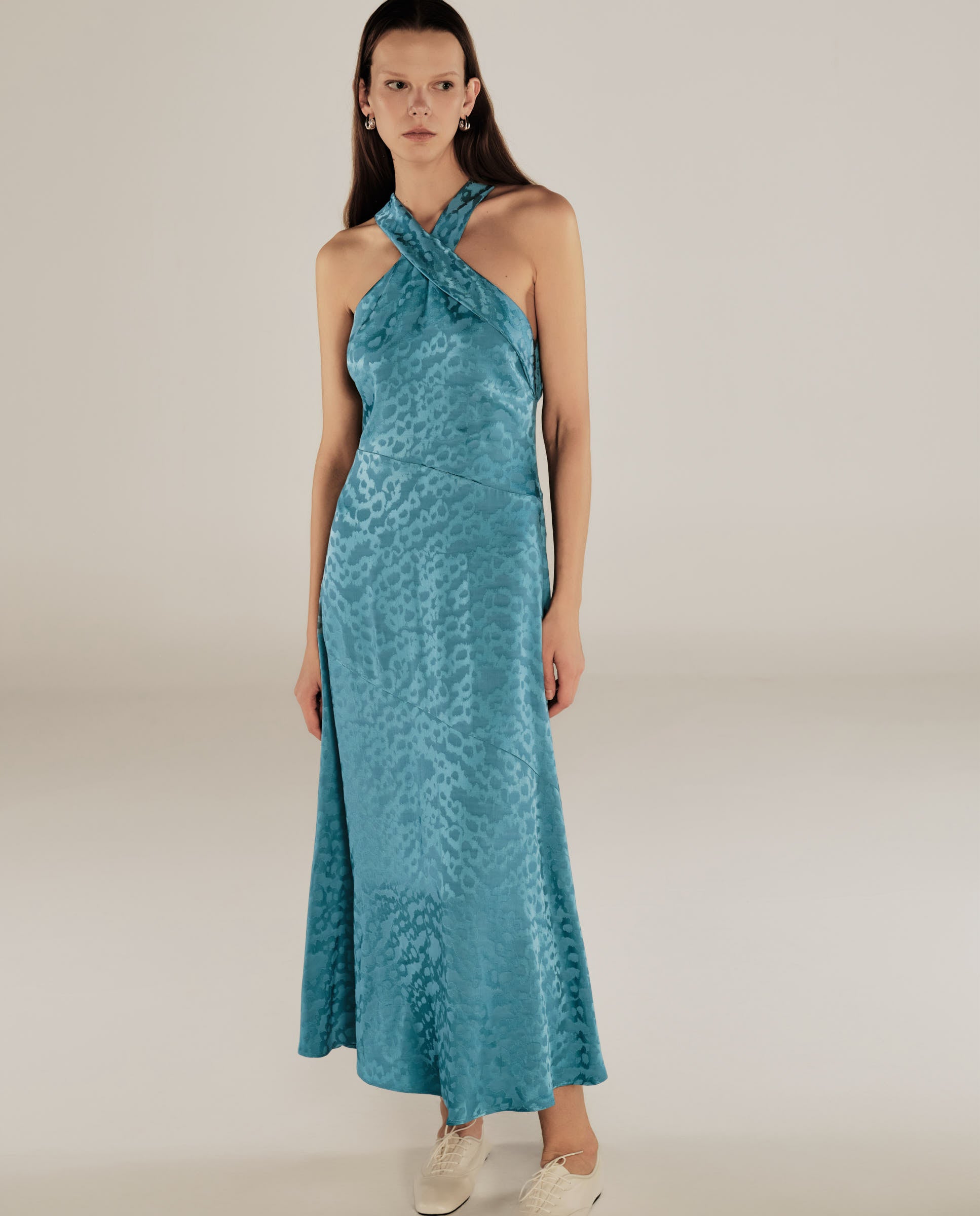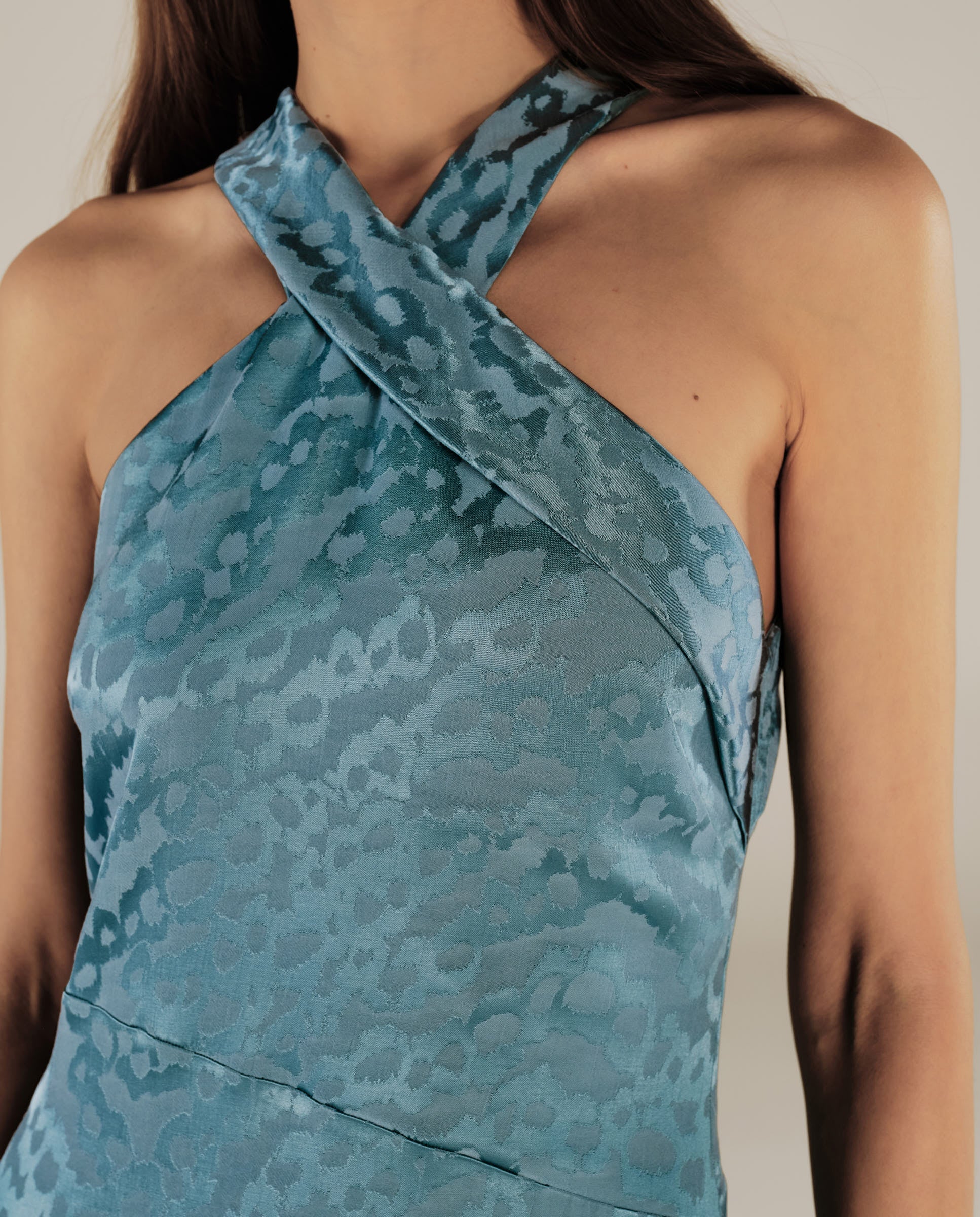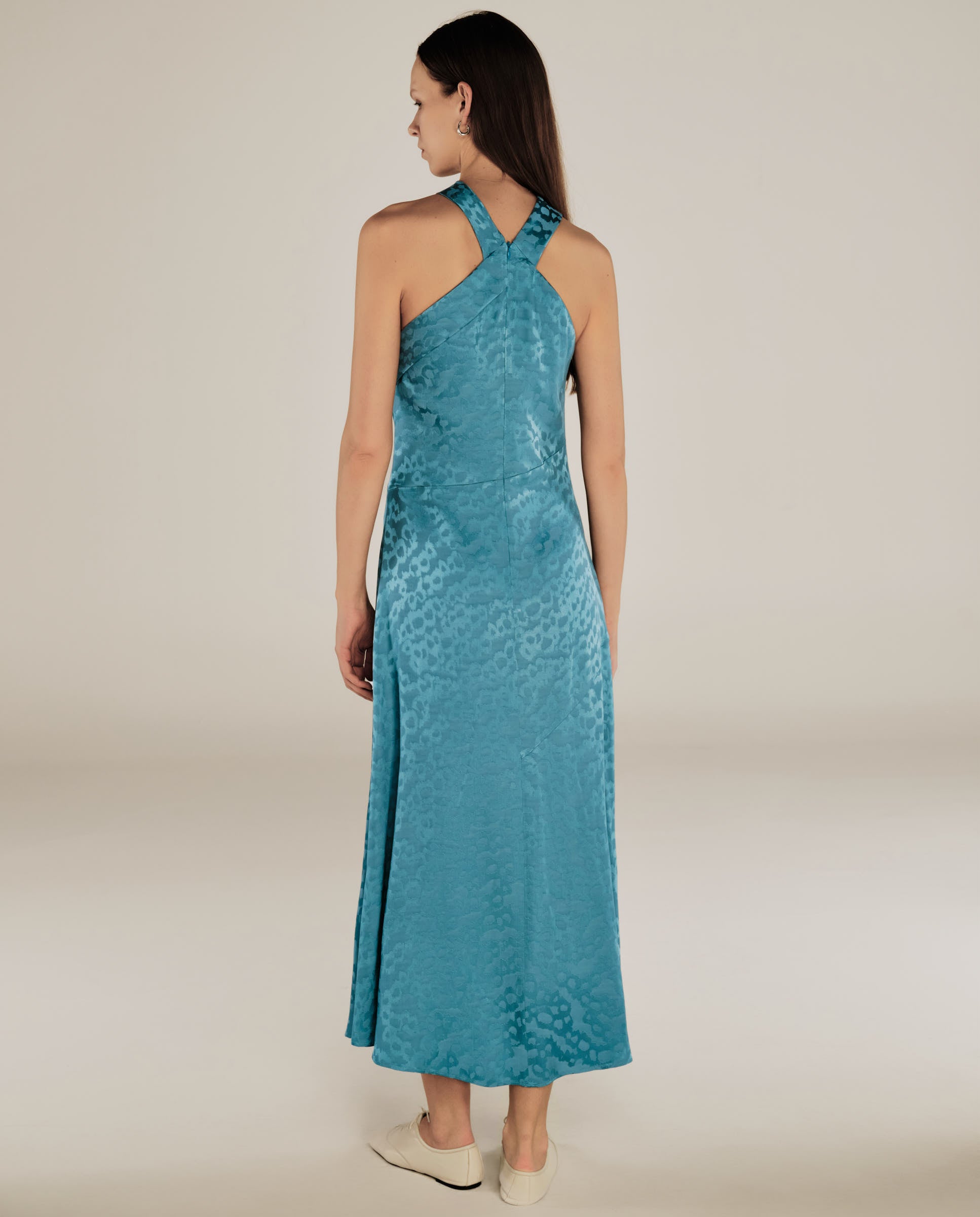 BHAKTI | Vestido Midi de Jacquard con Estampado de Leopardo en Azul Turquesa