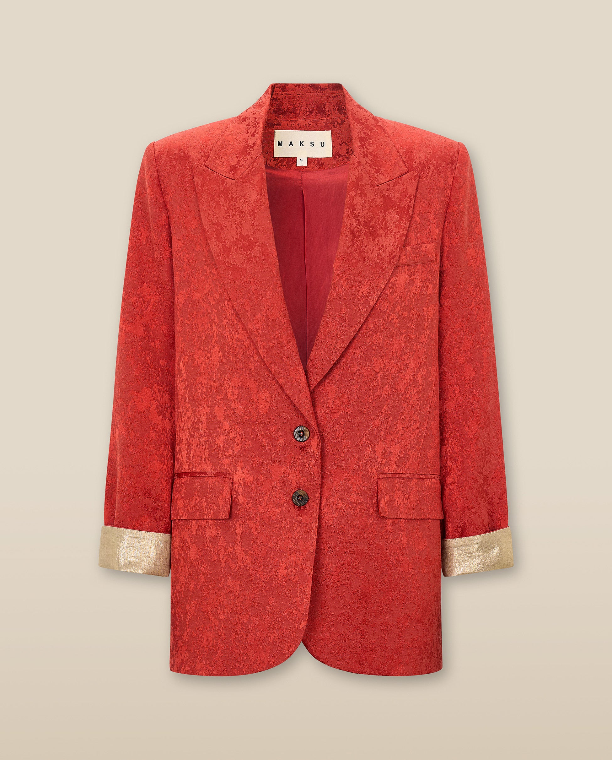 CANNES | Blazer Estructurado Rojo de Jacquard con Corte Relajado