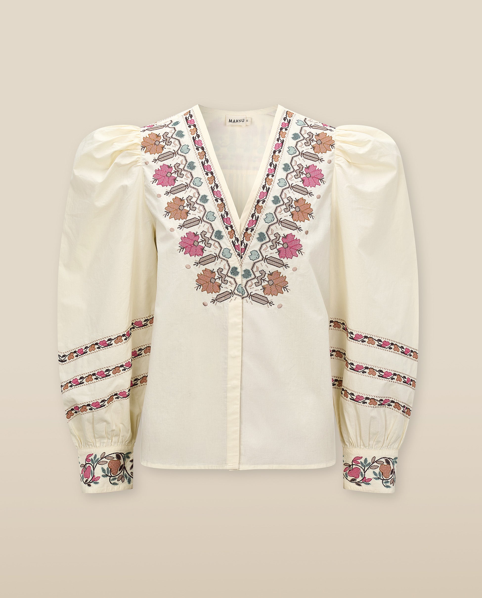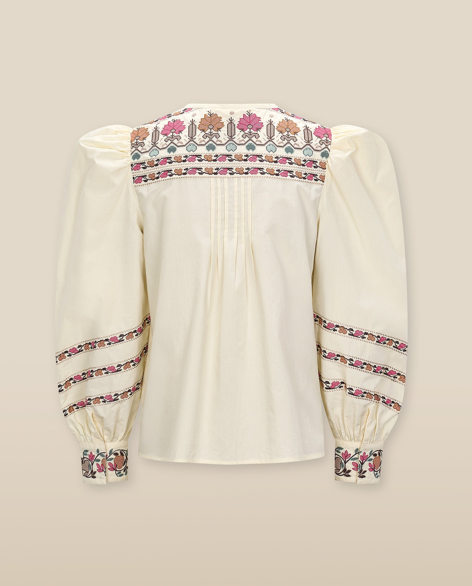 DEVIKA | Blusa de Algodón Crema con Bordado Floral