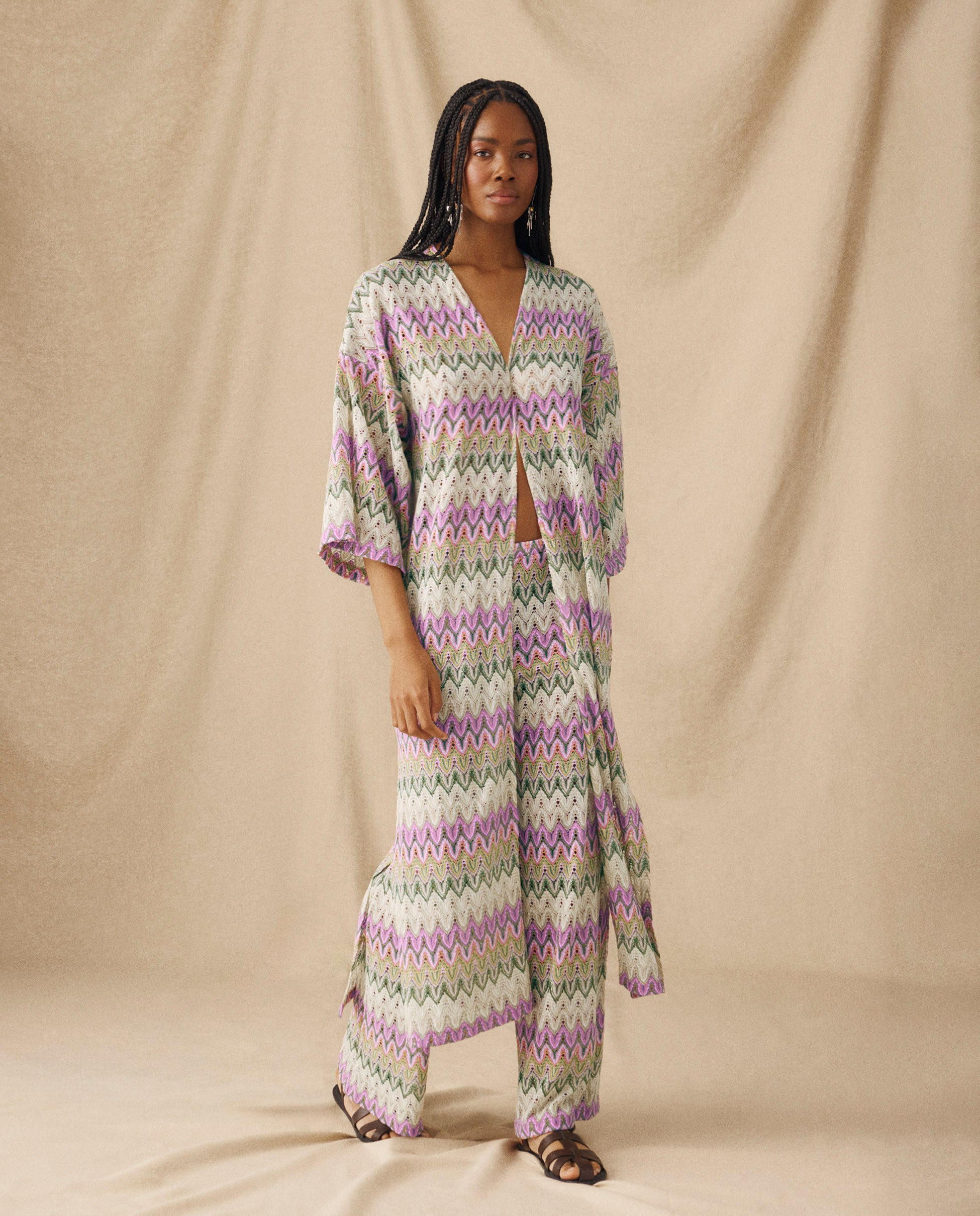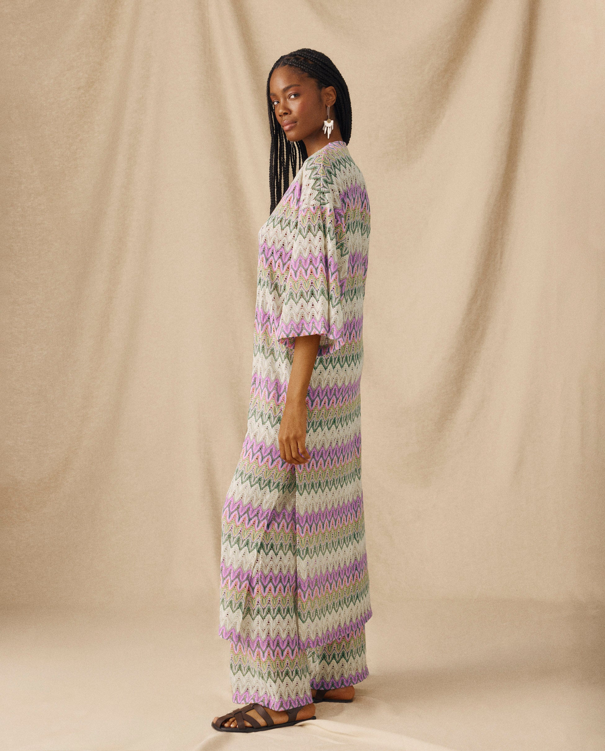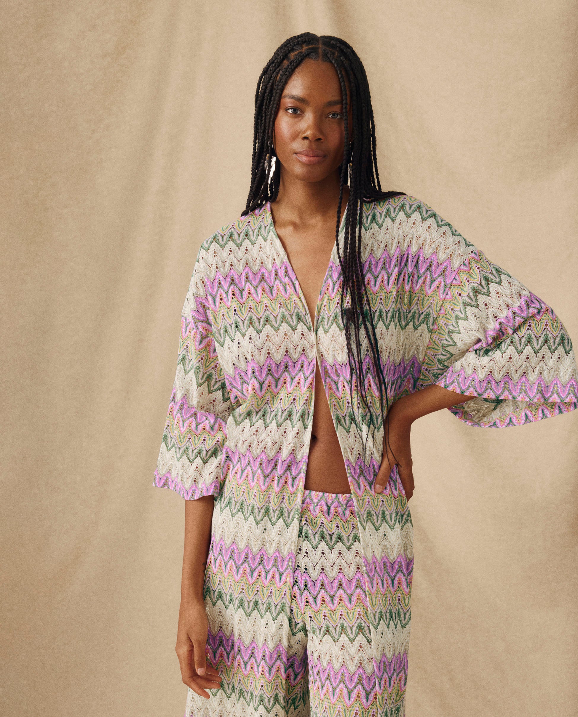KONA | Kimono Multicolor de Punto Calado Chevron