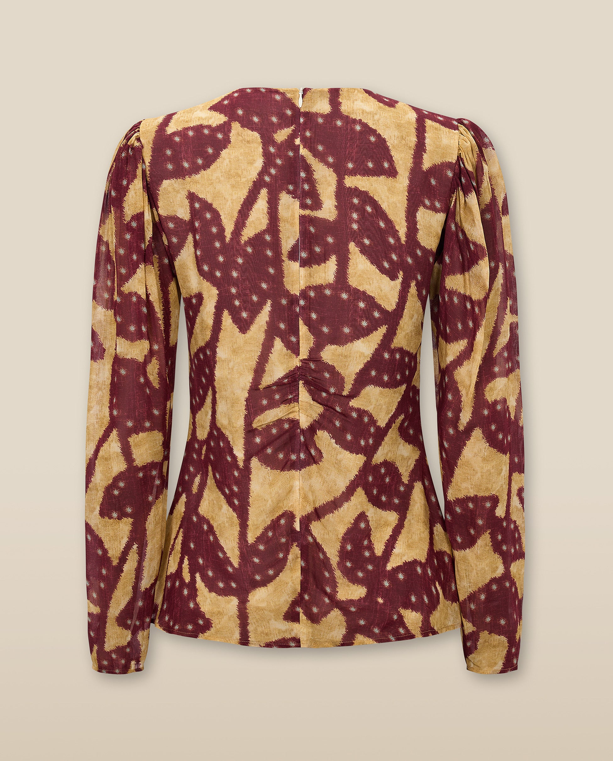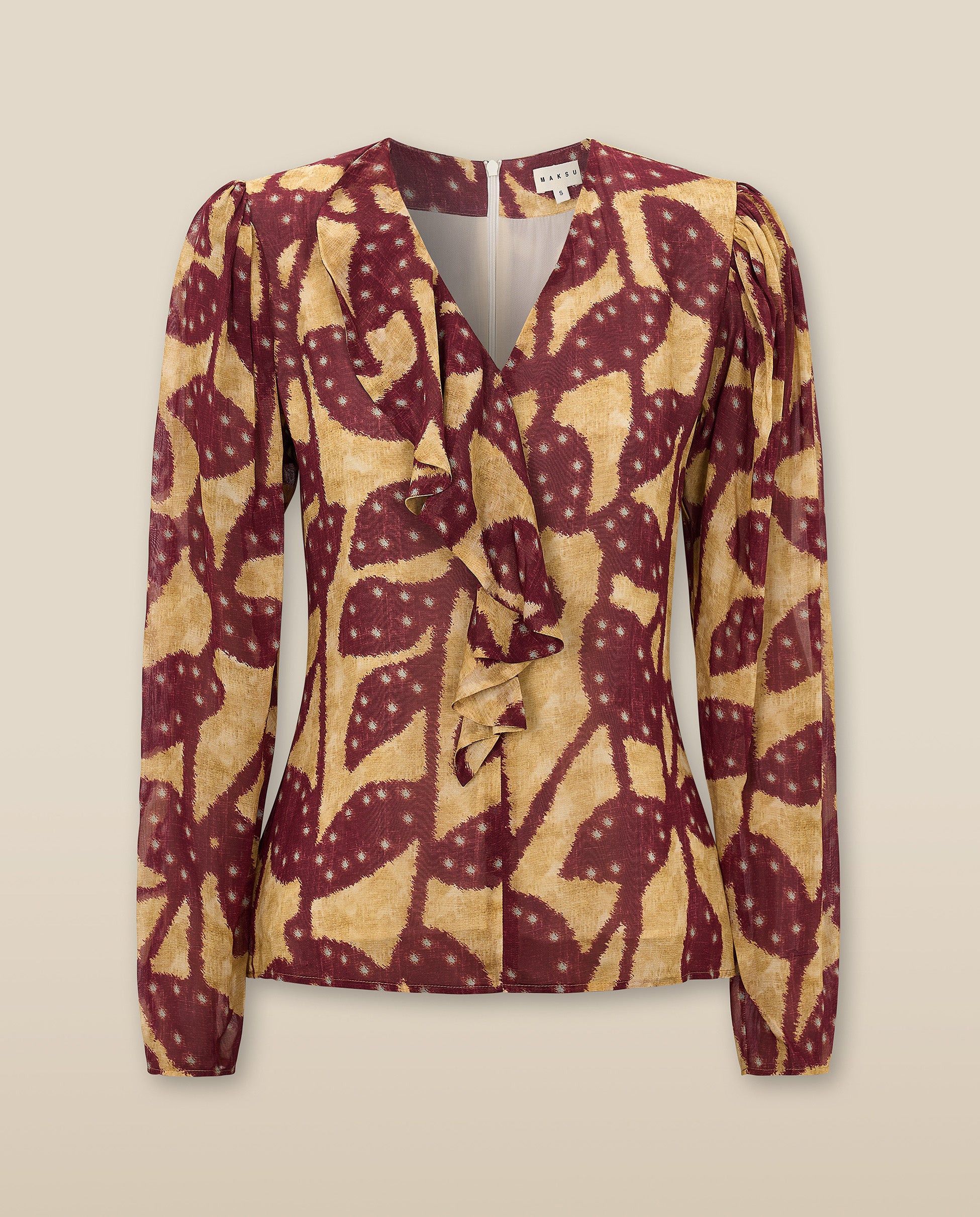 MILLIE | Blusa con Volantes en Burdeos y Dorado