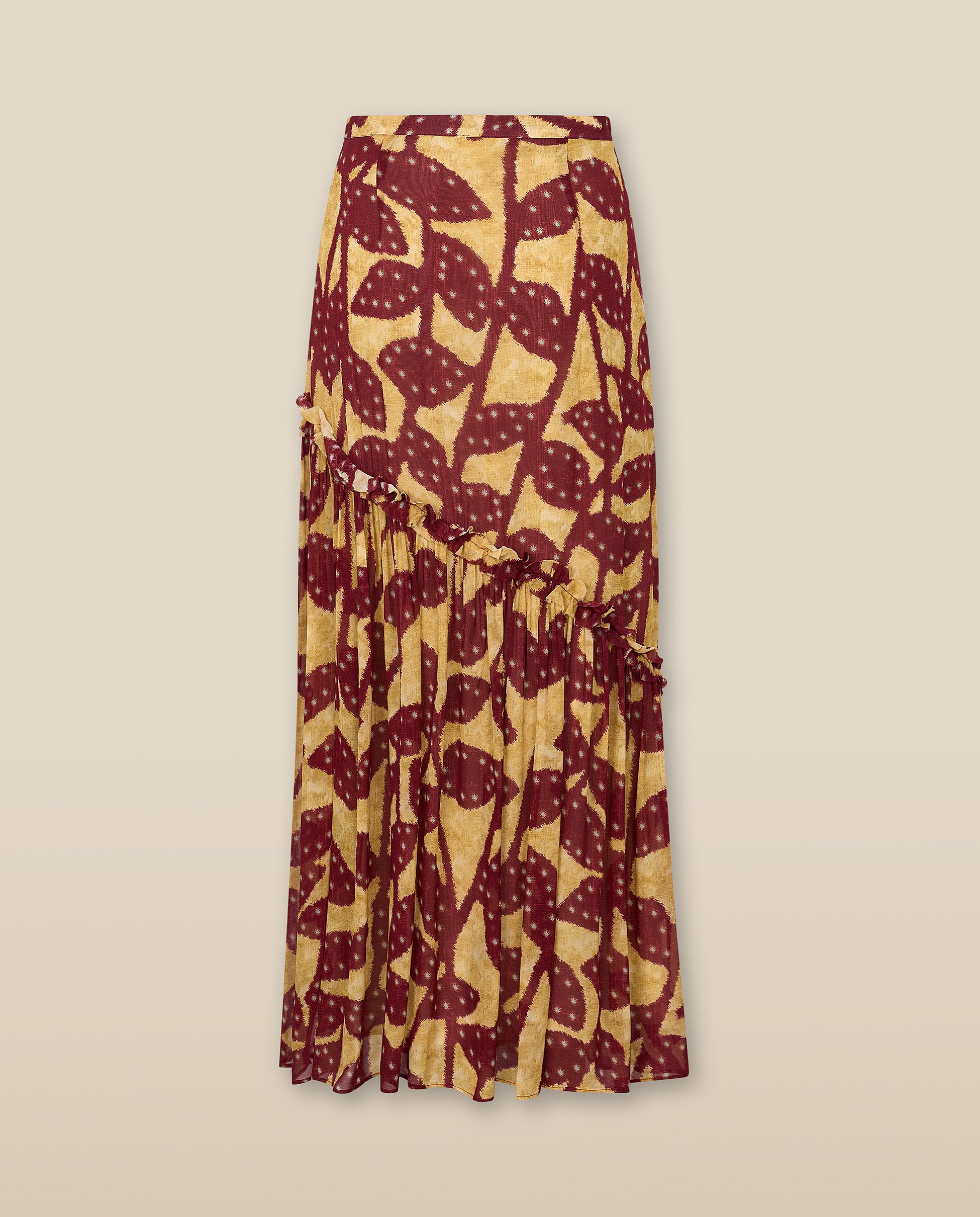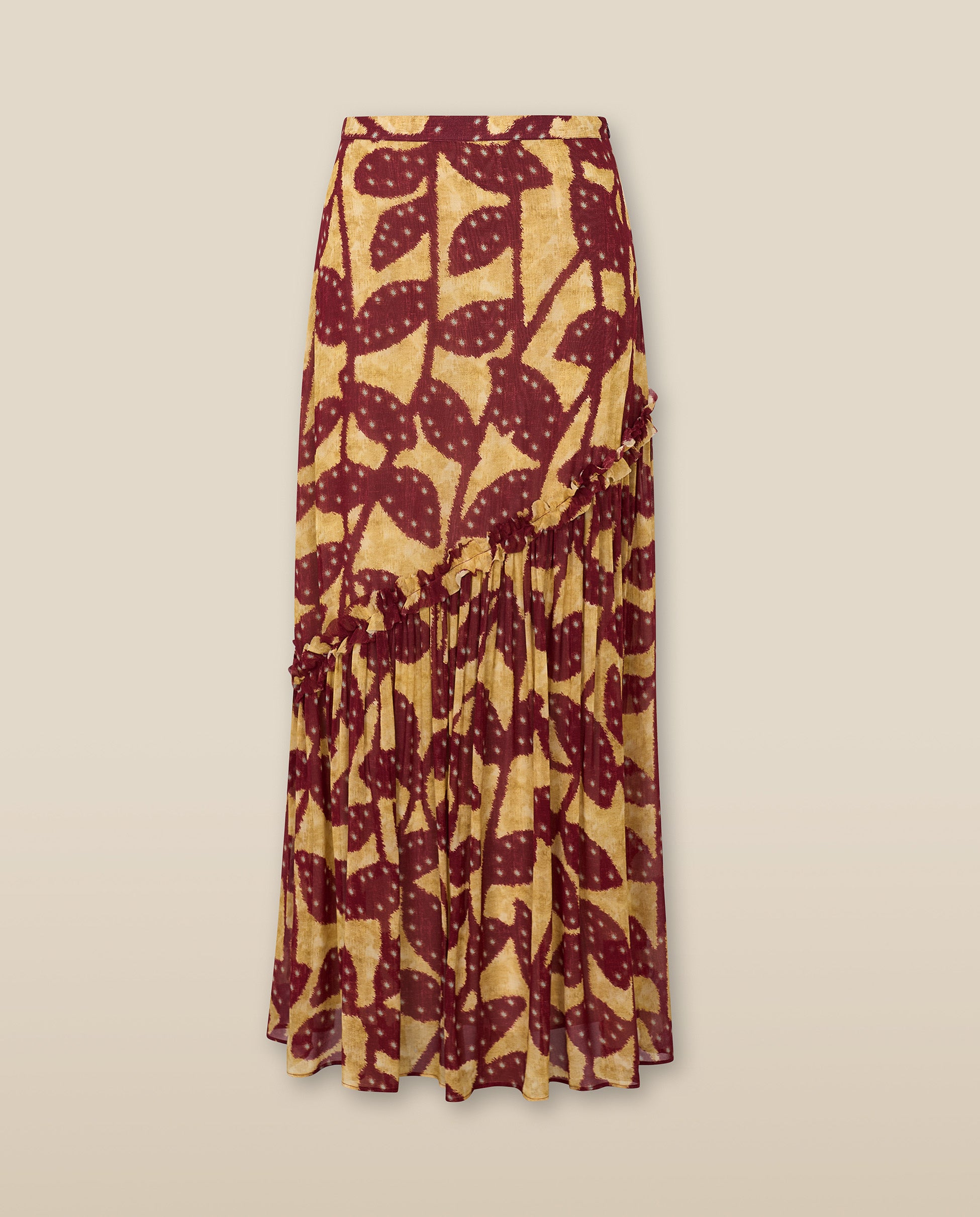 MILLIE | Falda Larga con Volantes en Burdeos y Dorado