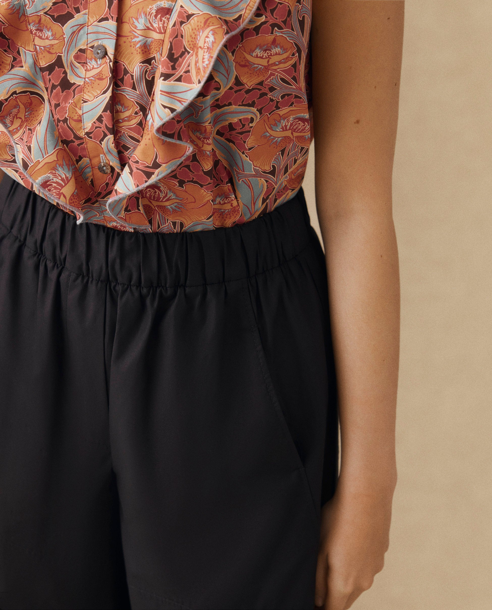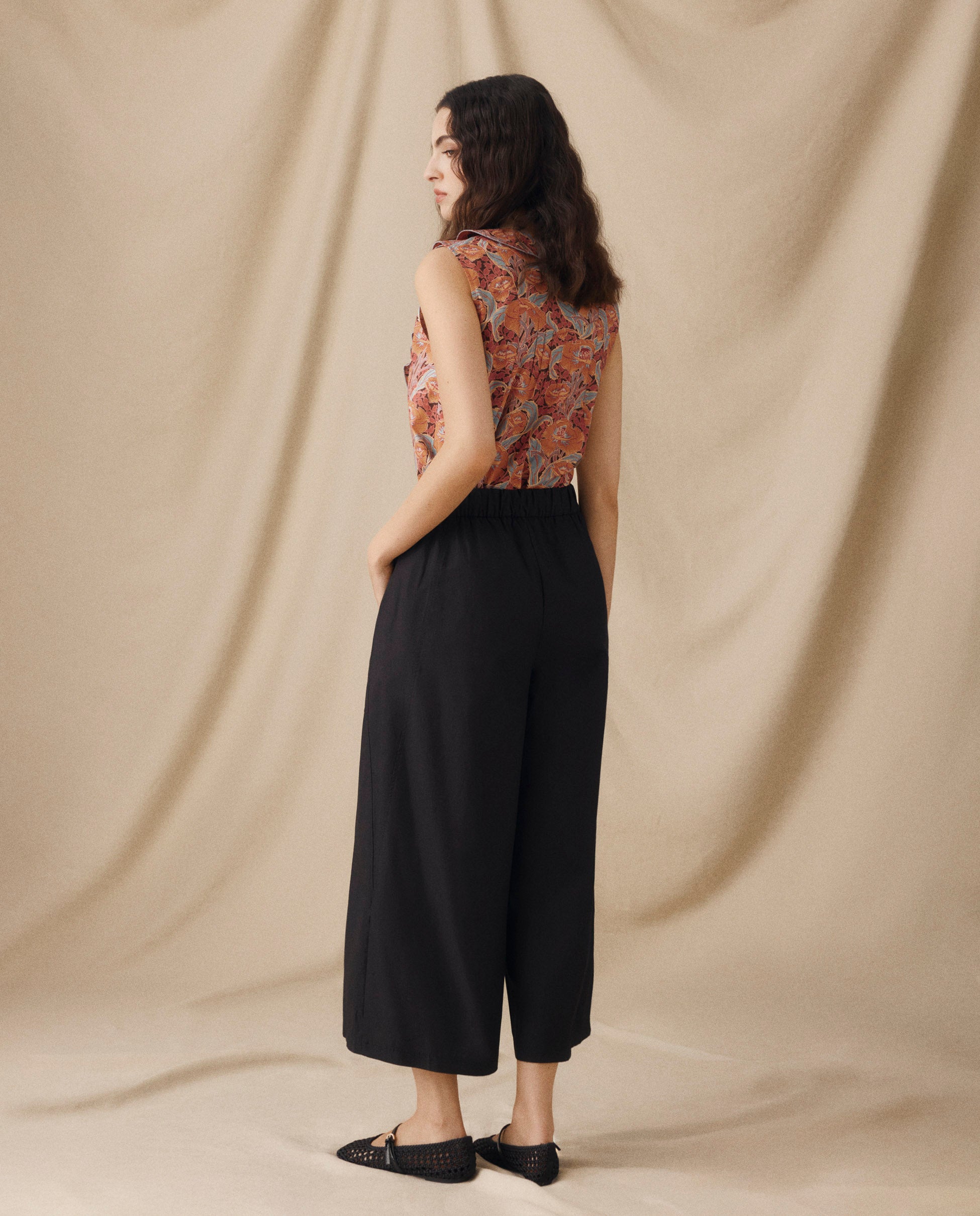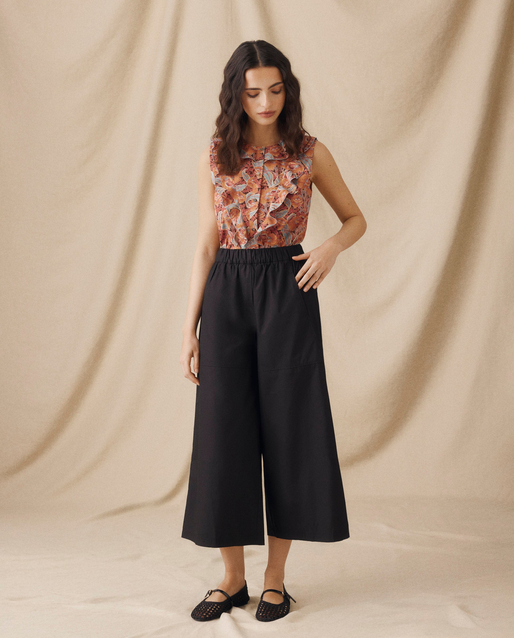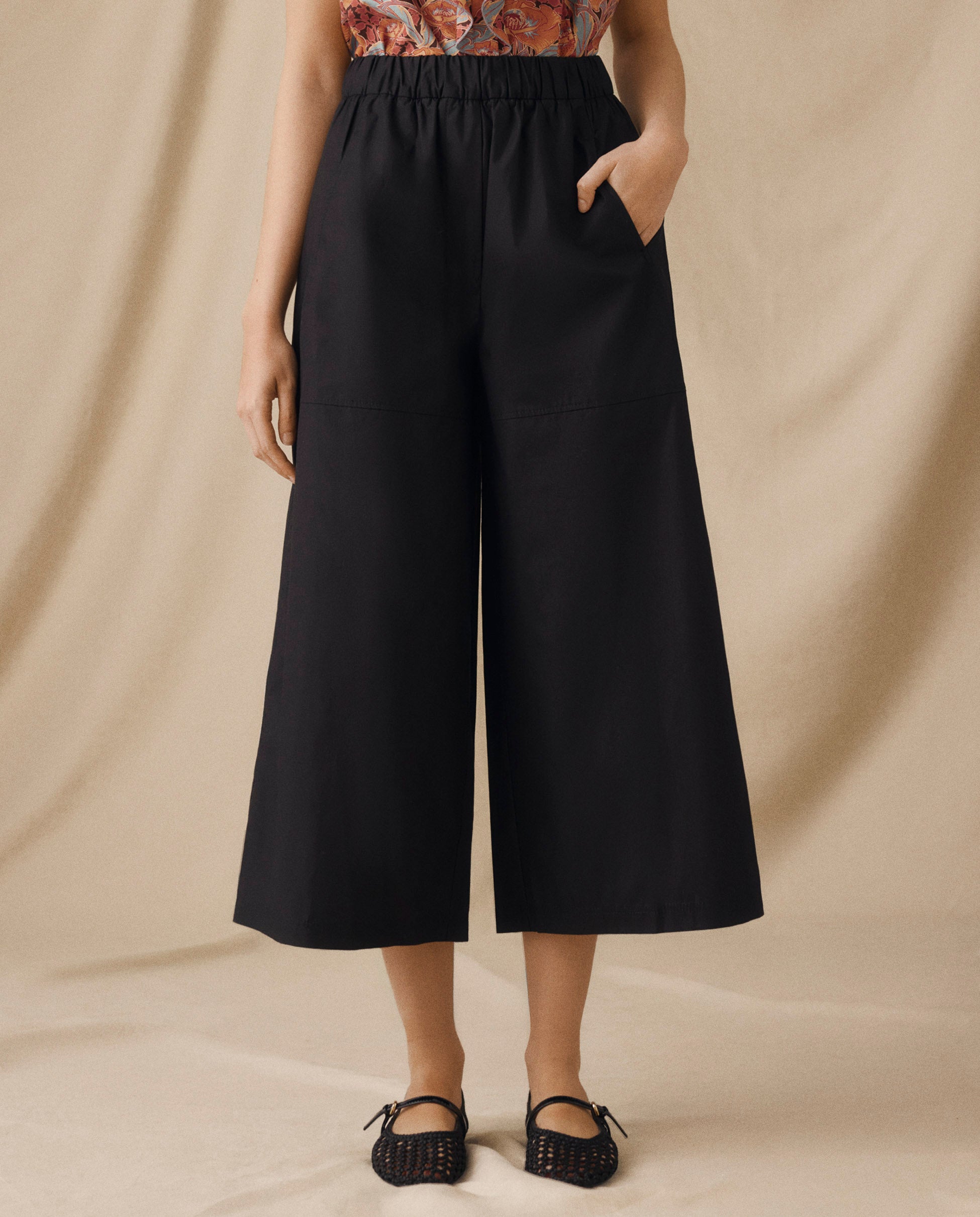 Atemporal y elegante, el pantalón Ana es una oda a la simplicidad del día a día: ese básico de armario en el que siempre se puede confiar. Confeccionado en algodón 100% y diseñado en negro clásico, ofrece un tacto ligero y transpirable con una silueta cuidada y depurada. El corte de pierna ancha, la cintura elástica y los bolsillos laterales combinan comodidad con discreta sofisticación.