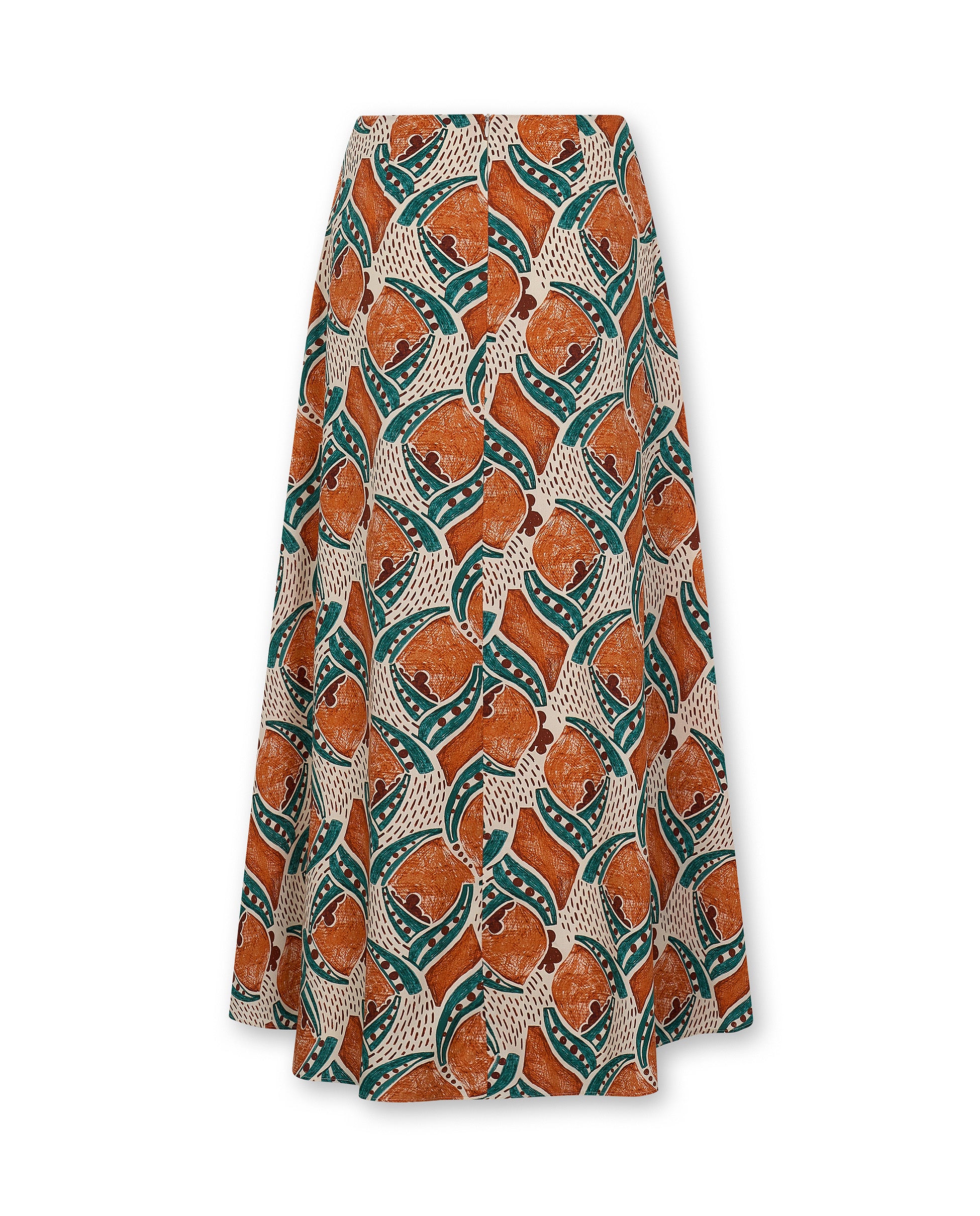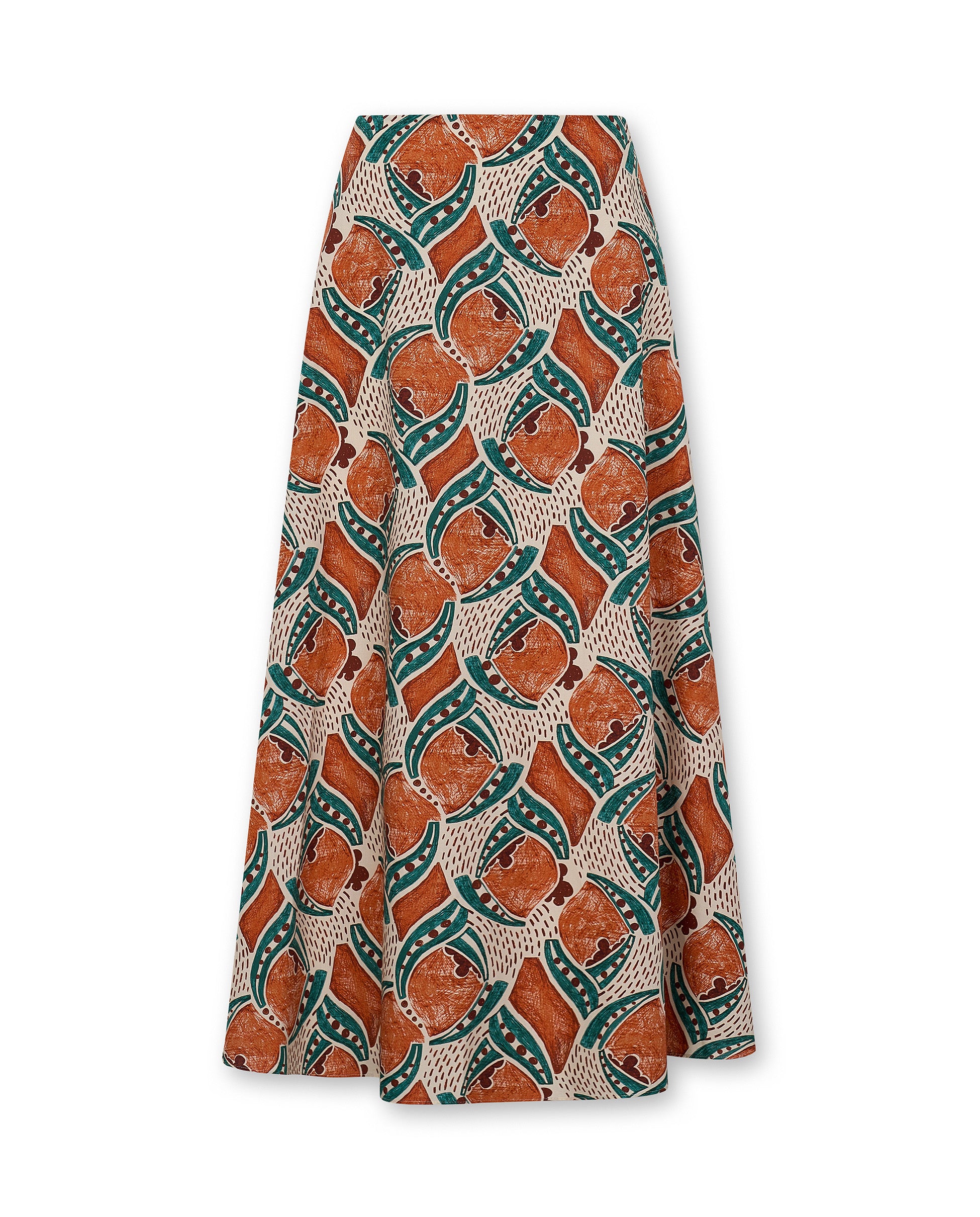 AYLA | Falda de Algodón Estampada en Terracota y Verde Azulado