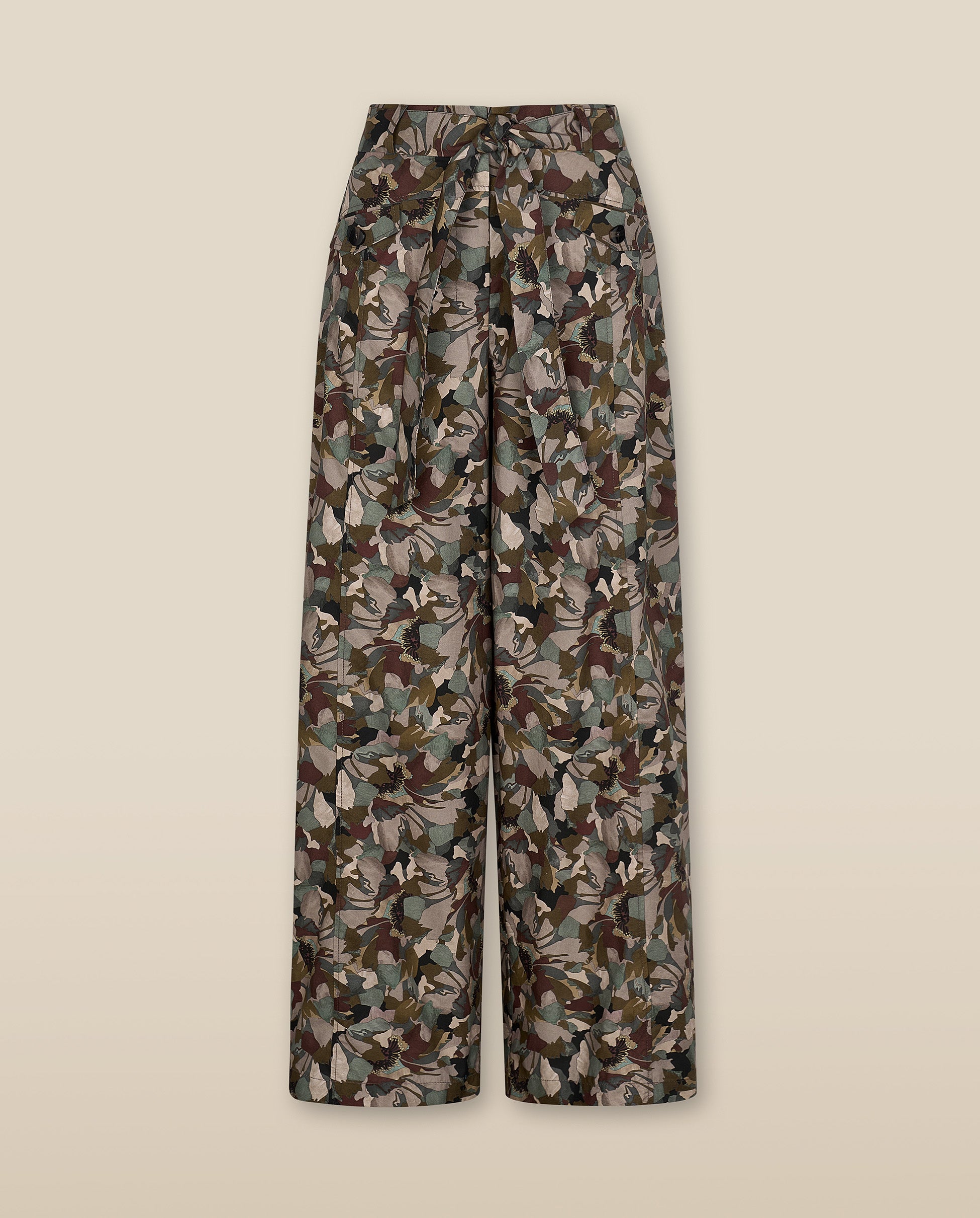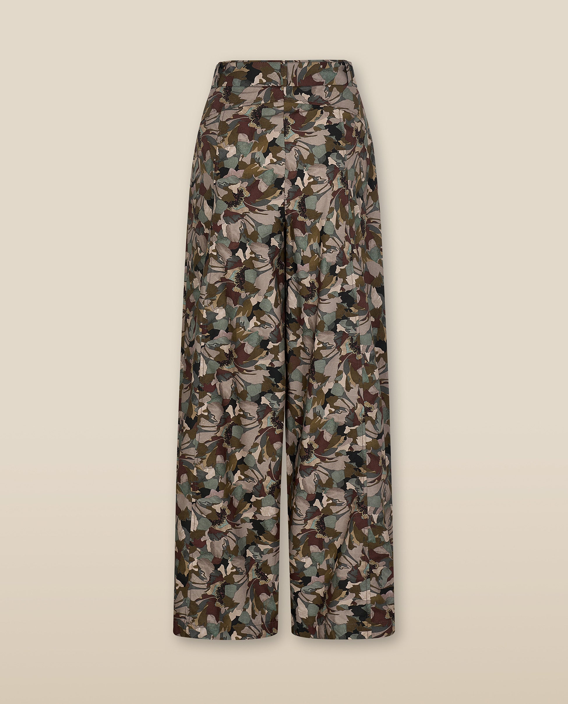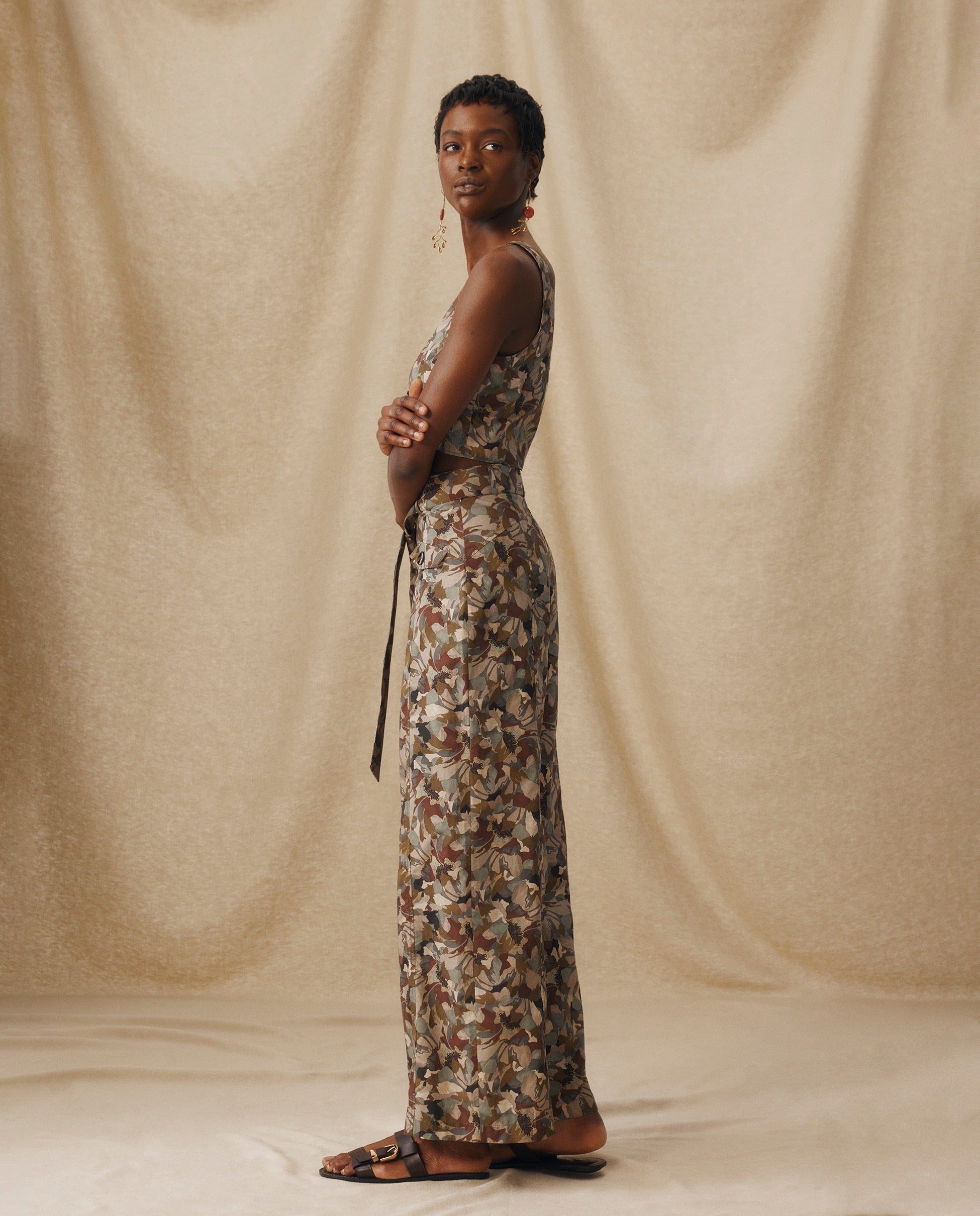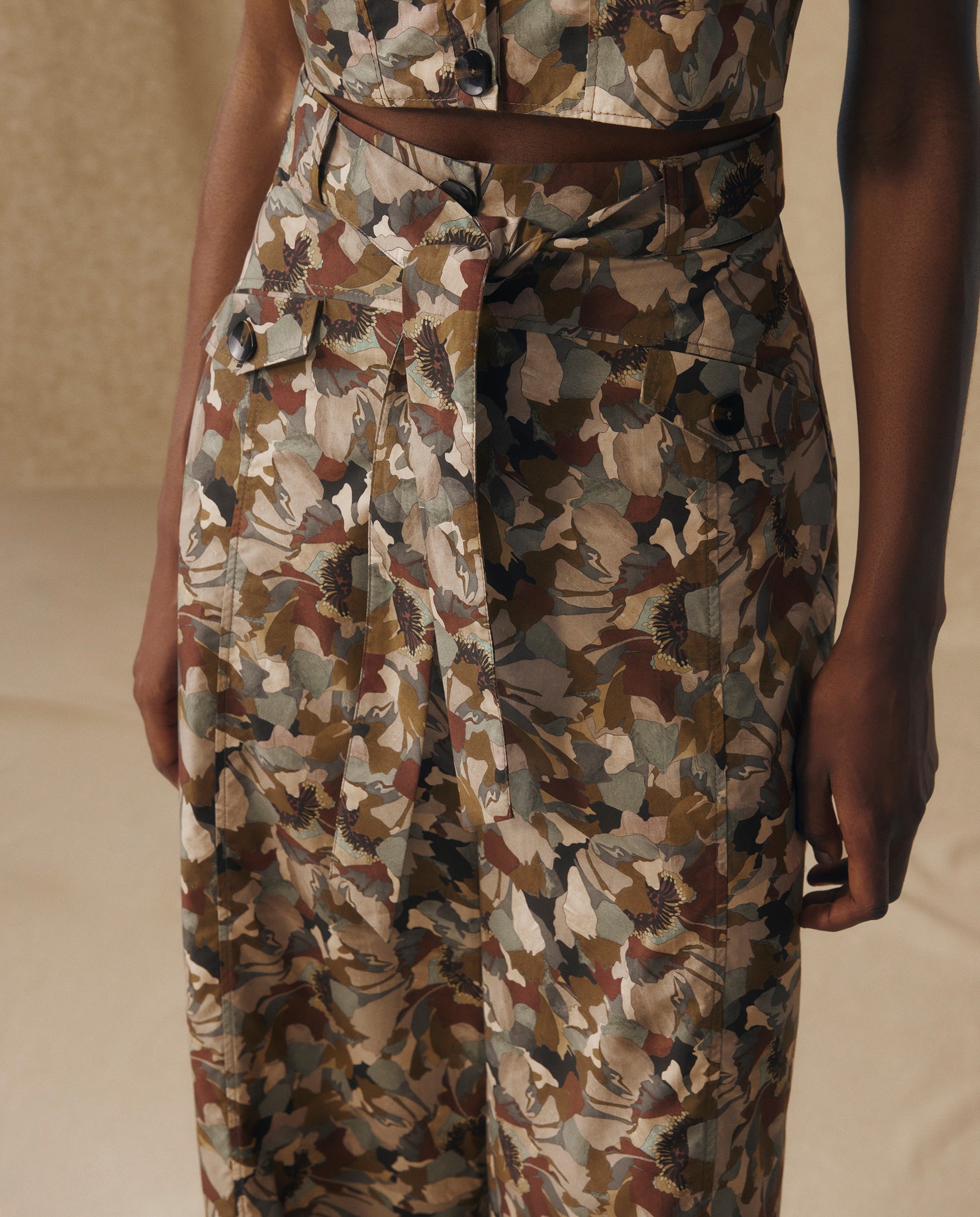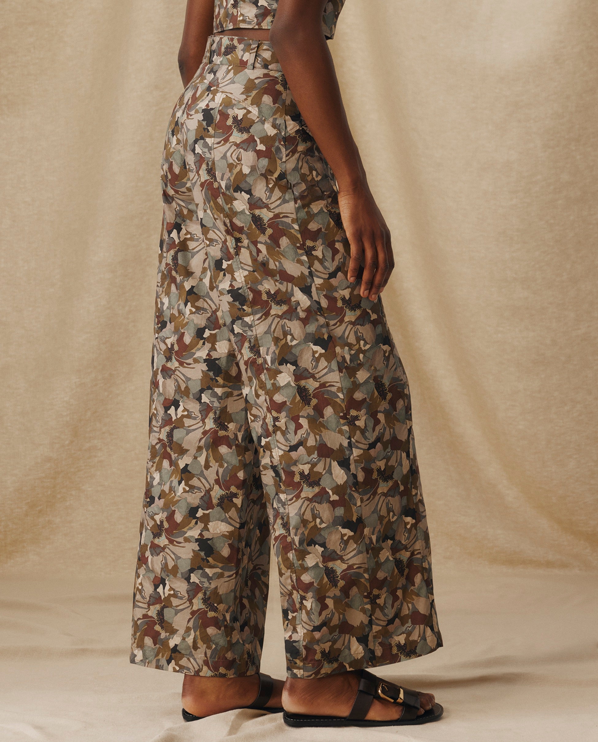 De elegancia natural, el pantalón Misty está confeccionado en algodón Liberty con un delicado estampado floral en tonos tierra. Presenta una silueta de talle alto y pierna ancha que cae con fluidez, y se completa con un cinturón a juego que ciñe la cintura. Combínalo con el top coordinado para un look completo. • Algodón Liberty con caída fluida y estampado floral en tonos naturales • Silueta de talle alto y pierna ancha con cierre lateral • Incluye cinturón a juego y top coordinado