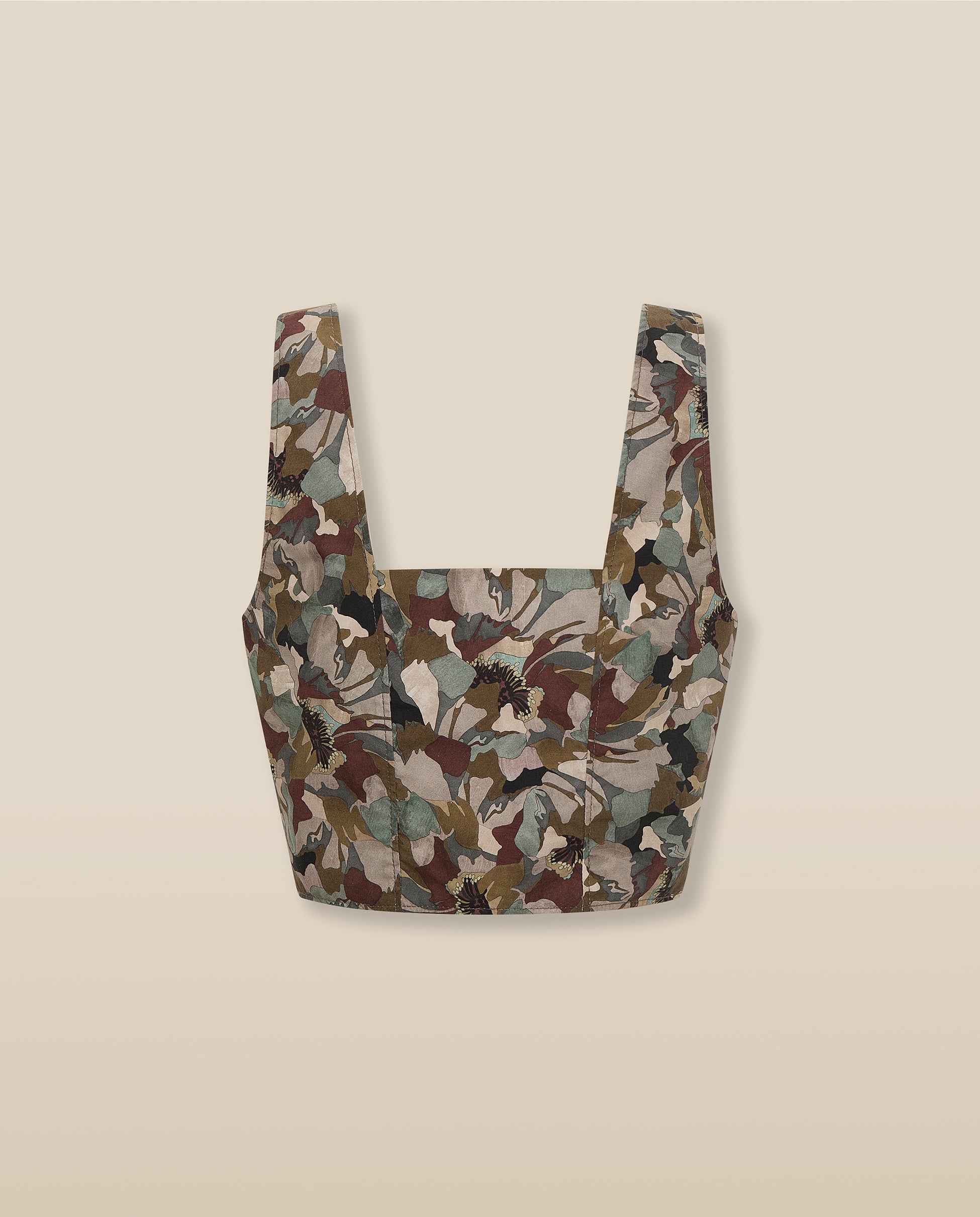MISTY | Top Corto de Algodón Liberty con Estampado Floral en Tonos Neutros