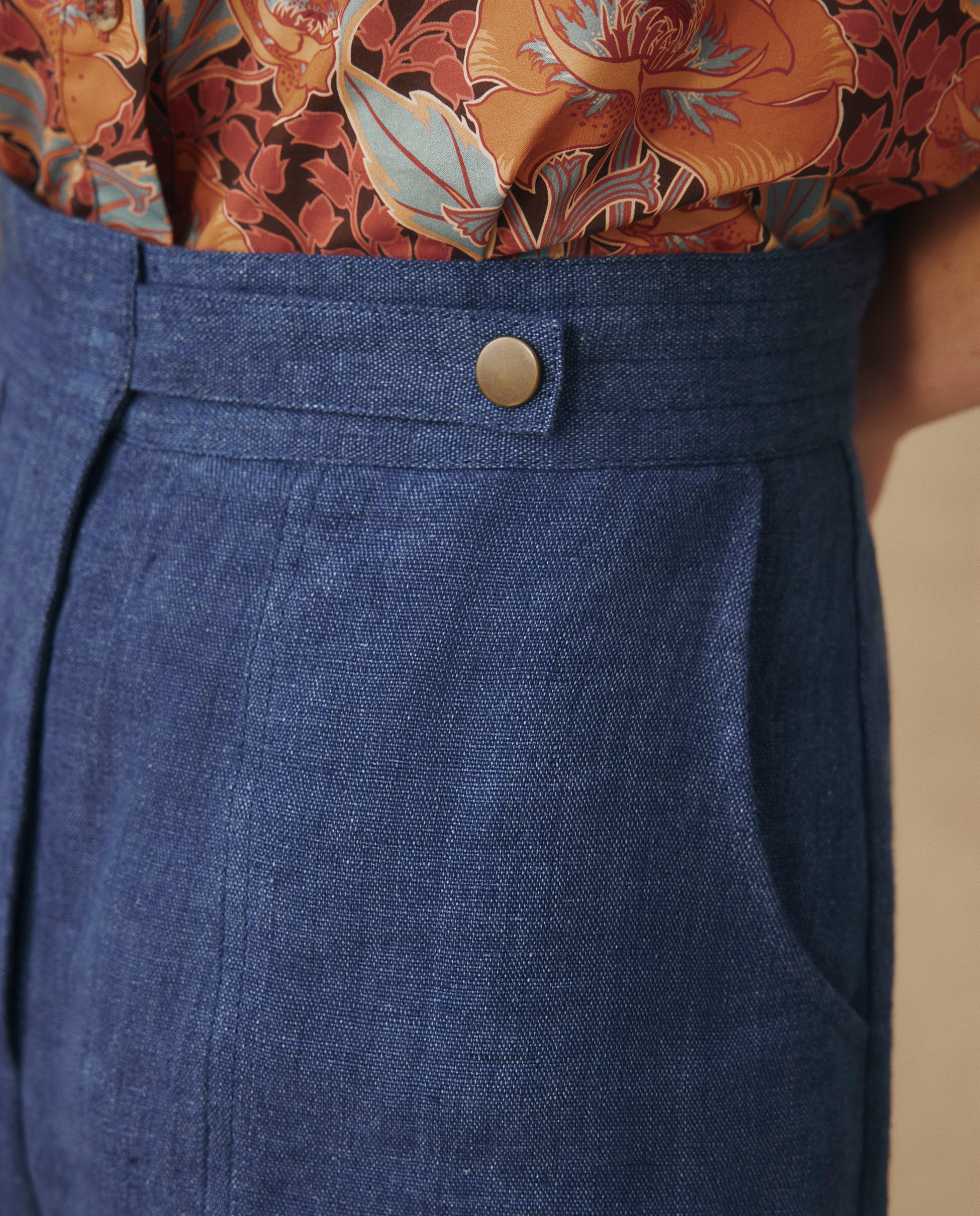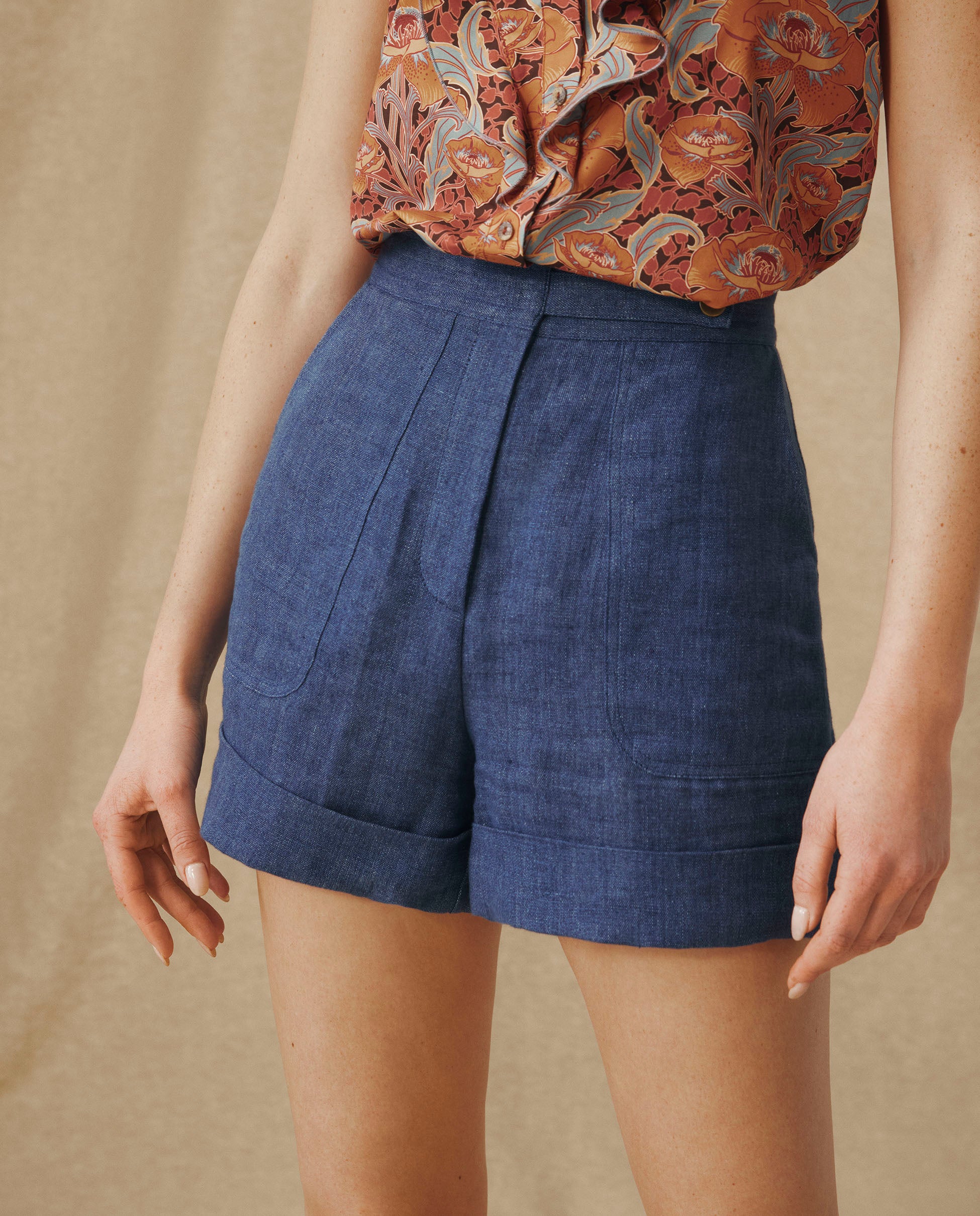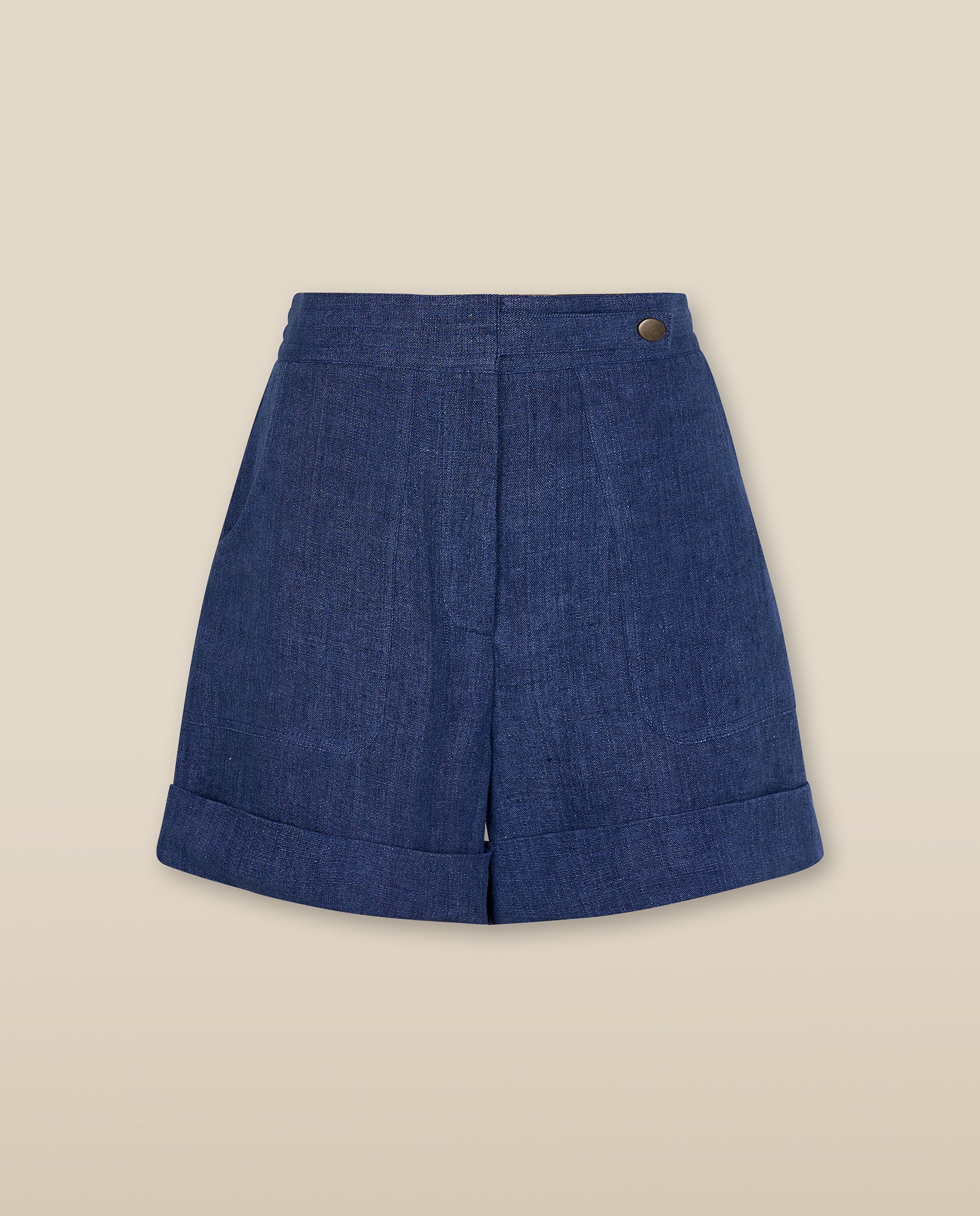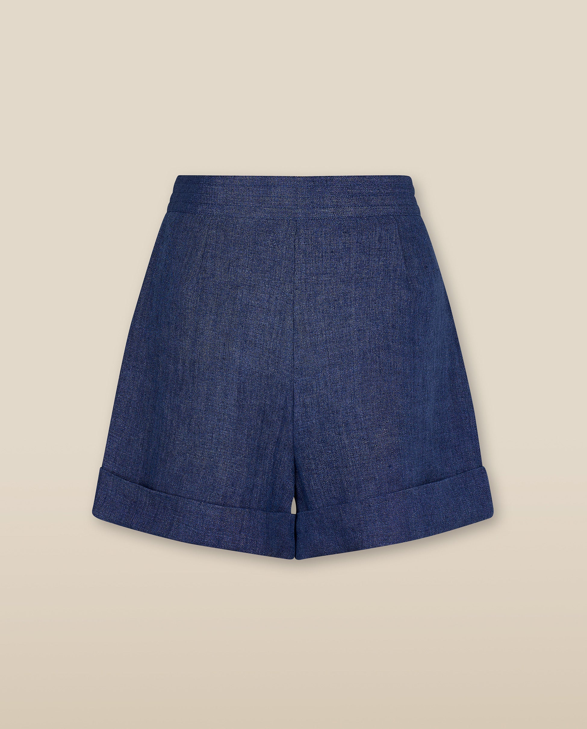 ZURI | Short de Lino Azul Índigo con Talle Alto