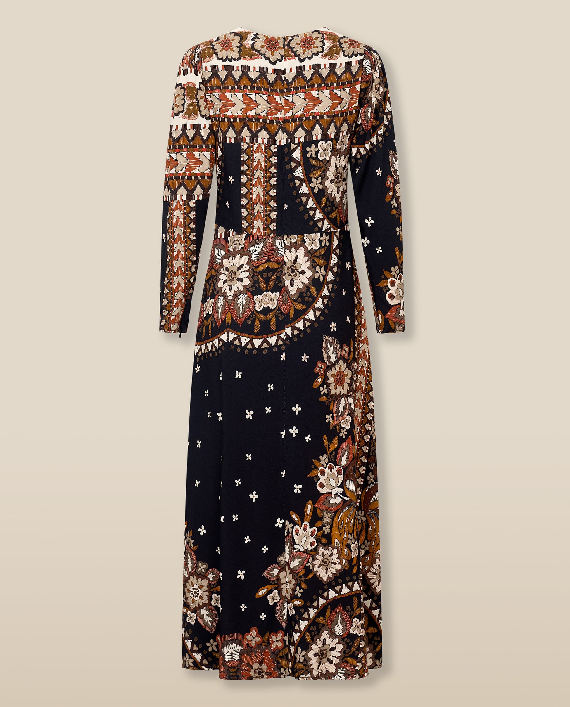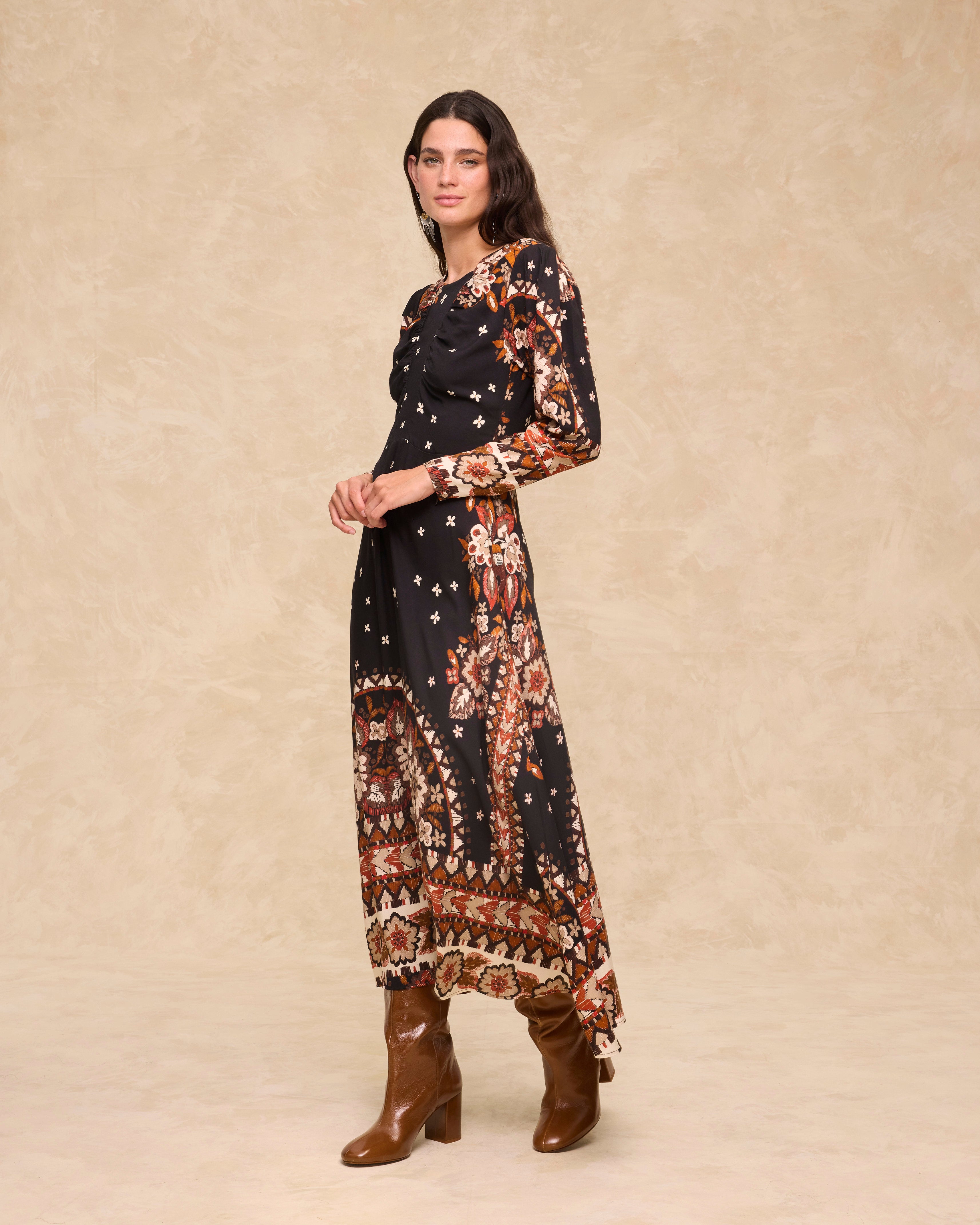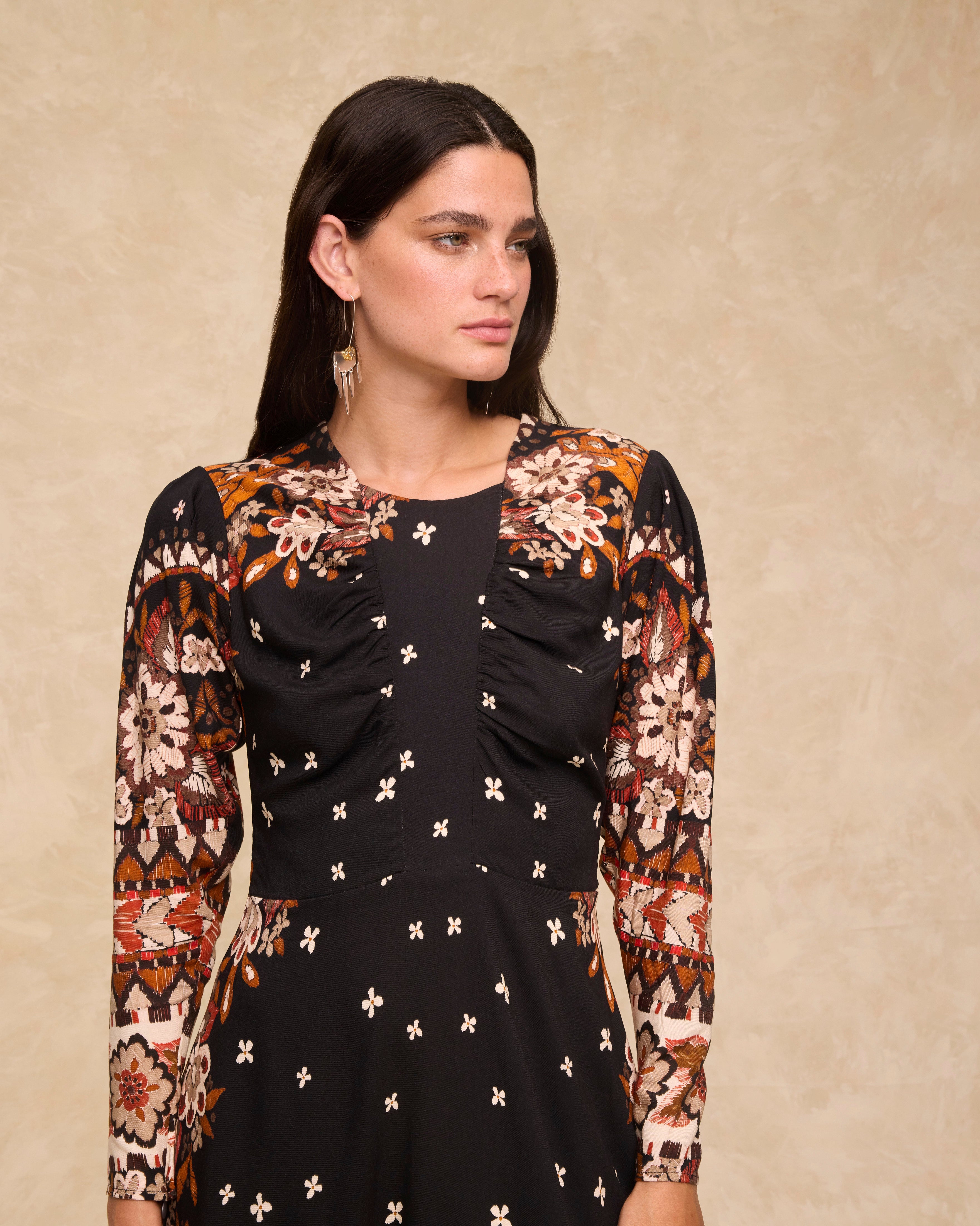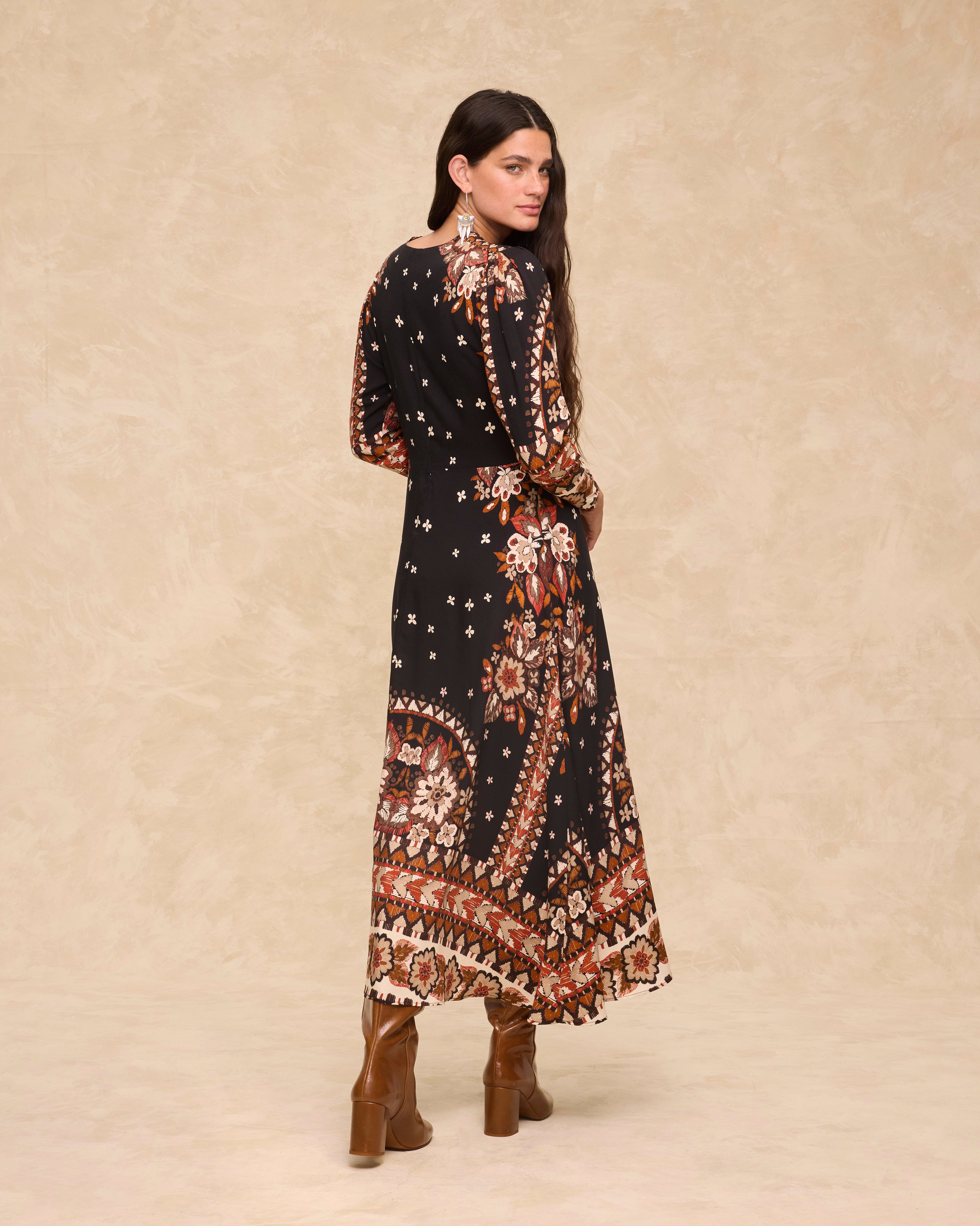 DELPHINE | Vestido Midi con Estampado Floral Paisley Negro