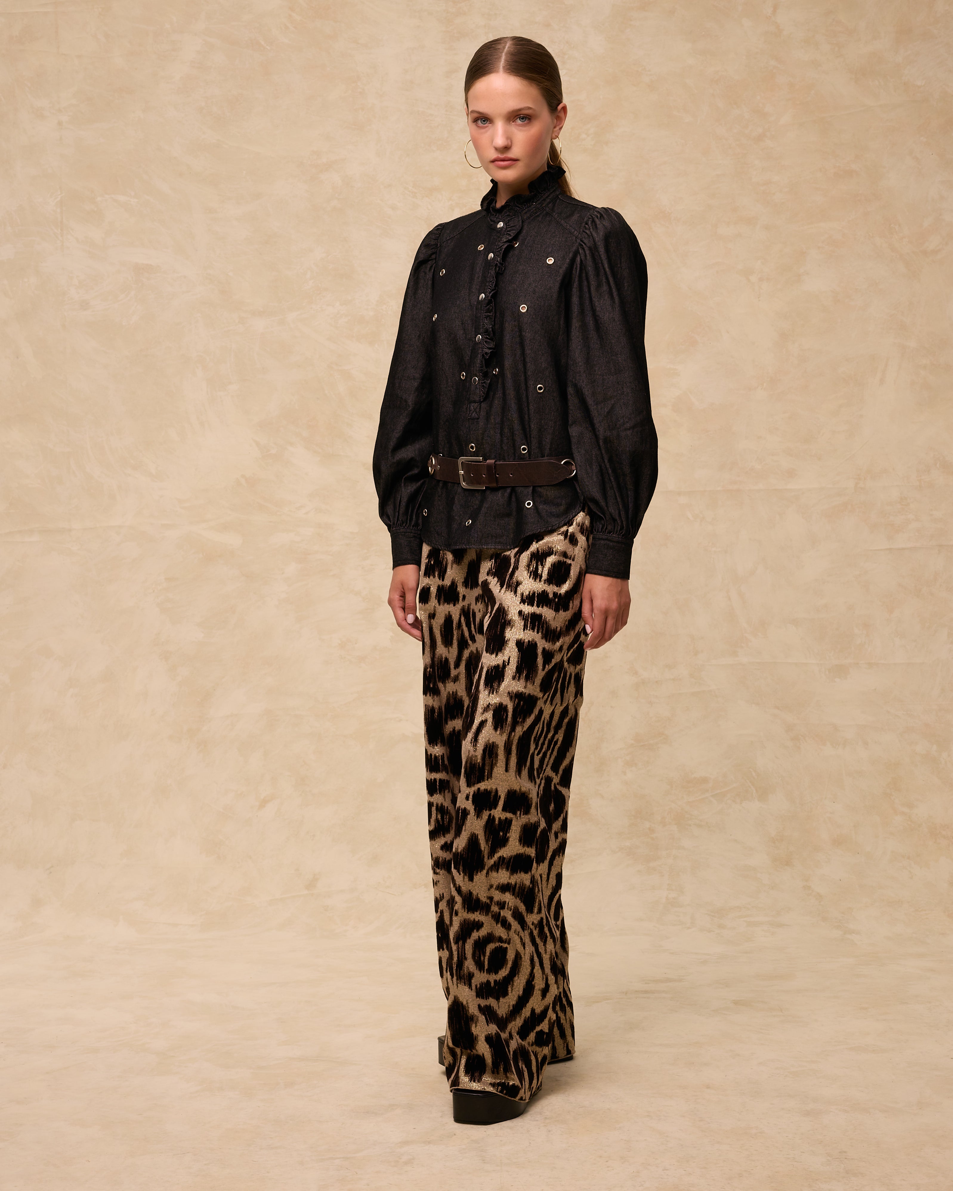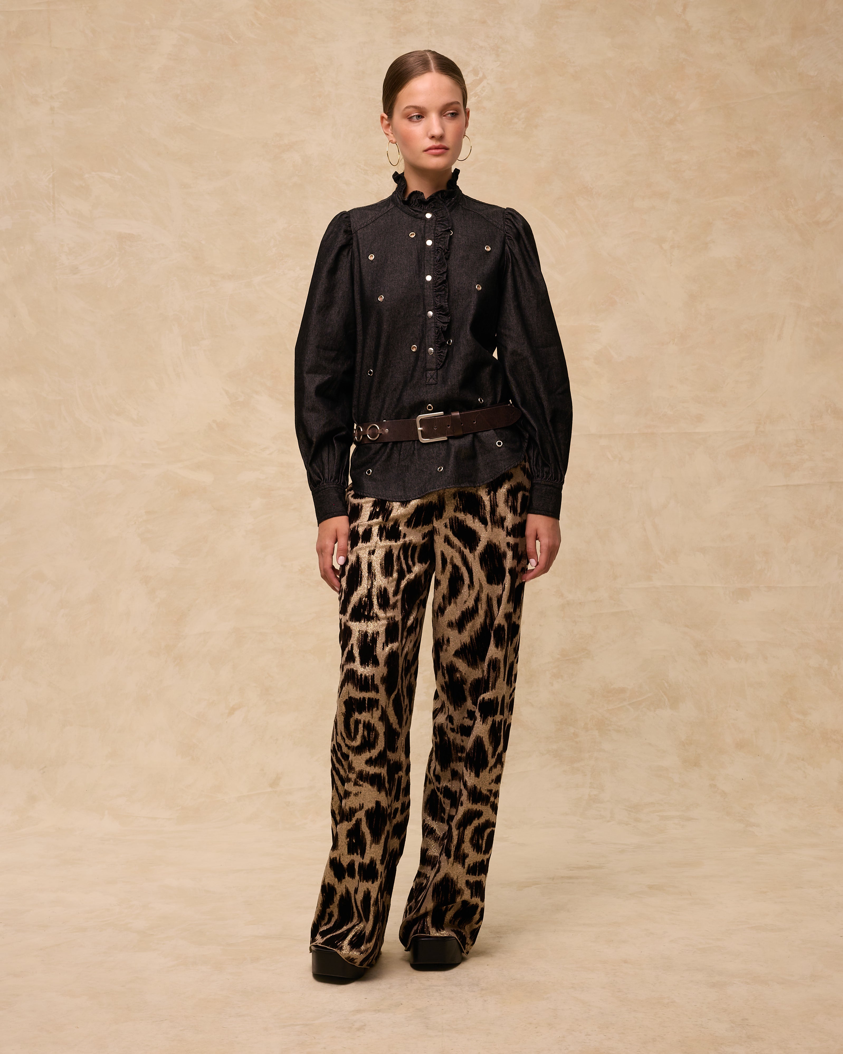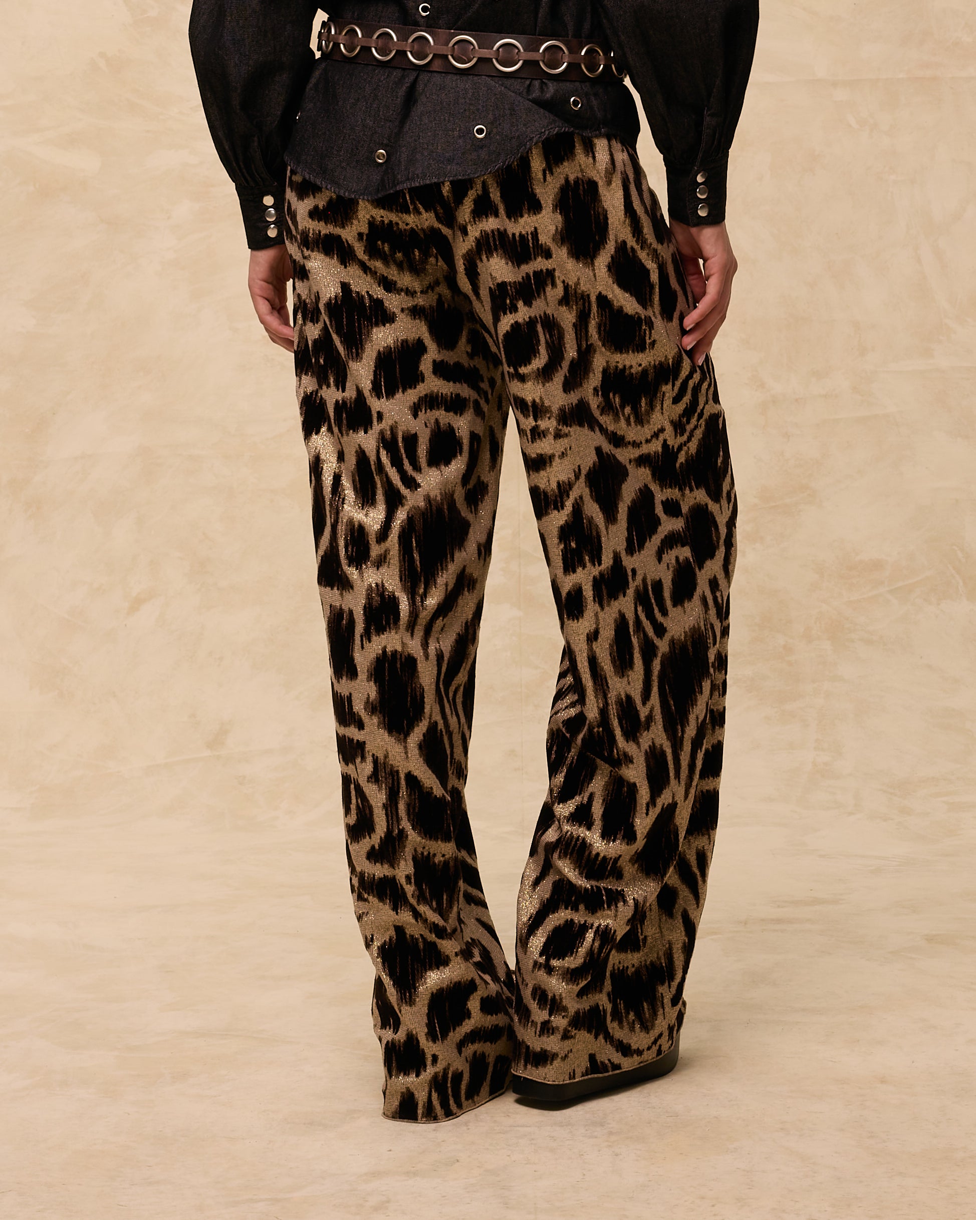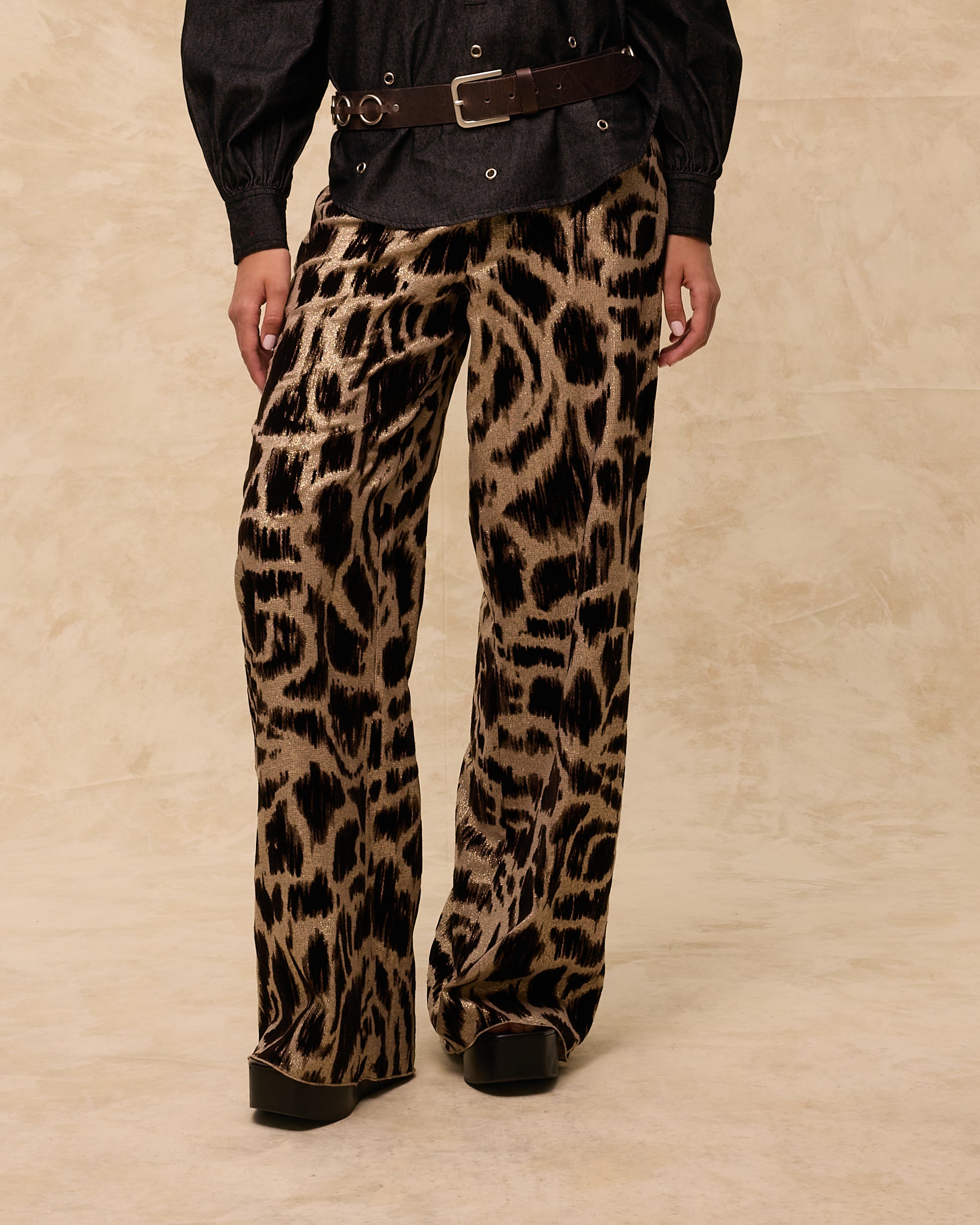 BEDUINA | Pantalones Anchos Jacquard Leopardo en Dorado