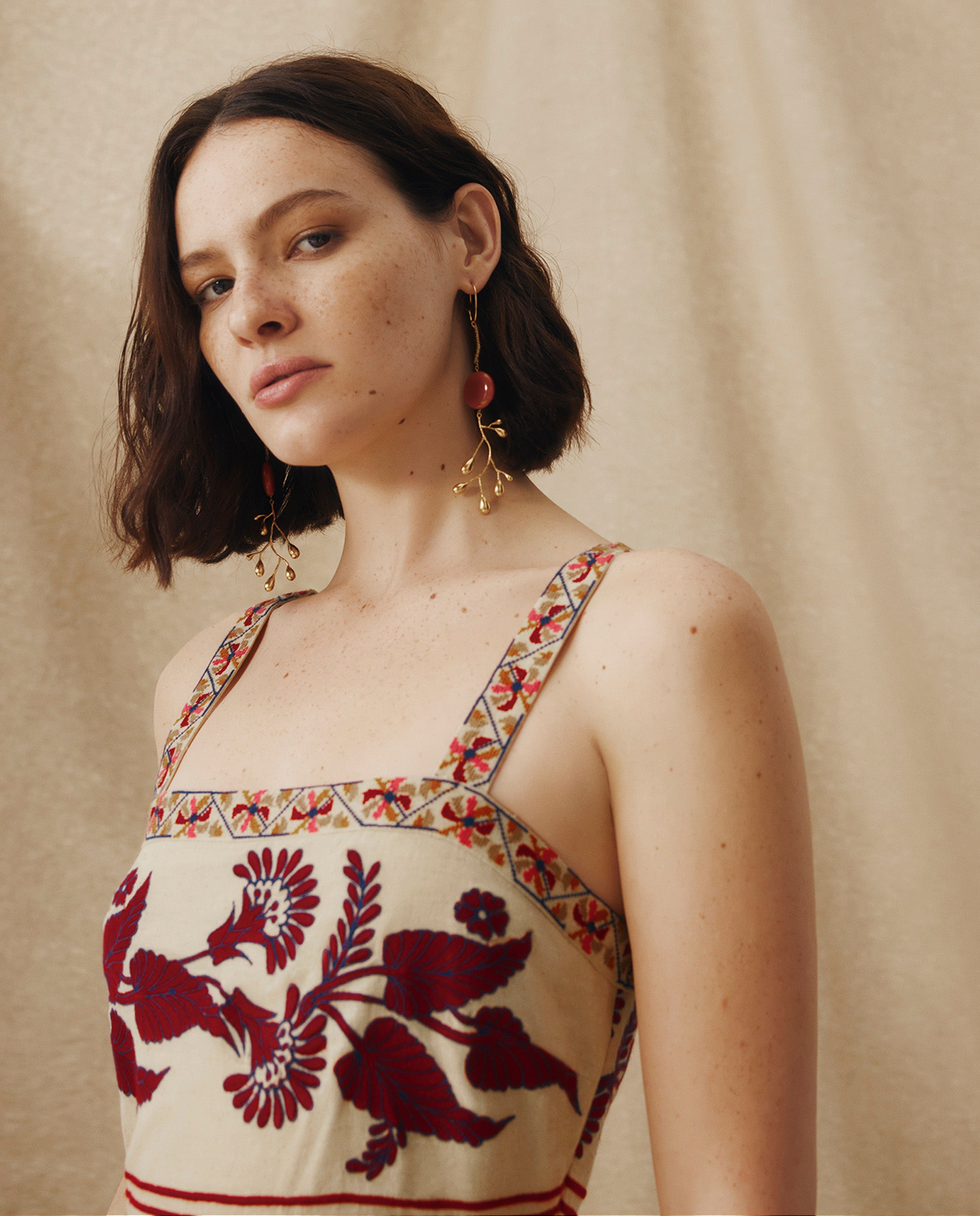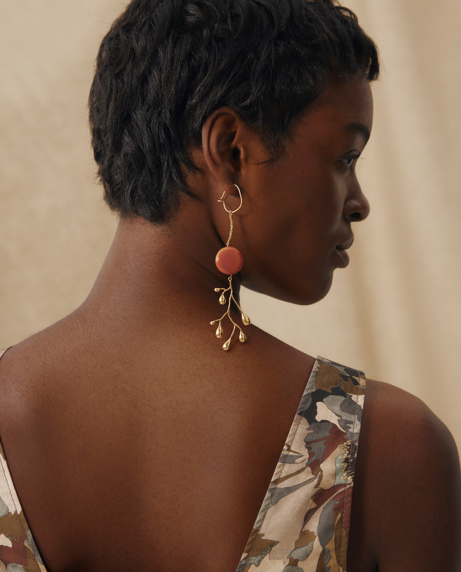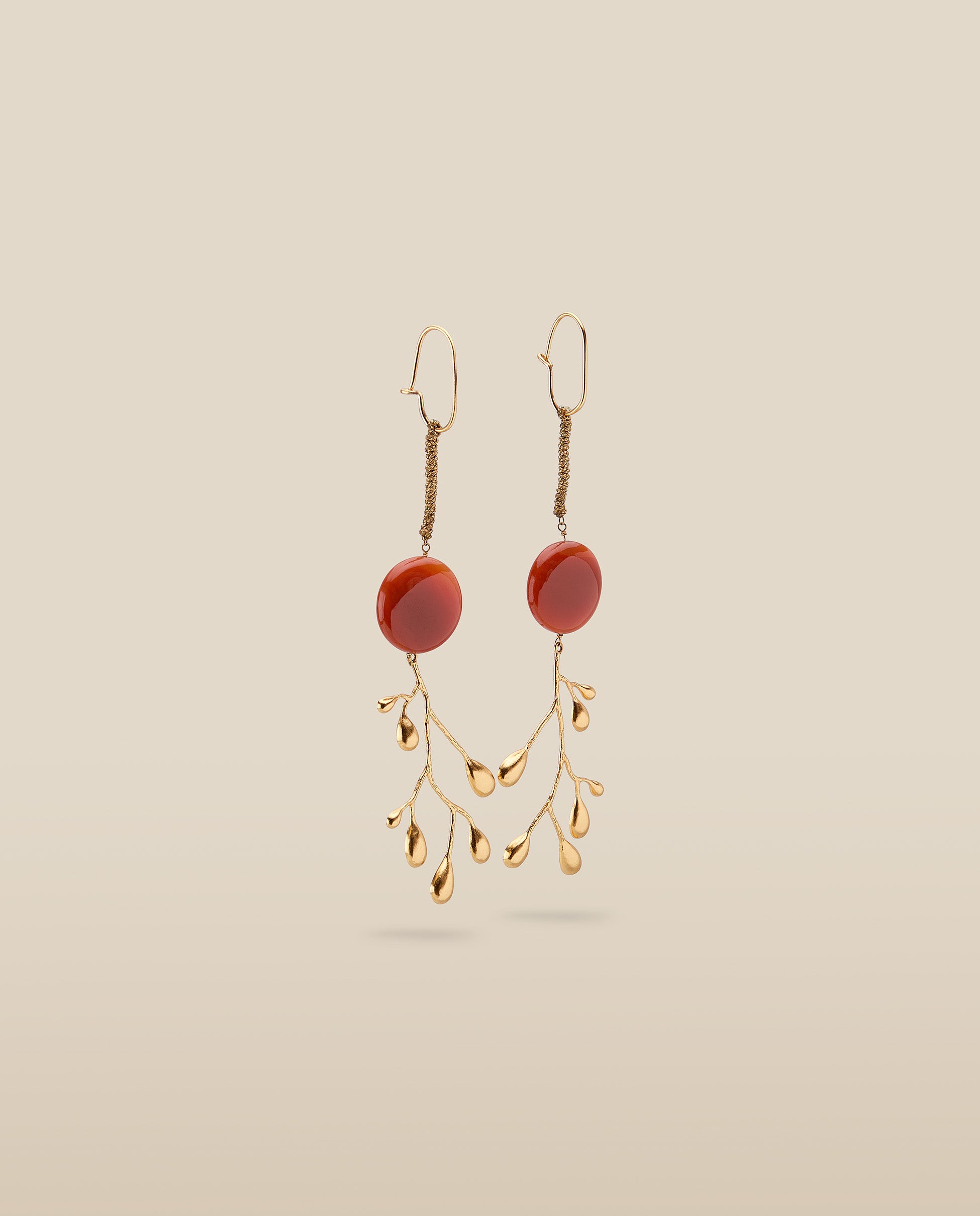 Inspirados en la naturaleza, los pendientes Brancheen combinan ramas esculturales con un toque de color. Confeccionados en metal chapado en oro de 22 quilates, cada pendiente cuenta con una Ágata Natural en forma circular de 2cm de diámetro.