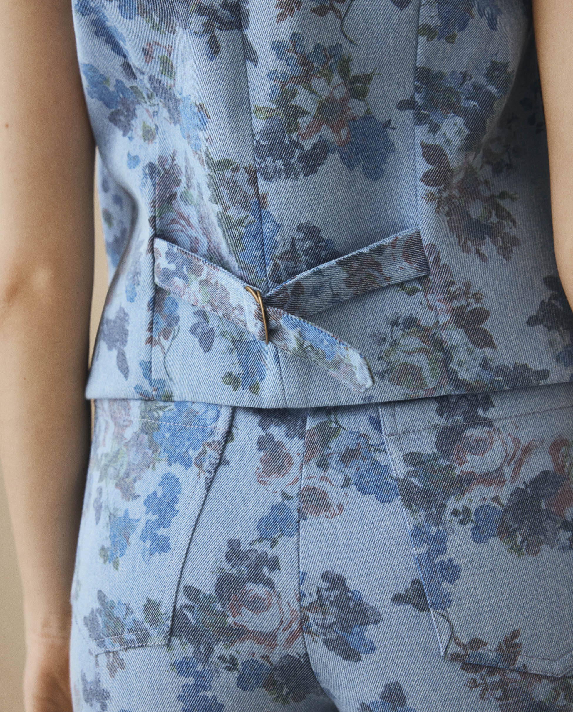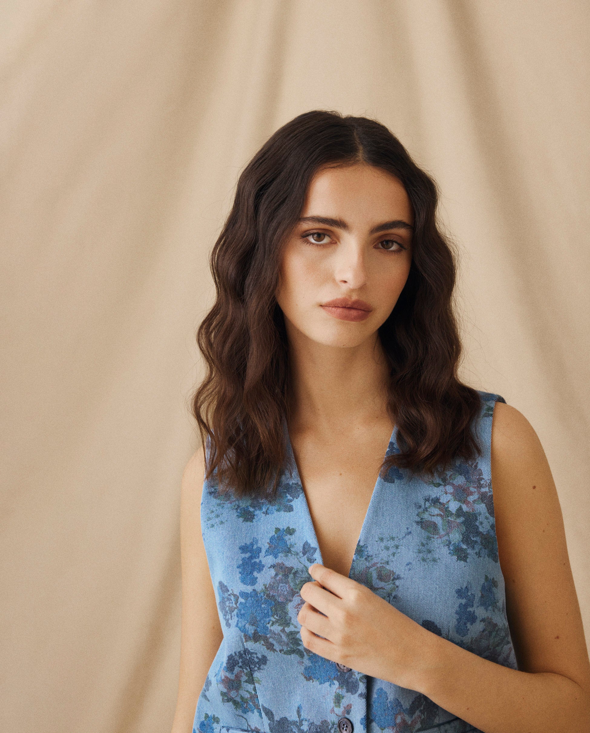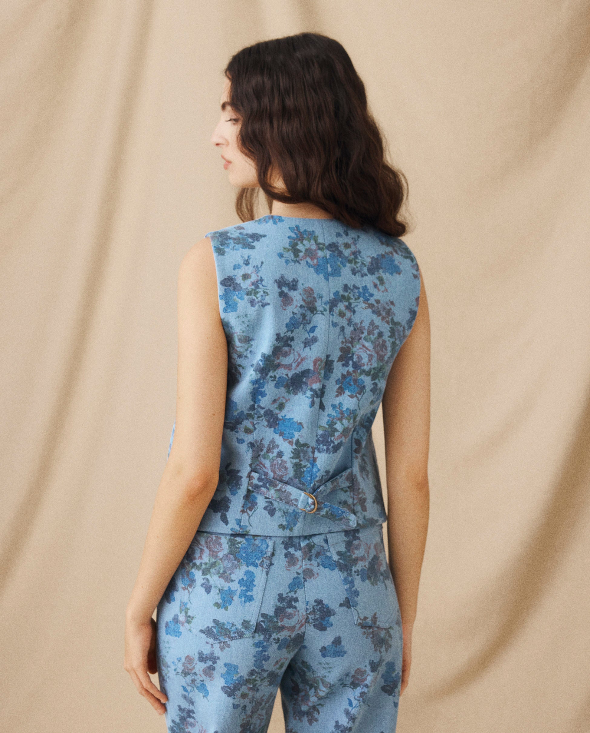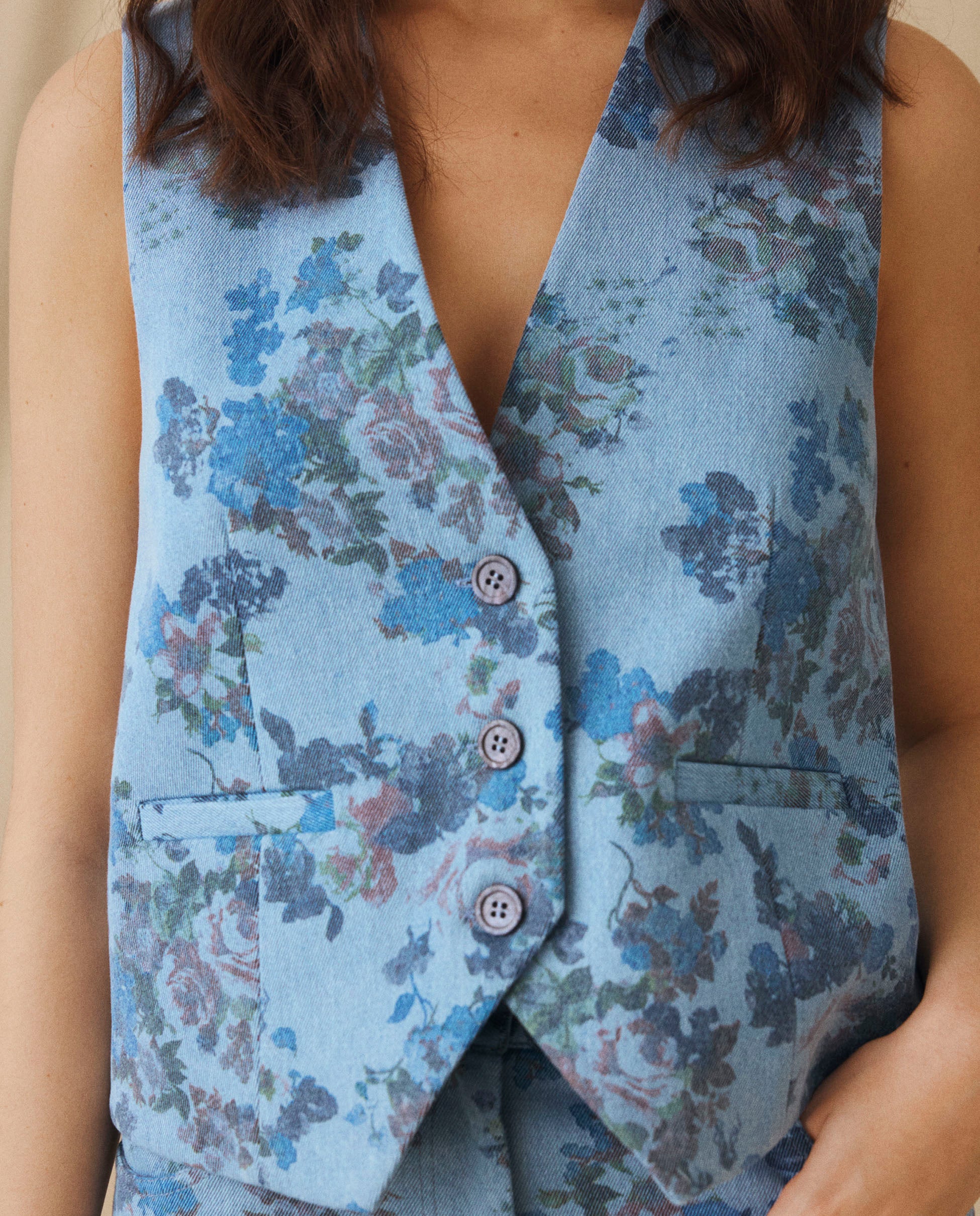 CONNIE | Chaleco de Algodón Estampado Floral Azul