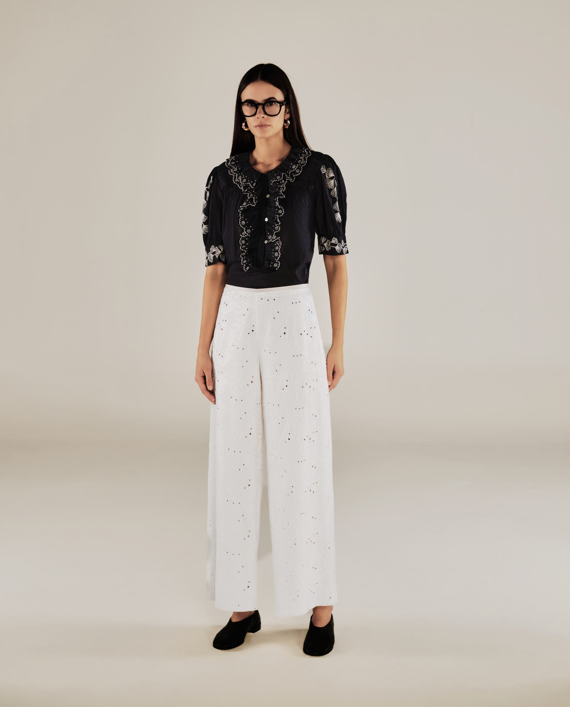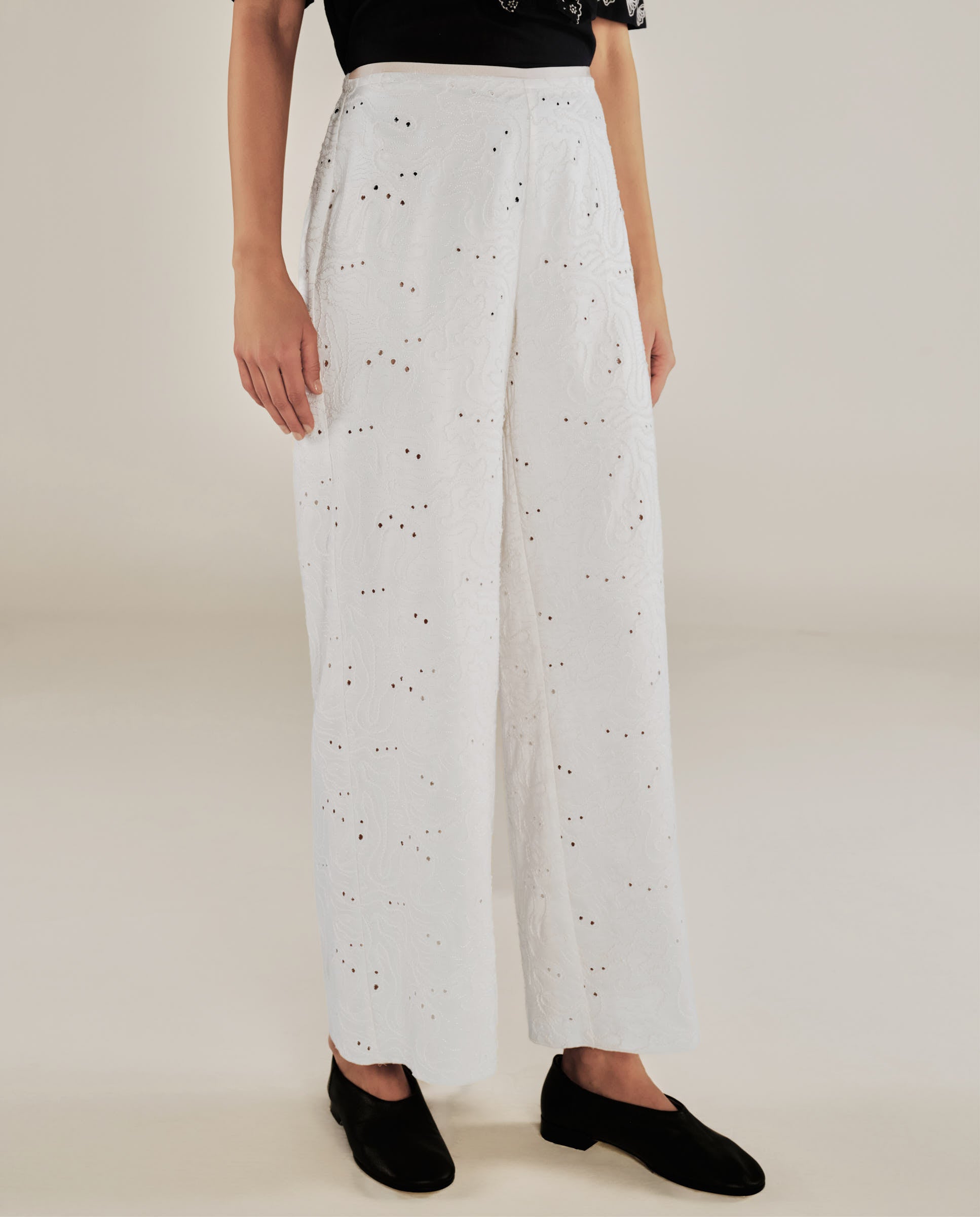ELODIE | Pantalones Bordados de Pierna Ancha