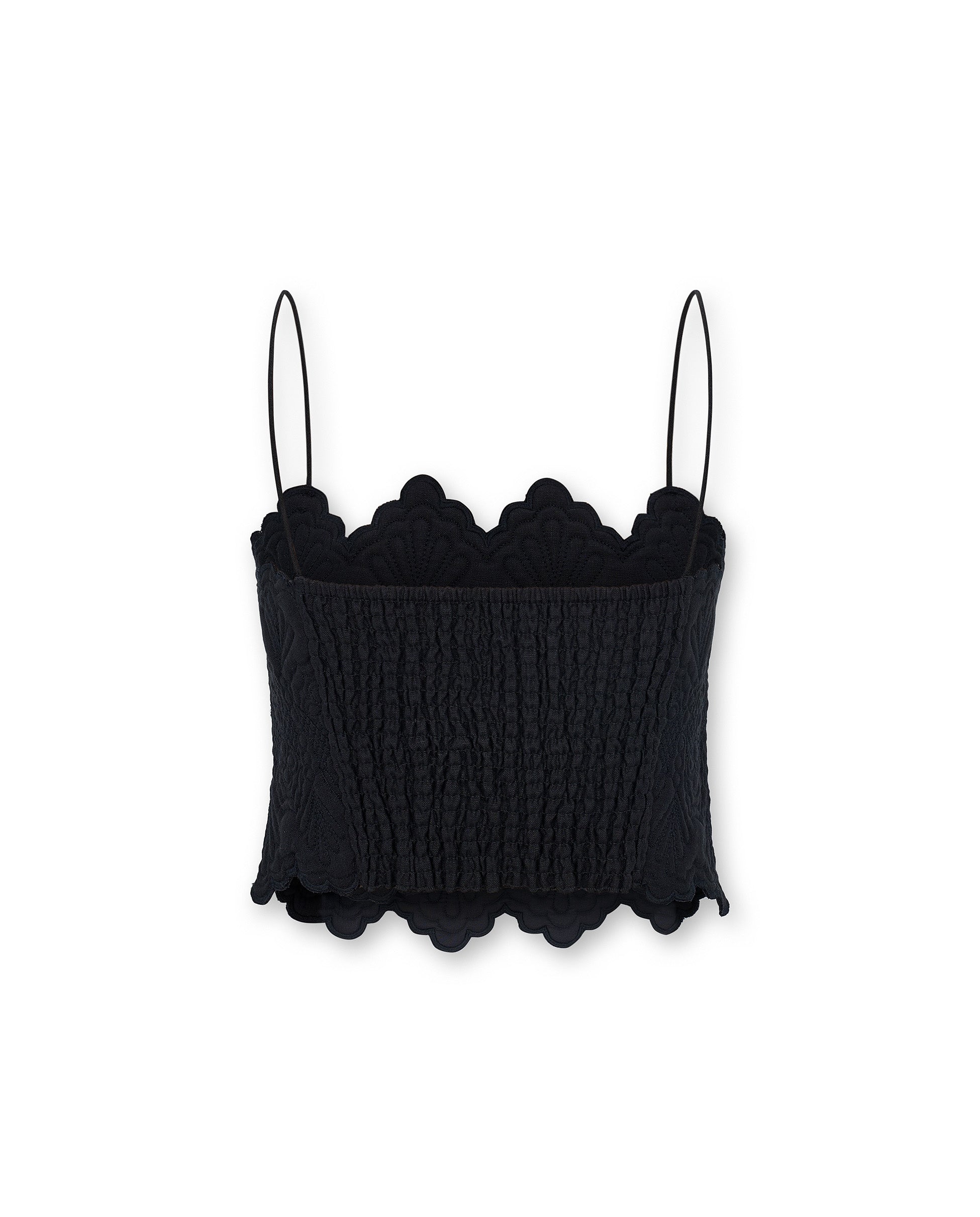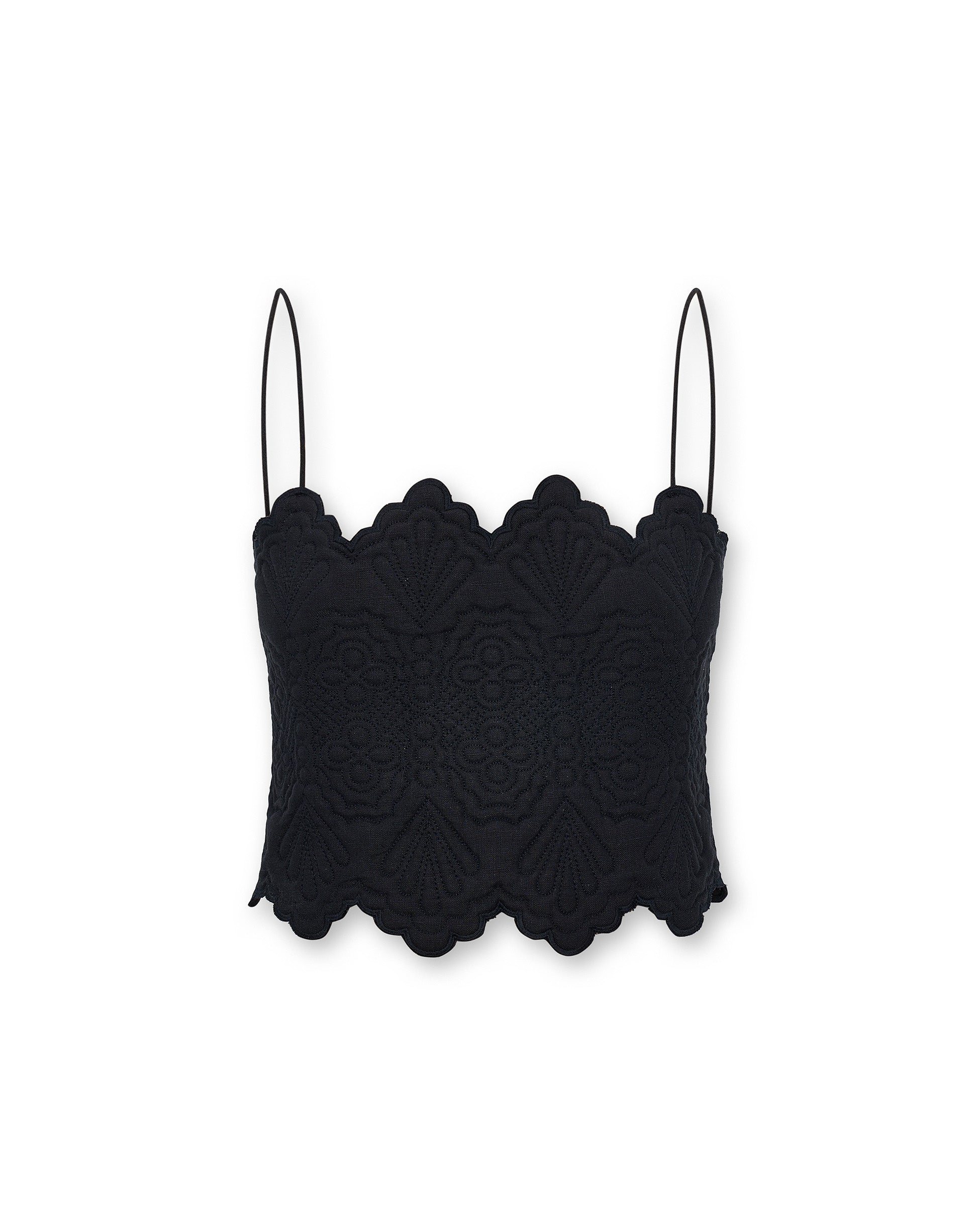 ISHANI | Top Corto de Lino Negro con Bordado Trapunto