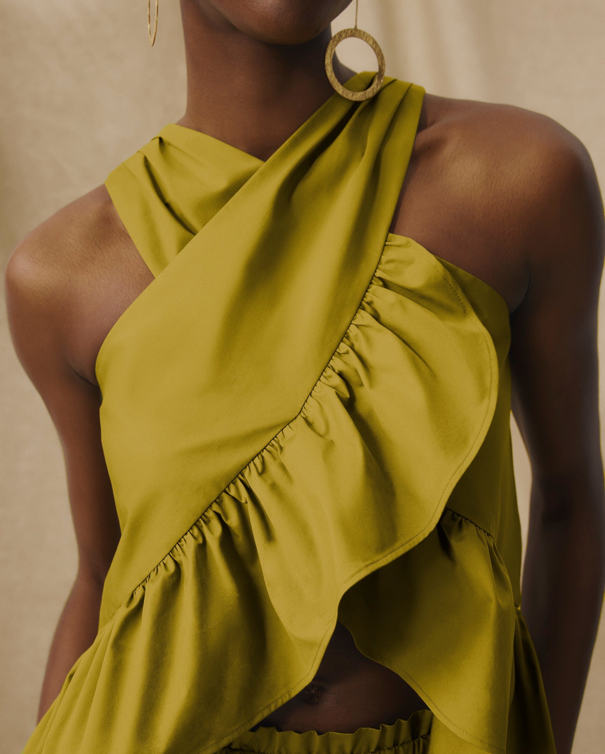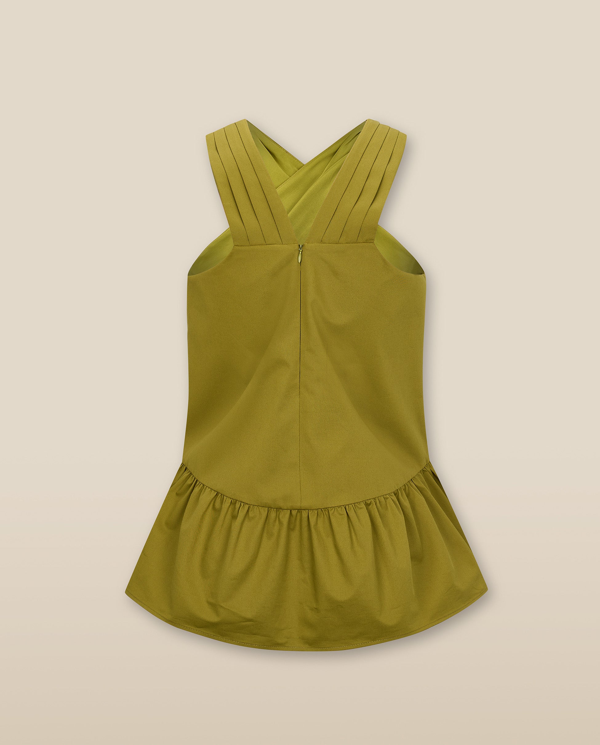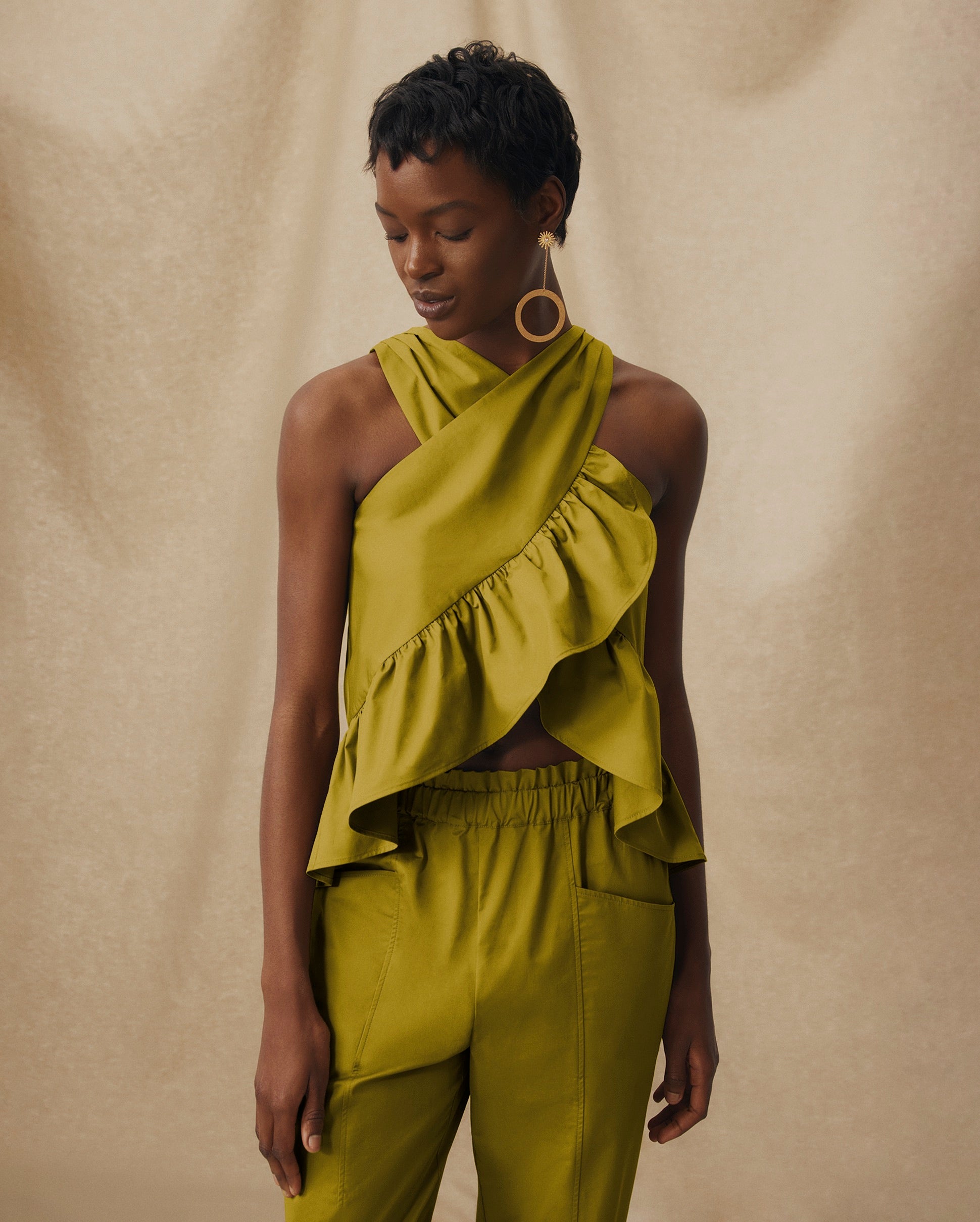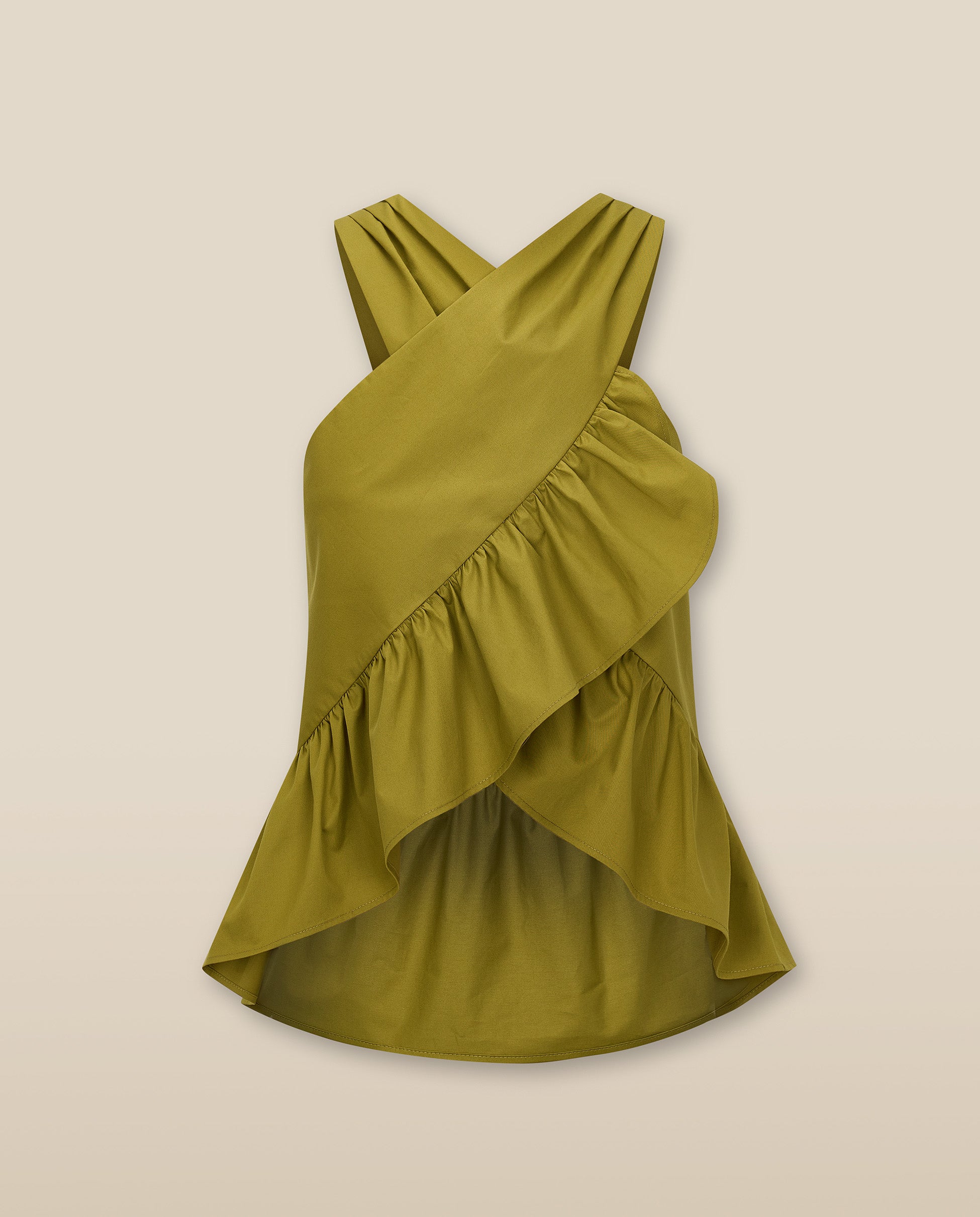POPEA | Top Cruzado de Algodón Verde Oliva con Volante