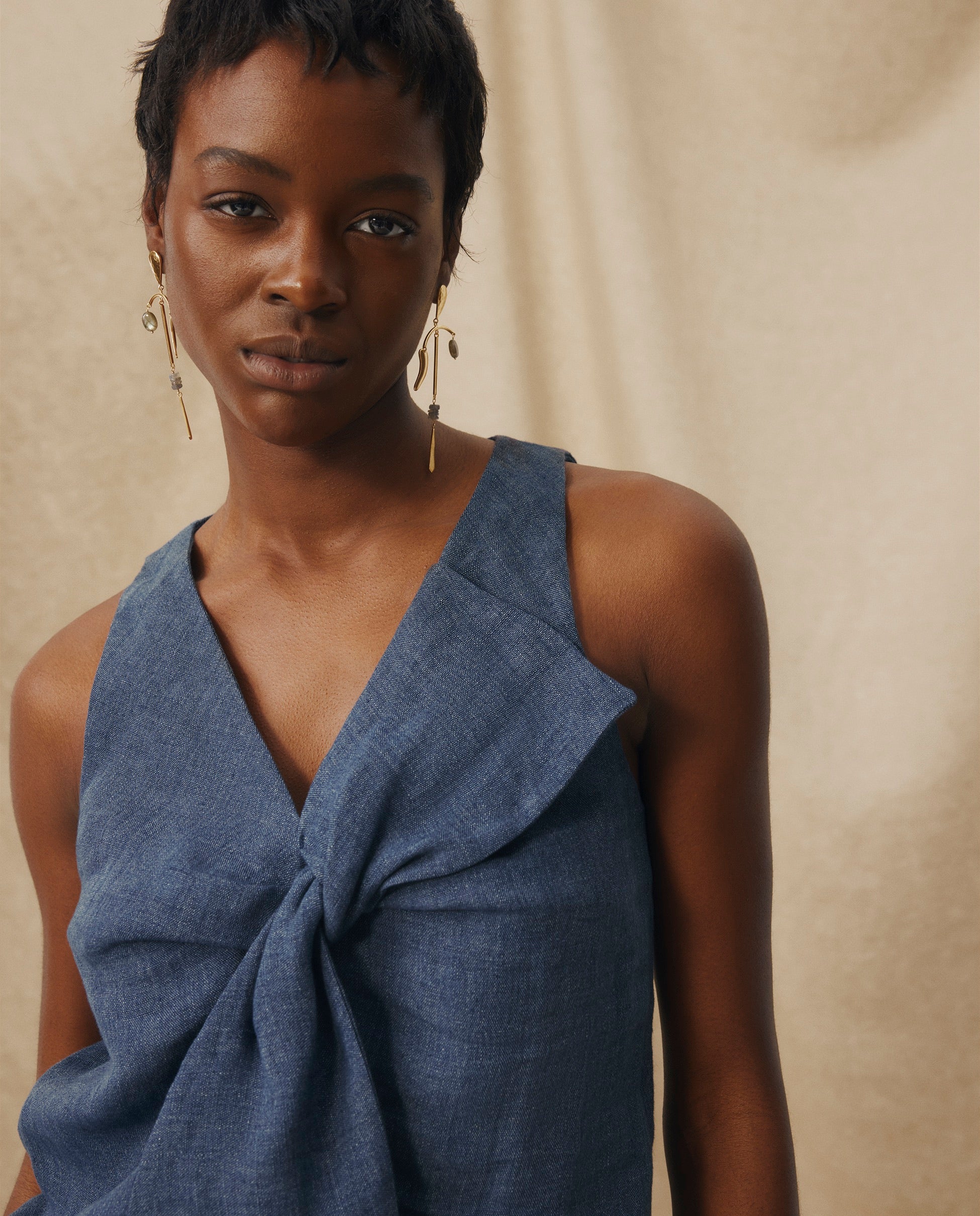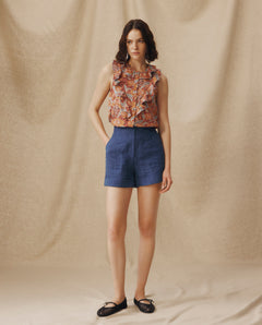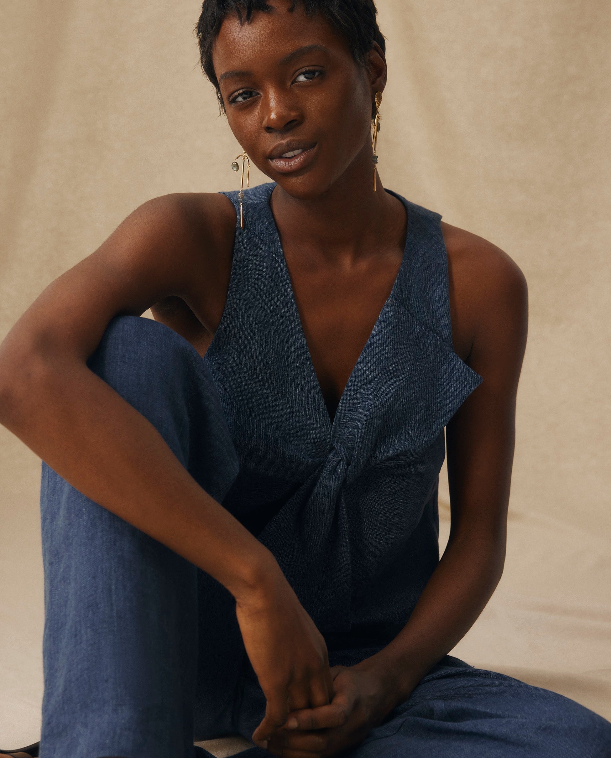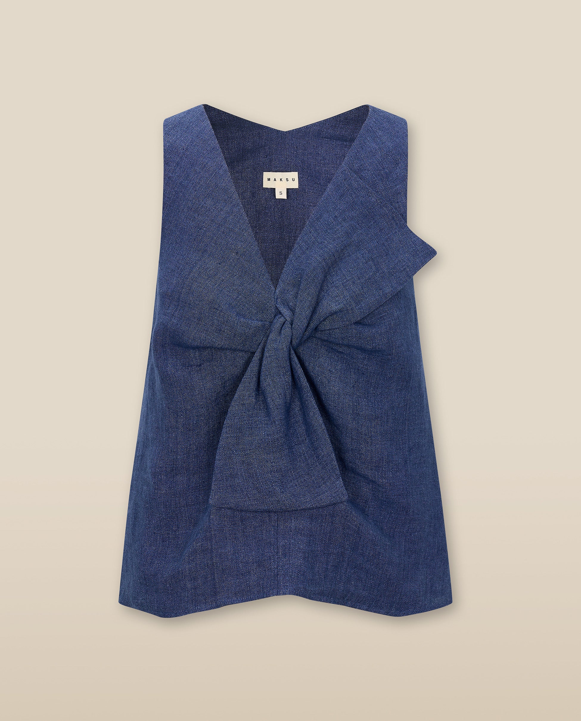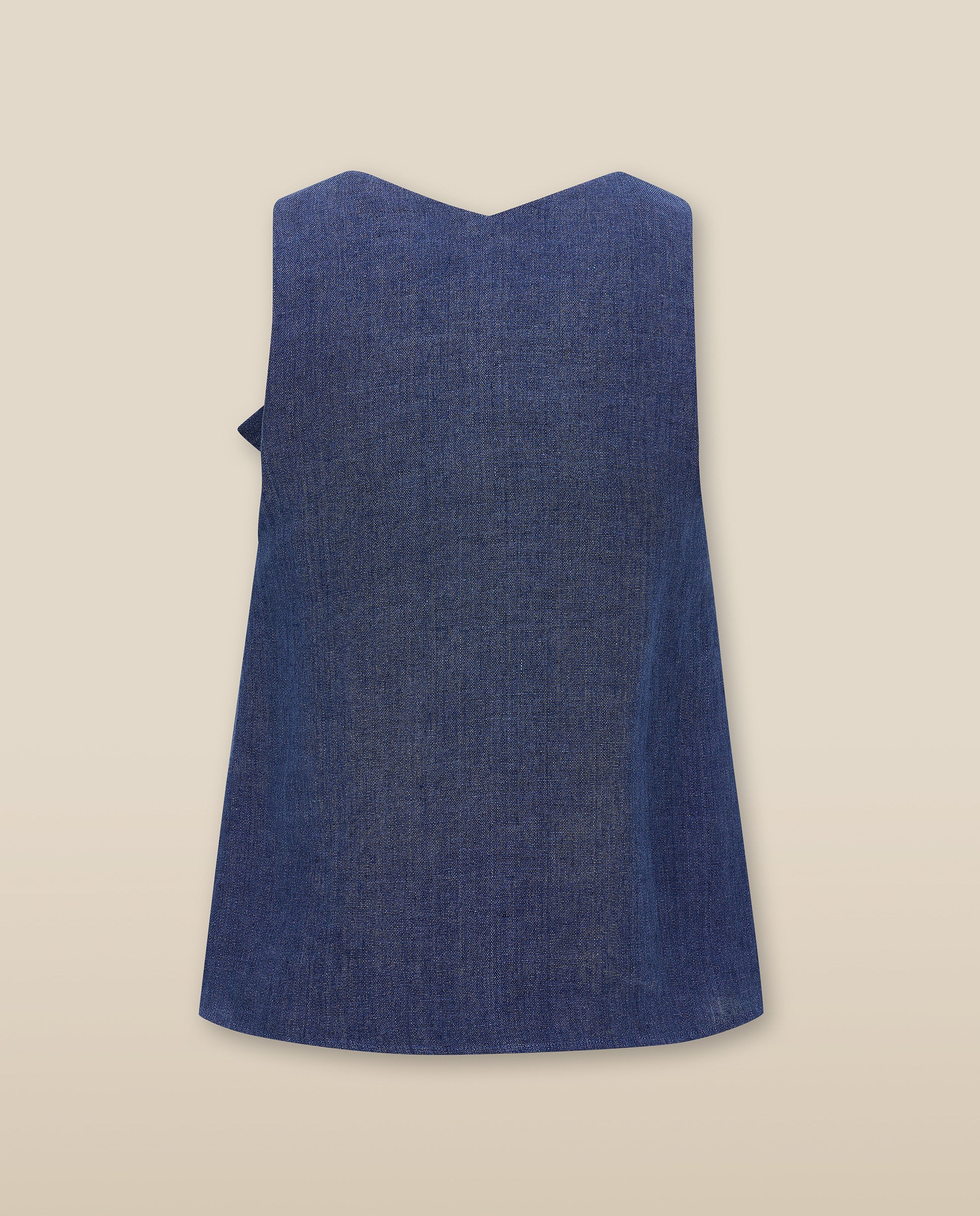 ZURI | Blusa sin Mangas de Lino Azul Índigo con Lazo Frontal