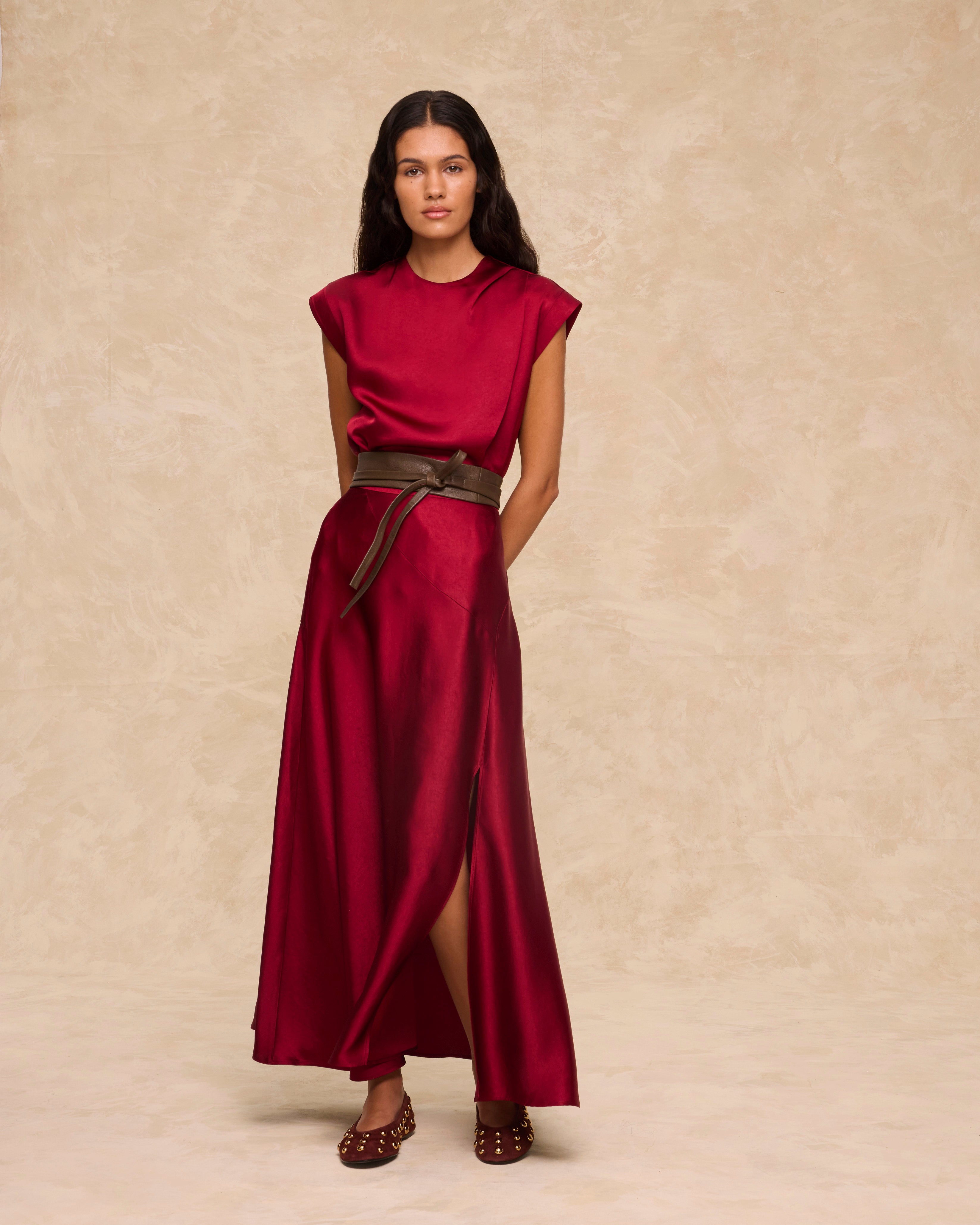 Elegante y fácil de llevar, la falda Natalia está confeccionada con una silueta evasé fluida y una caída suave. Diseñada para ajustarse a la cintura, incorpora una abertura frontal que aporta movimiento y un cierre lateral oculto para un acabado limpio. Combínala con la blusa a juego para un conjunto pulido de pies a cabeza.