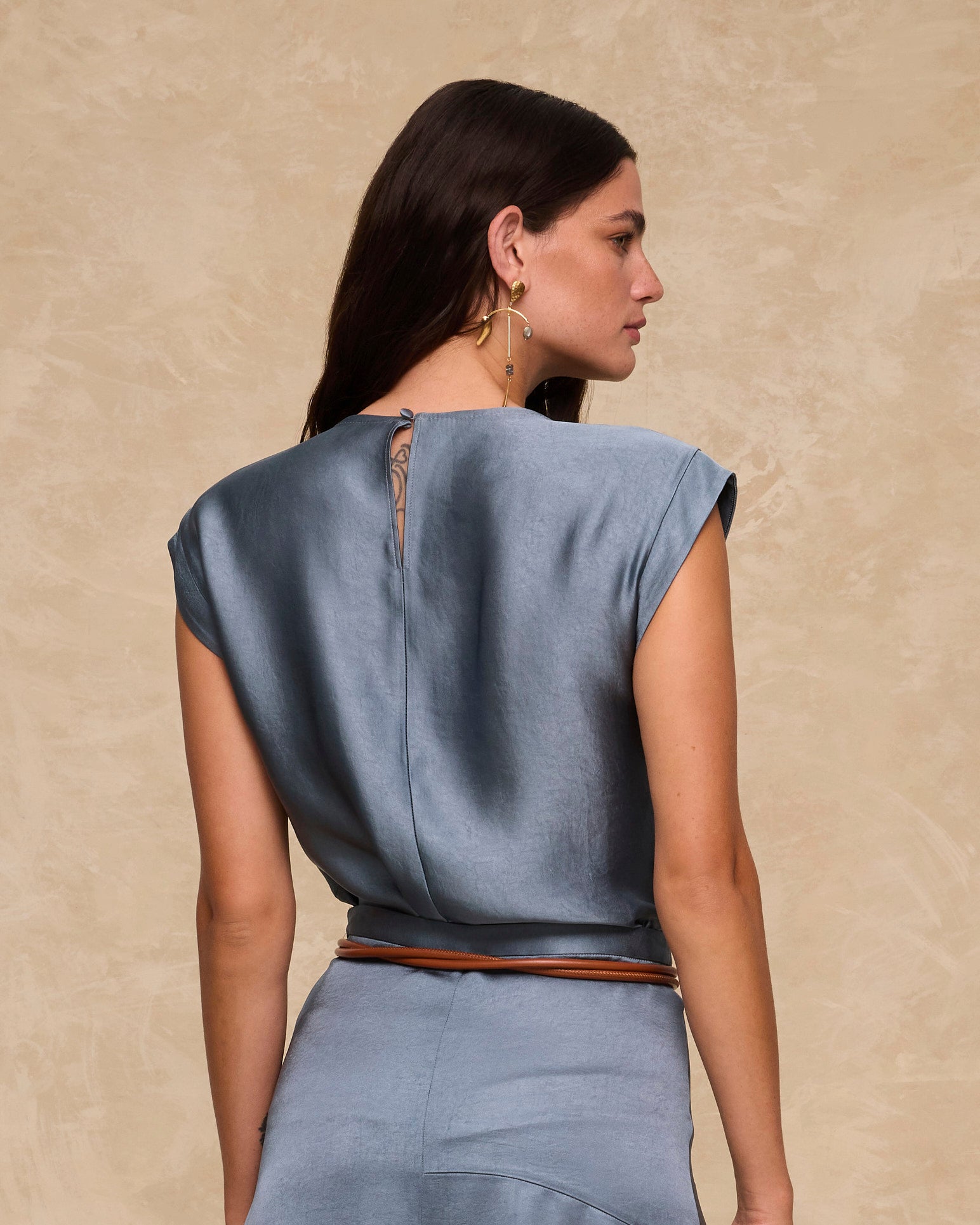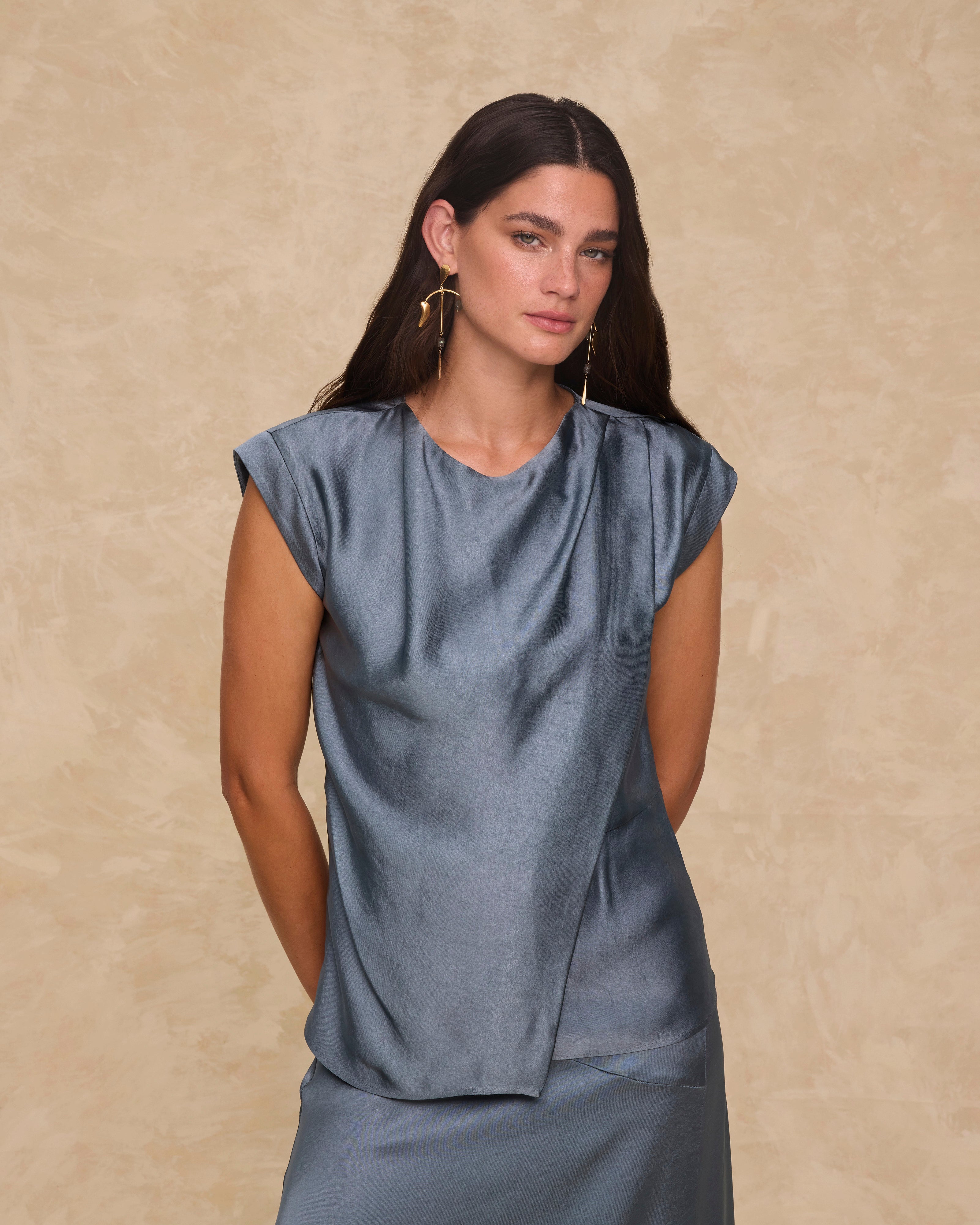 NATALIA | Top Drapeado de Satén en Tono Acero